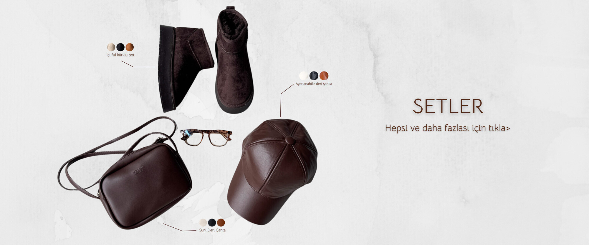 SET2041 Acı Kahve Örgü Bilek Bot-Cap-Şal-Gözlük Dörtlü Set