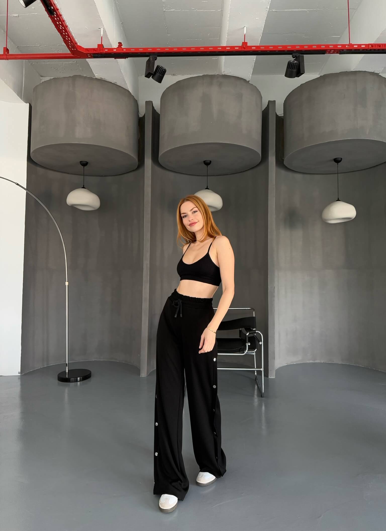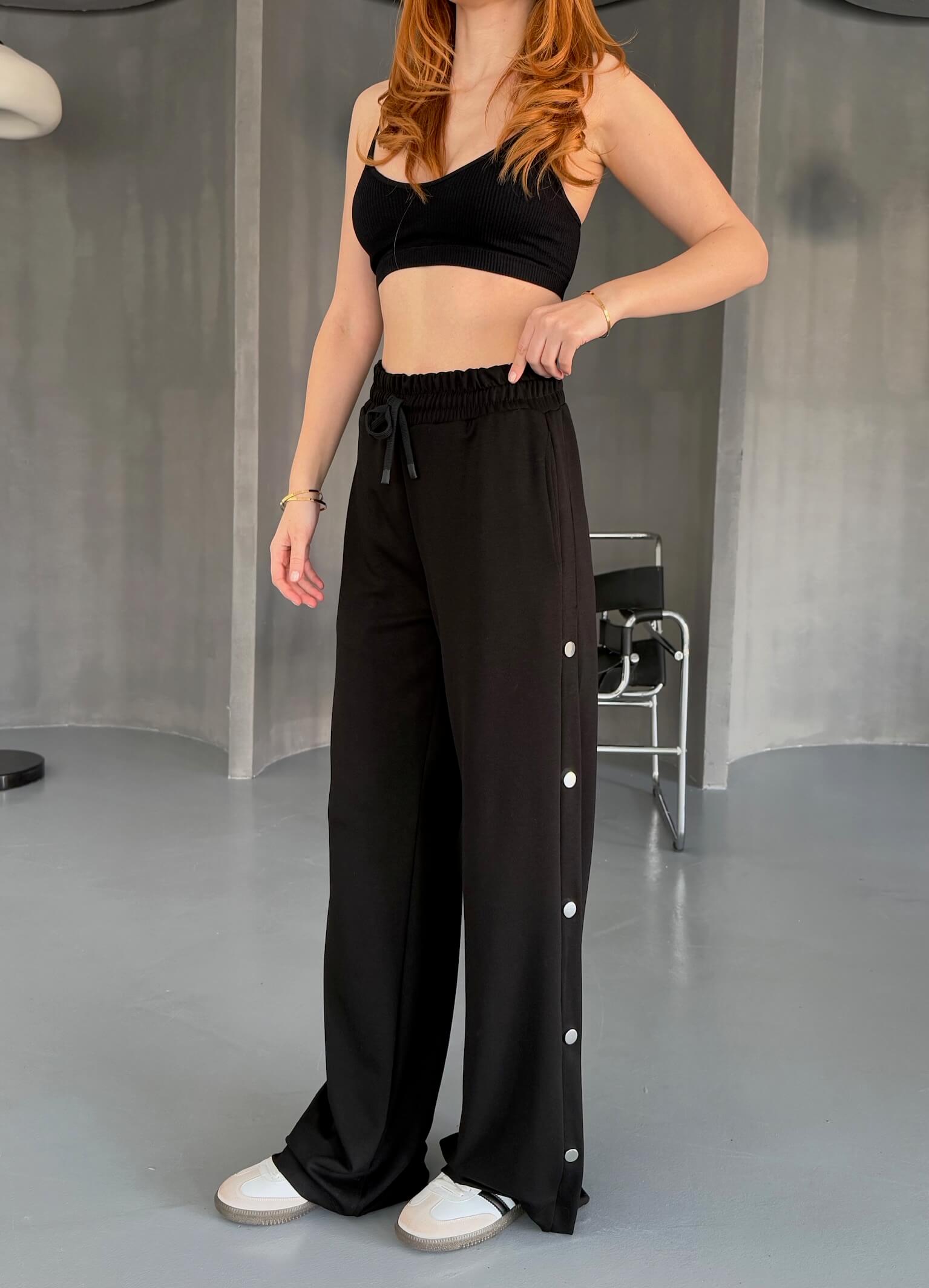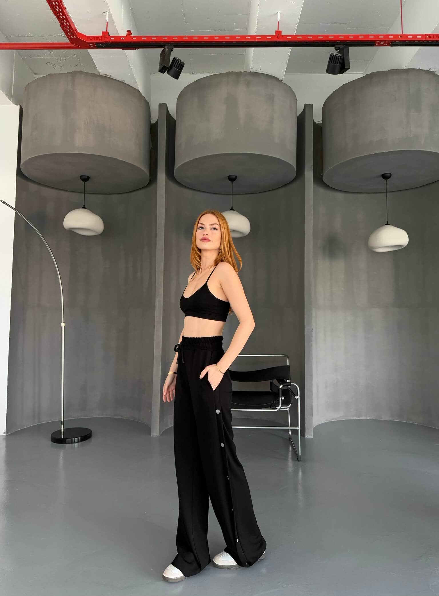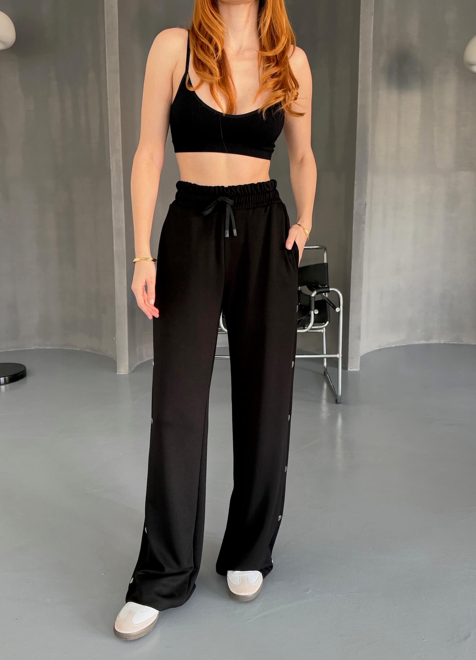 7003 Modal Siyah Çıtçıtlı Modal Kumaş Bel Lastikli Palazzo Eşofman