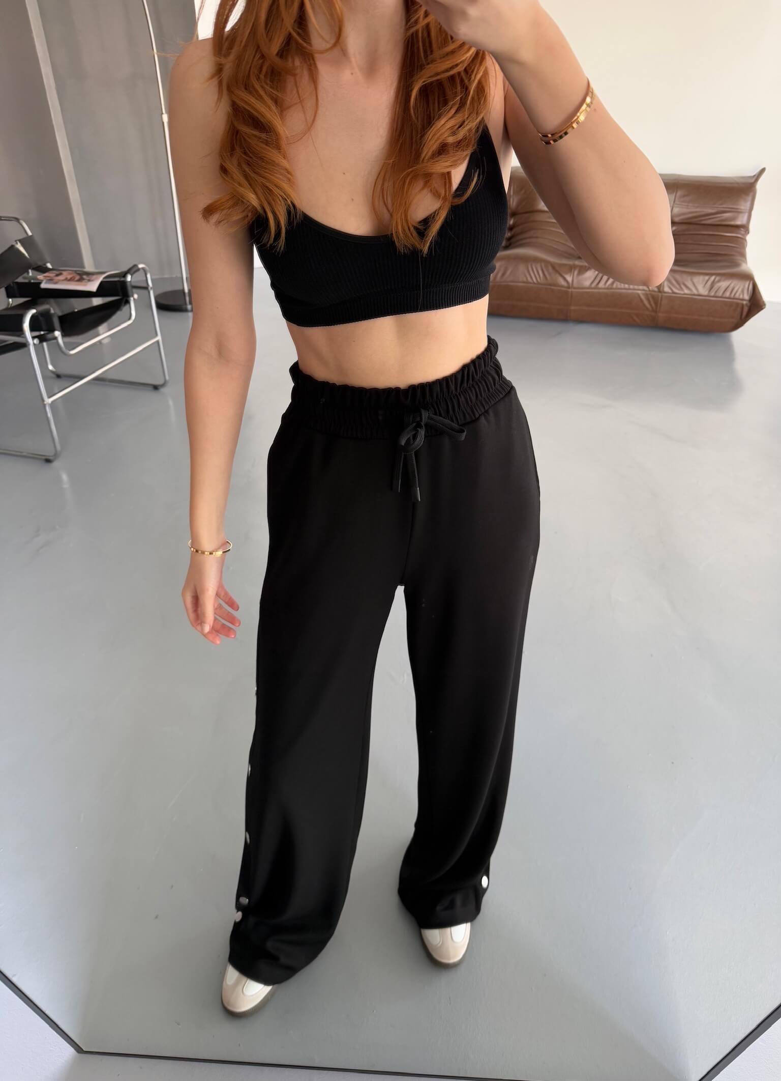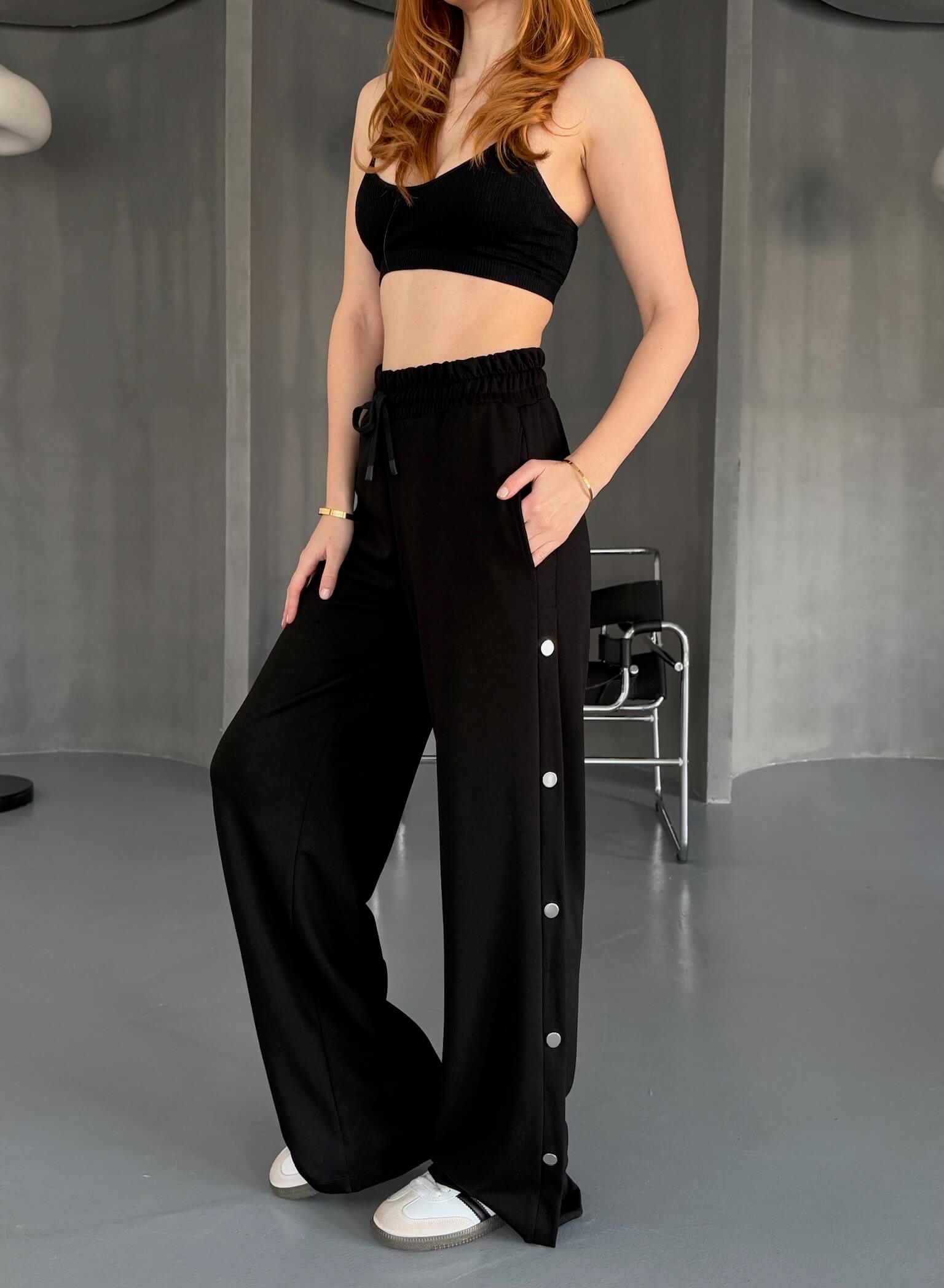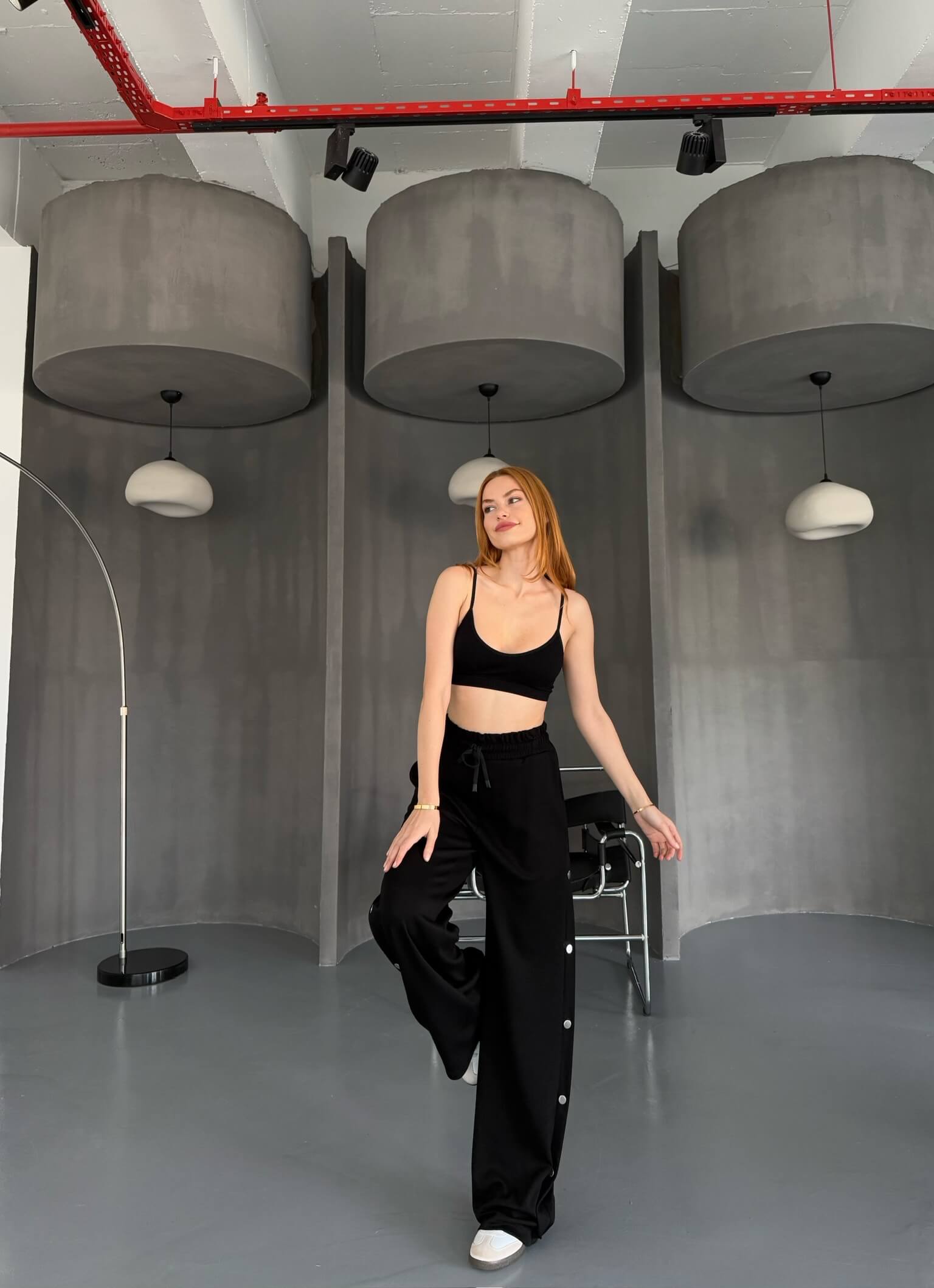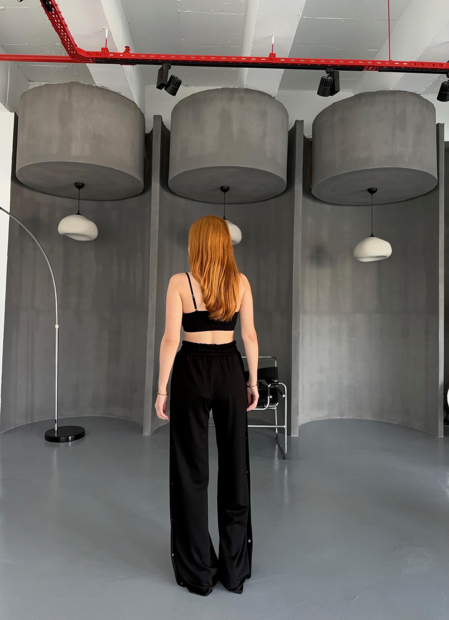 7003 Modal Siyah Çıtçıtlı Modal Kumaş Bel Lastikli Palazzo Eşofman