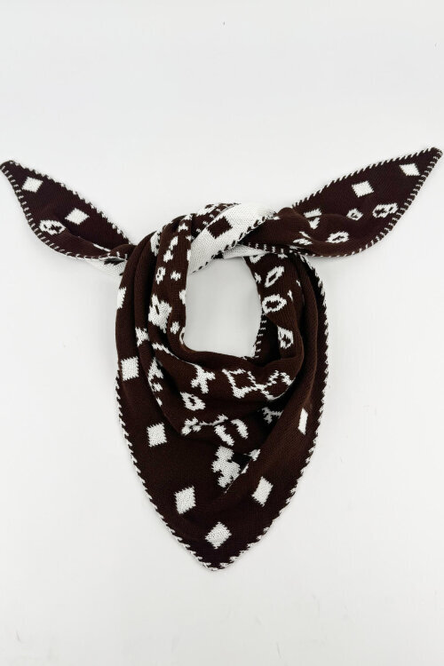 Geleneksel motiflerin modern bir yorumla buluştuğu bu üçgen şal, stilinize sofistike ve otantik bir dokunuş katıyor. Yumuşak triko dokusu sayesinde boynunuzda akışkan ve zarif bir duruş sergileyen bu parça, kış ve bahar aylarında vazgeçilmez aksesuarınız olacak. Etnik desenleri ve kontrast yaratan geometrik formlarıyla hem günlük hem de şık kombinlerinizde kusursuz bir silüet oluşturur.