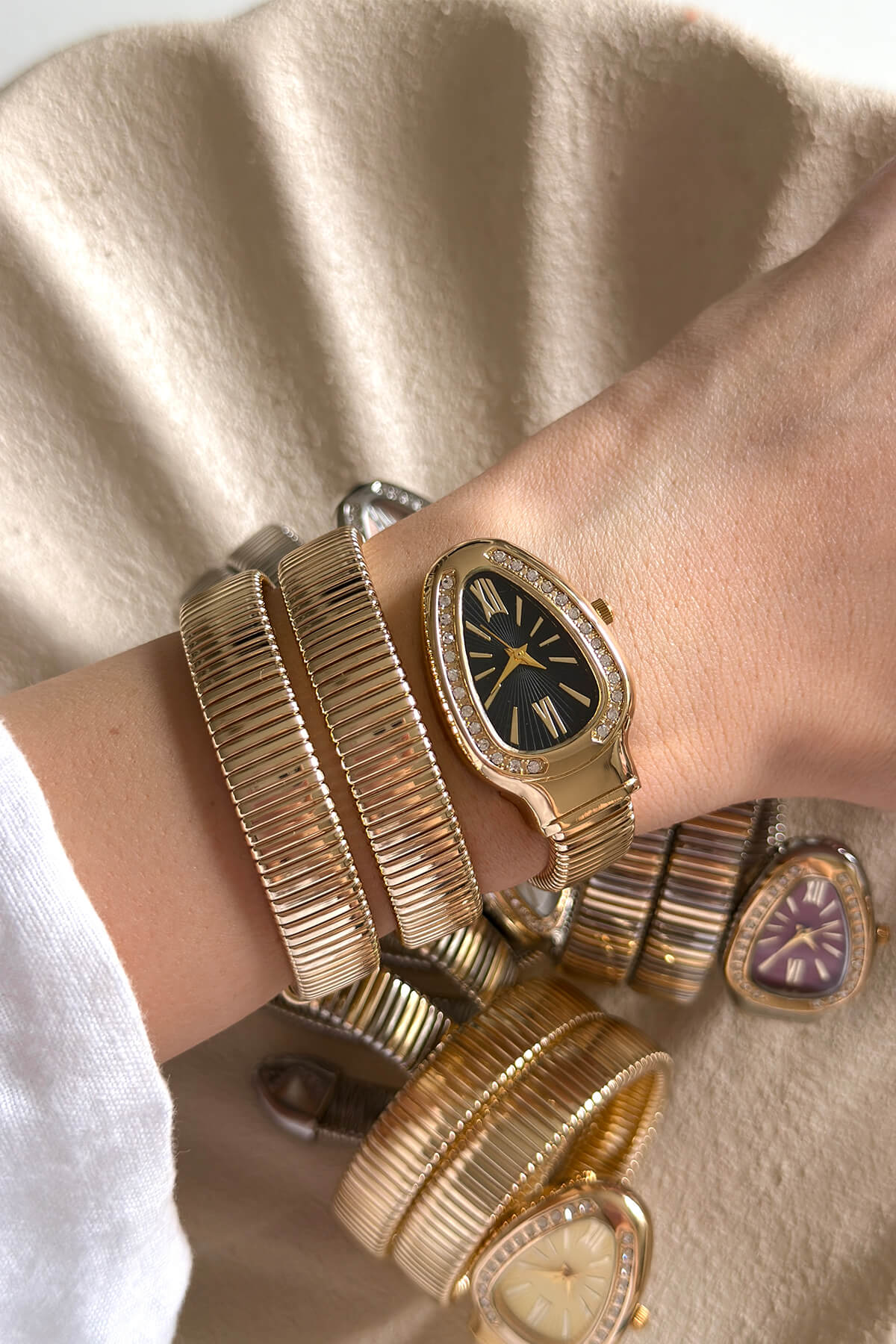 Cappmoda Alix Siyah Taşlı Kadran Gold Sarmal Kelepçe Kadın Kol Saati
