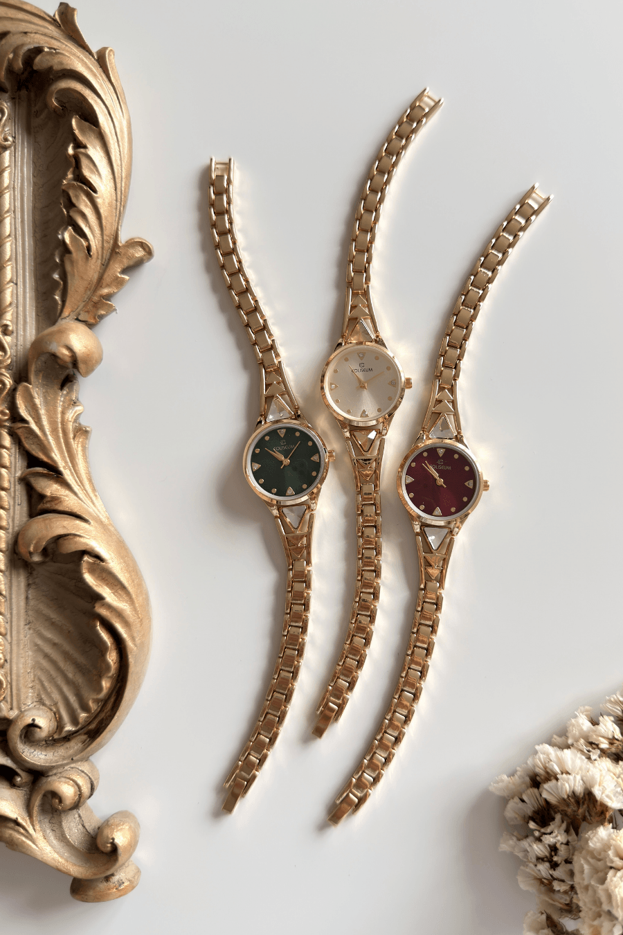 Zarafeti bileğinizde taşıyın. İnce işçiliği ve feminen detaylarıyla öne çıkan bu koleksiyon, zamansız bir şıklığın kapılarını aralıyor. Klasik saat formunu modern bir takı estetiğiyle birleştiren bu model, stilini detaylarla güçlendirmeyi seven kadınlar için özel olarak tasarlandı.