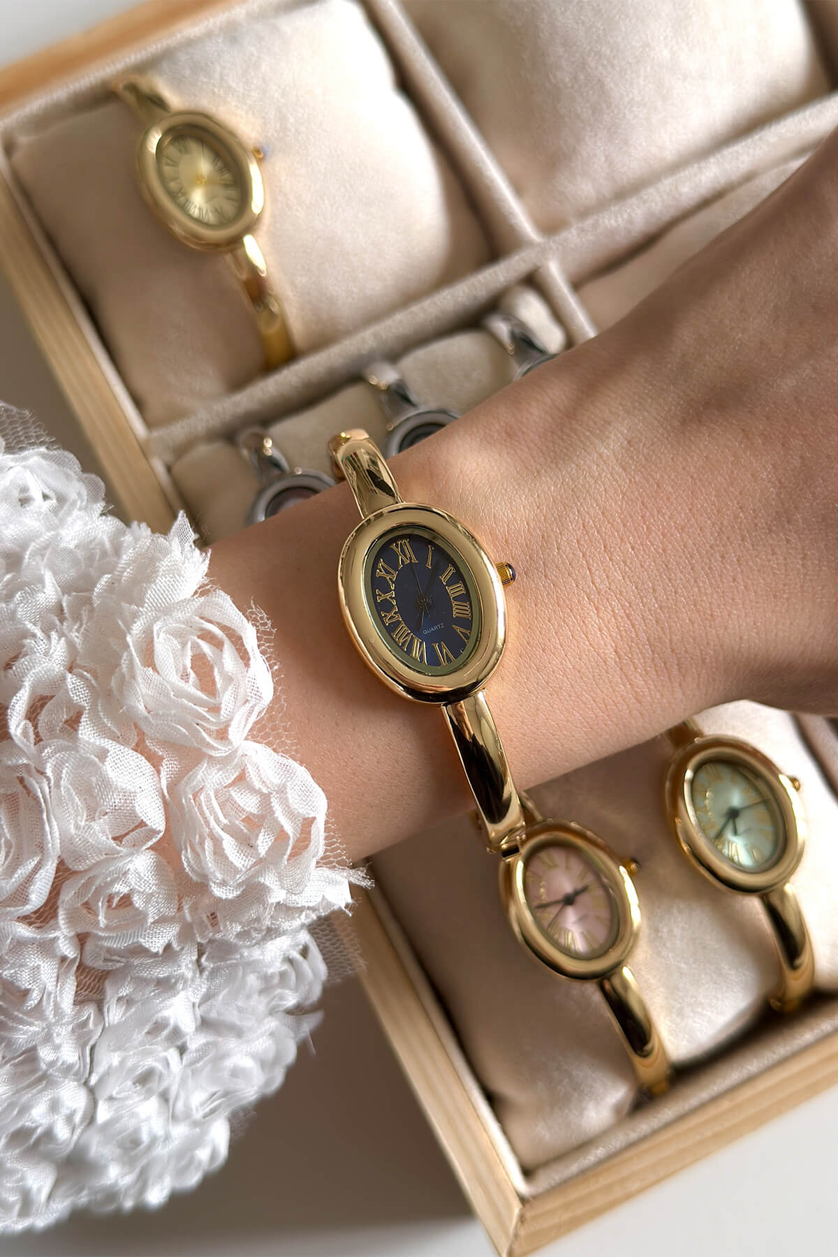 Asia, beyaz kadranın sadeliğini silver rengin ışıltılı kelepçe tasarımıyla birleştirerek bileğinizde modern bir mücevher etkisi yaratıyor. Oval kasa formu ve Roma rakamlı kadran detayıyla klasik bir duruş sergileyen bu model, ince yapısı sayesinde gün boyu konforlu bir şıklık sunar. Hem tek başına hem de favori bilekliklerinizle kombinleyebileceğiniz bu özel parça, stilinize sofistike bir dokunuş katmak için tasarlandı.