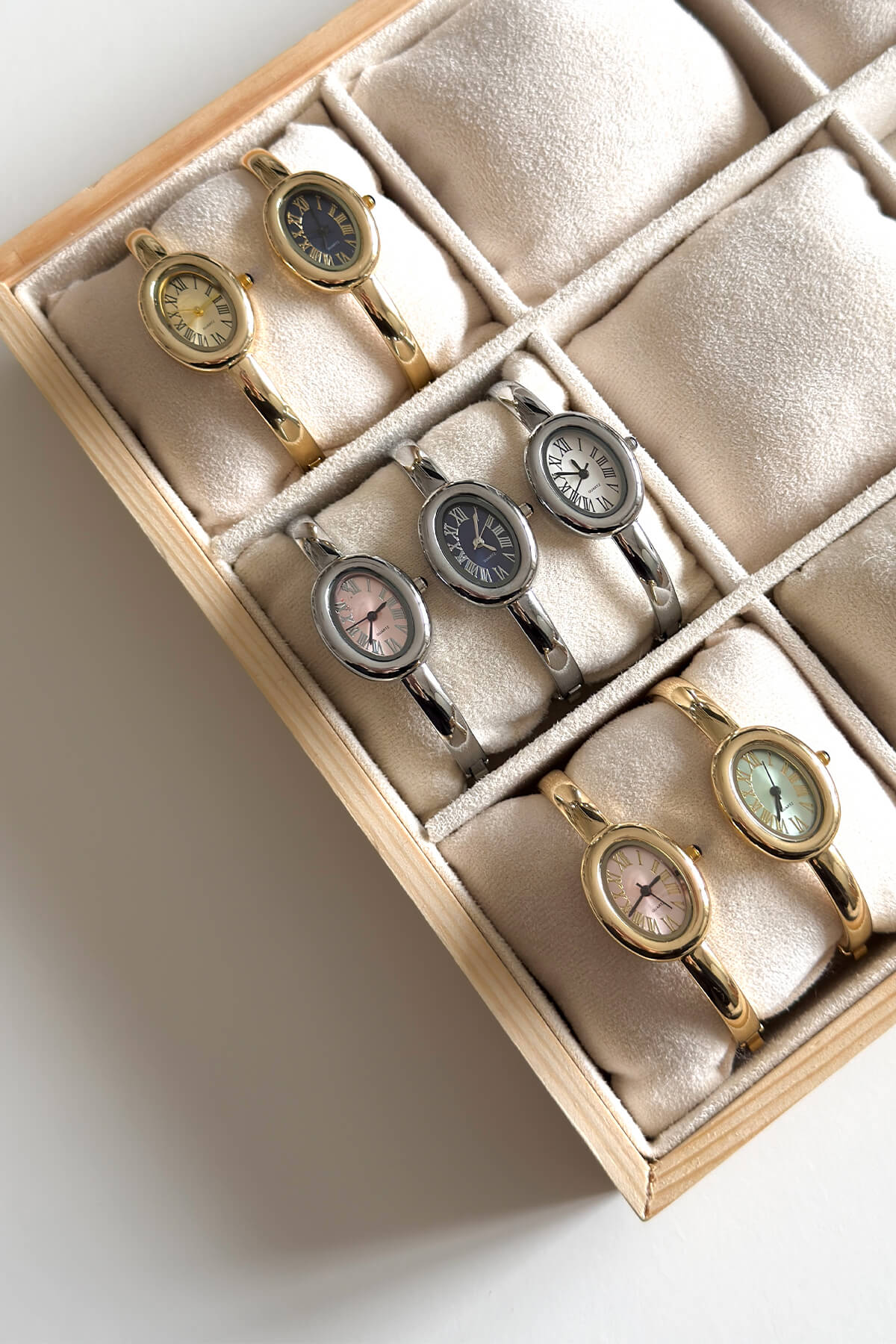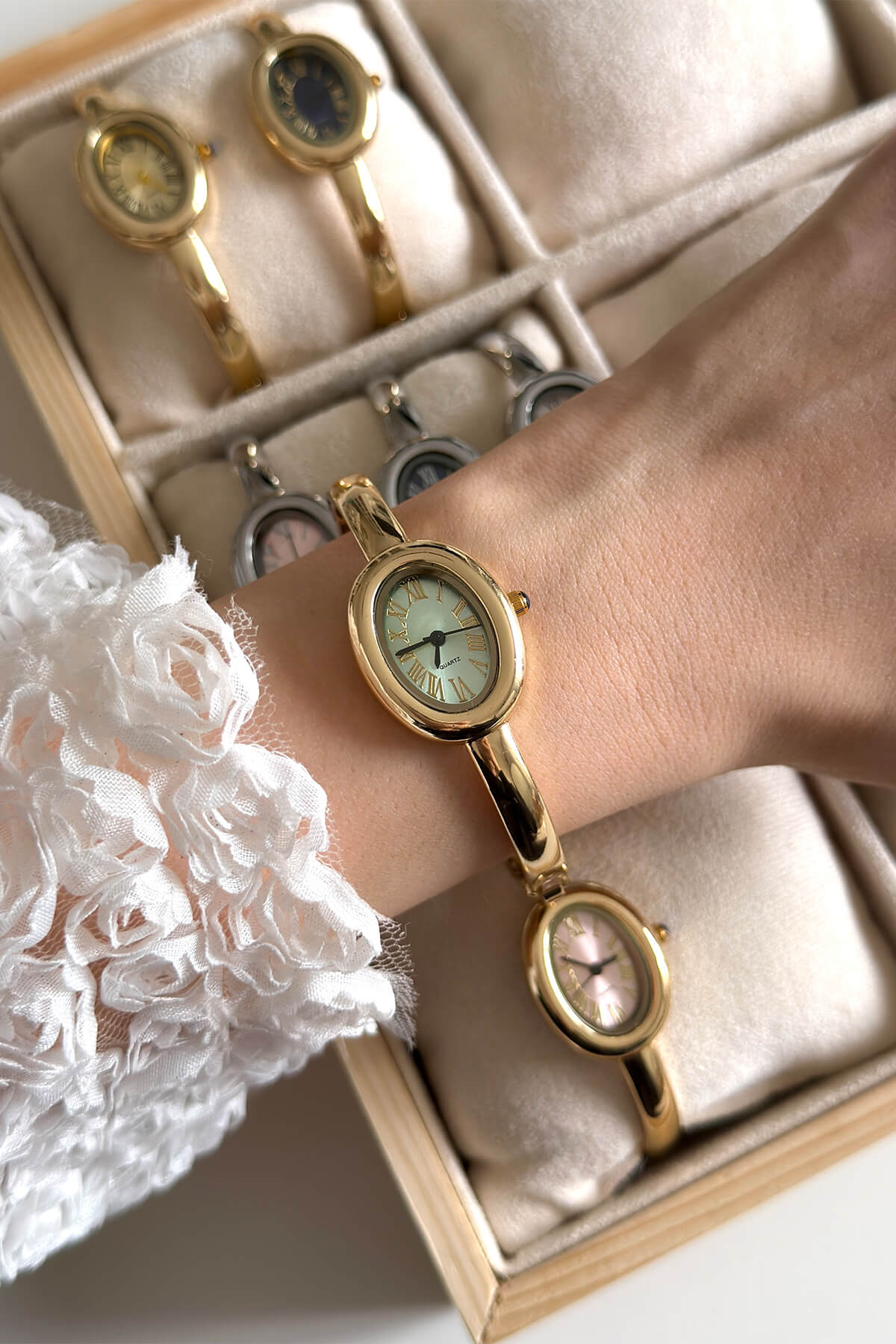 Asia, yeşil kadranın sadeliğini silver rengin ışıltılı kelepçe tasarımıyla birleştirerek bileğinizde modern bir mücevher etkisi yaratıyor. Oval kasa formu ve Roma rakamlı kadran detayıyla klasik bir duruş sergileyen bu model, ince yapısı sayesinde gün boyu konforlu bir şıklık sunar. Hem tek başına hem de favori bilekliklerinizle kombinleyebileceğiniz bu özel parça, stilinize sofistike bir dokunuş katmak için tasarlandı.