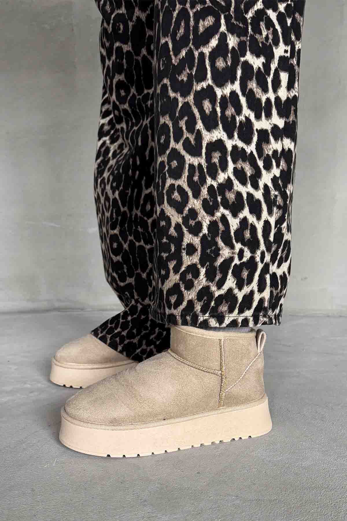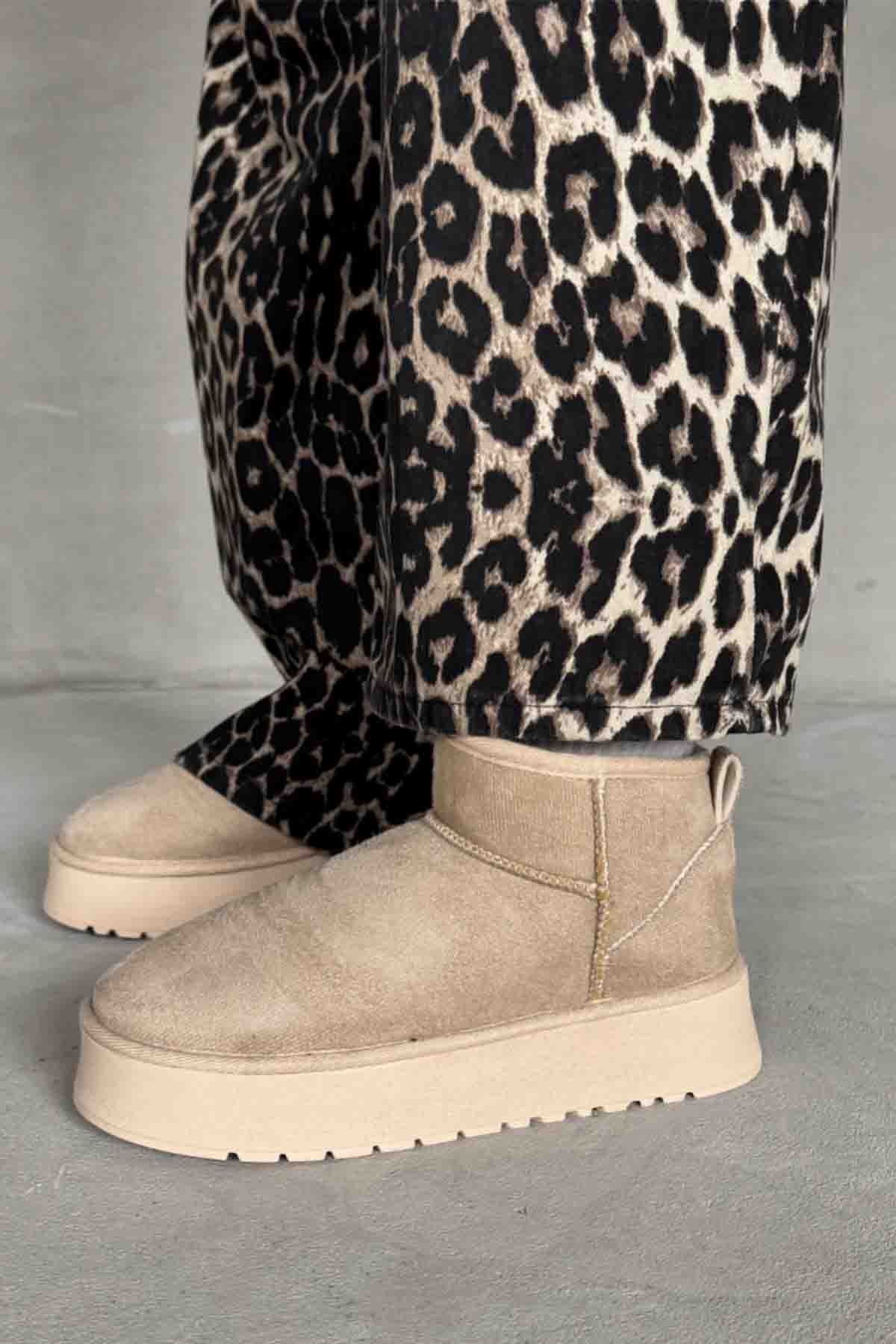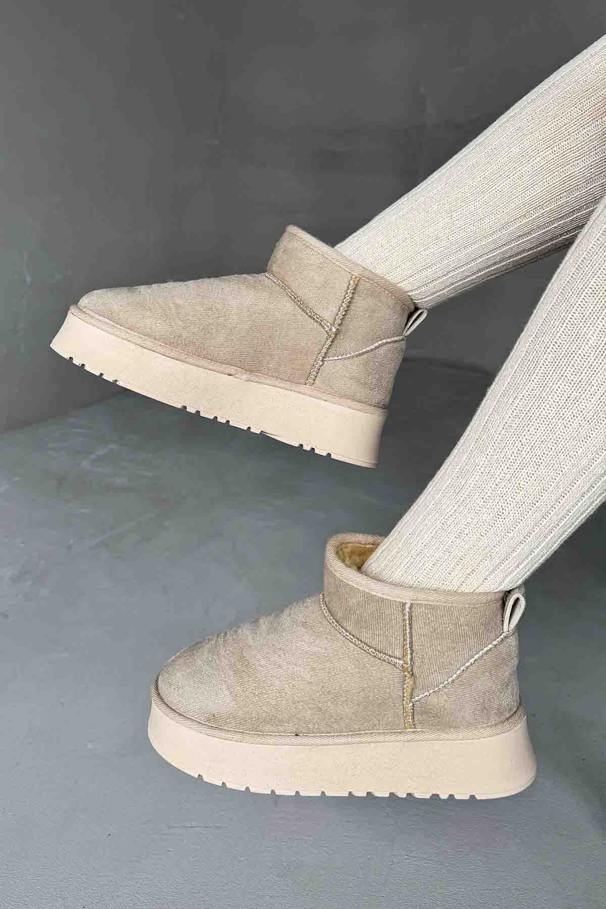 AYK-1001 Taş Rengi İçi Kürklü Kalın Taban Kısa Bot