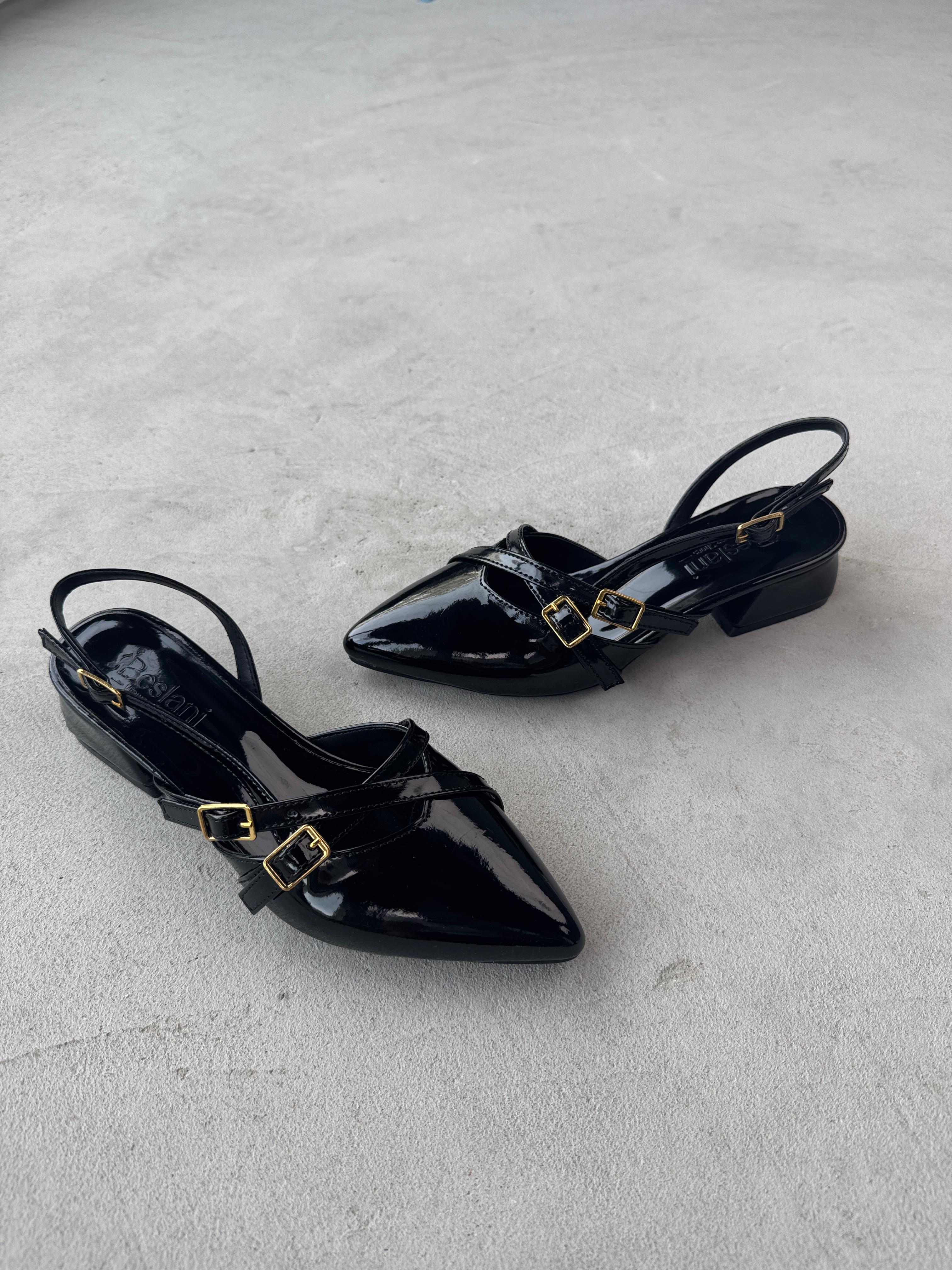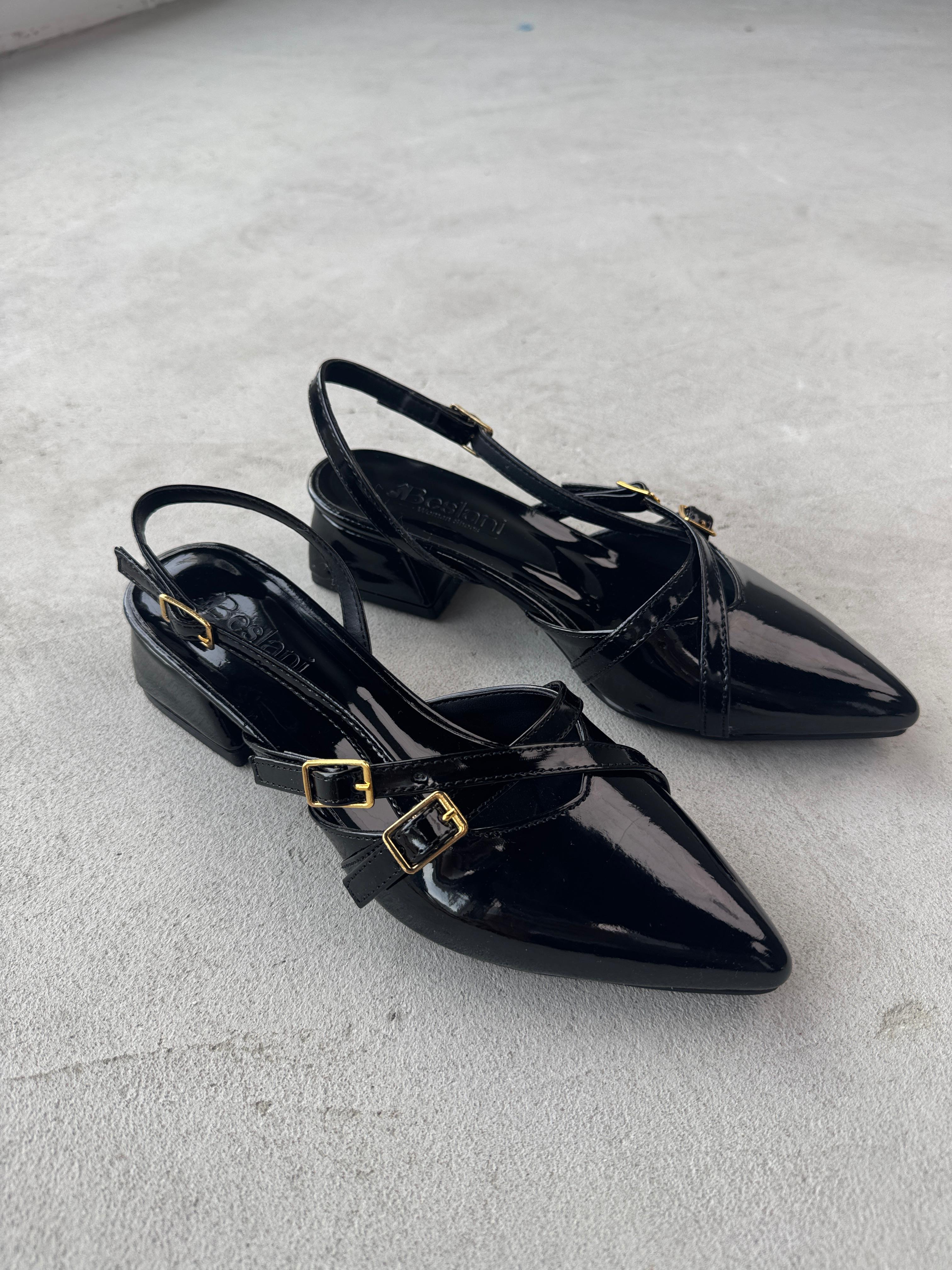 AYK-027 Siyah Rugan Kemer Detay Bilek Bağlı Kısa Topuklu Ayakkabı - 1AYK-027 Siyah Rugan Kemer Detay Bilek Bağlı Kısa Topuklu Ayakkabı - 2