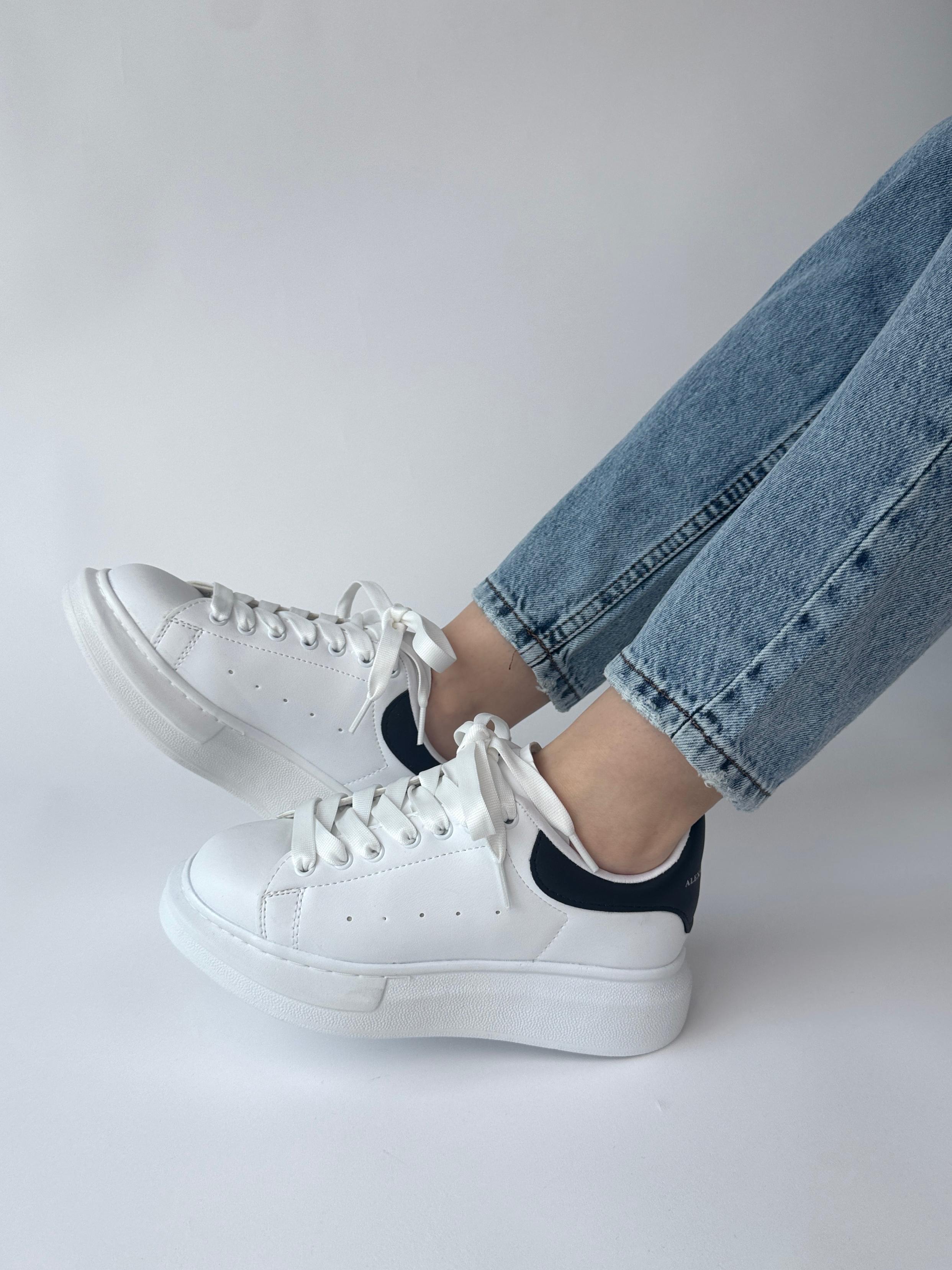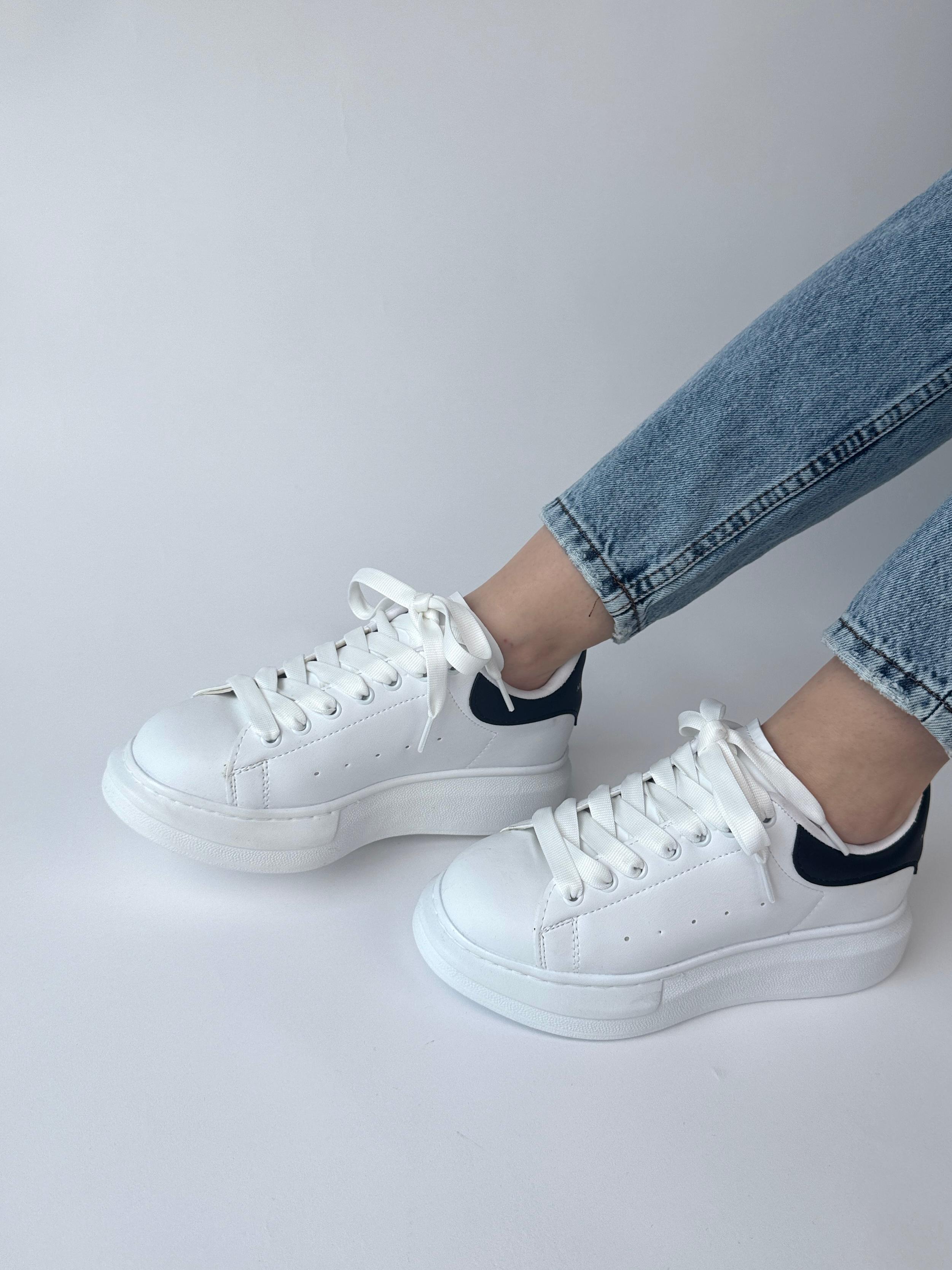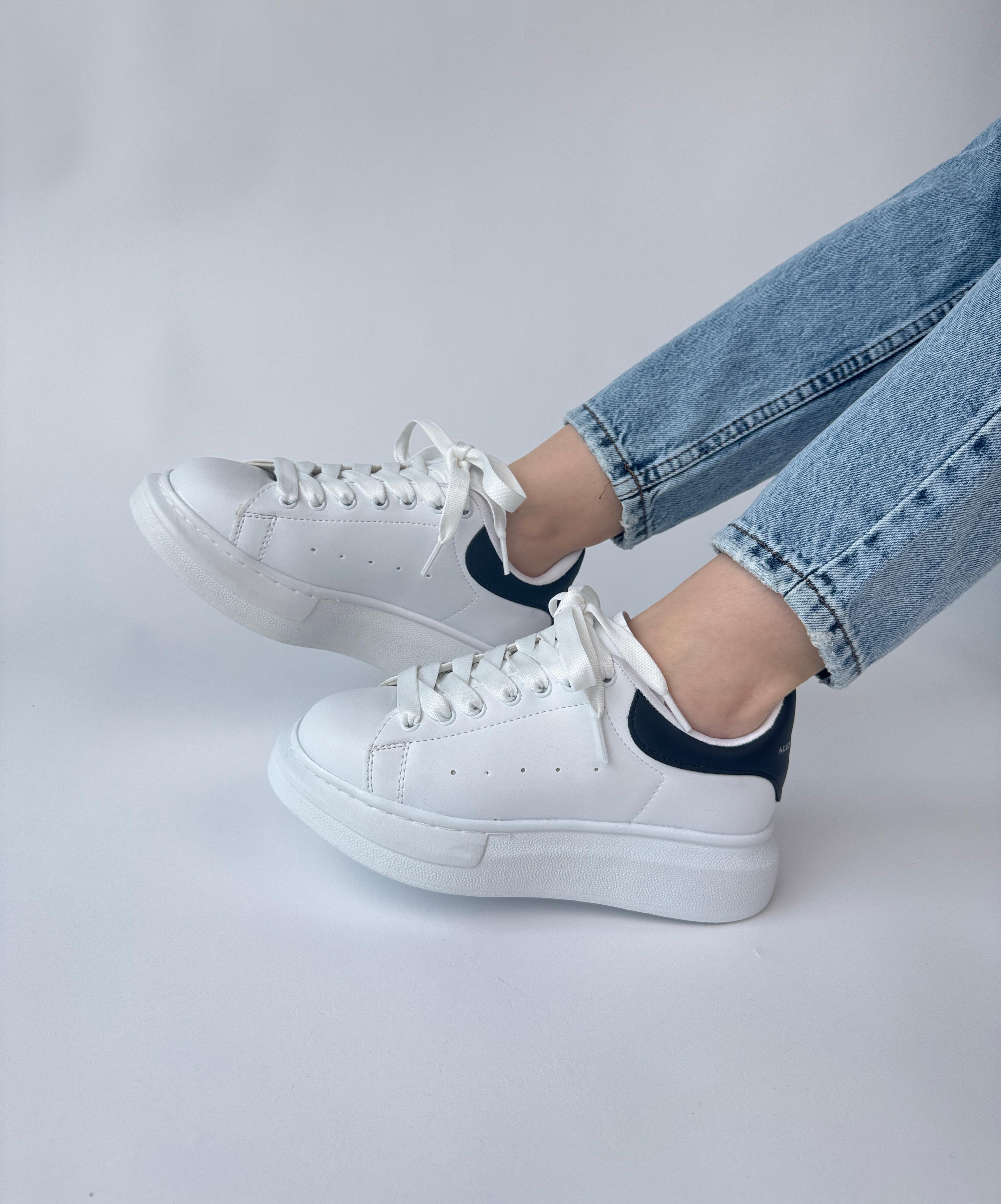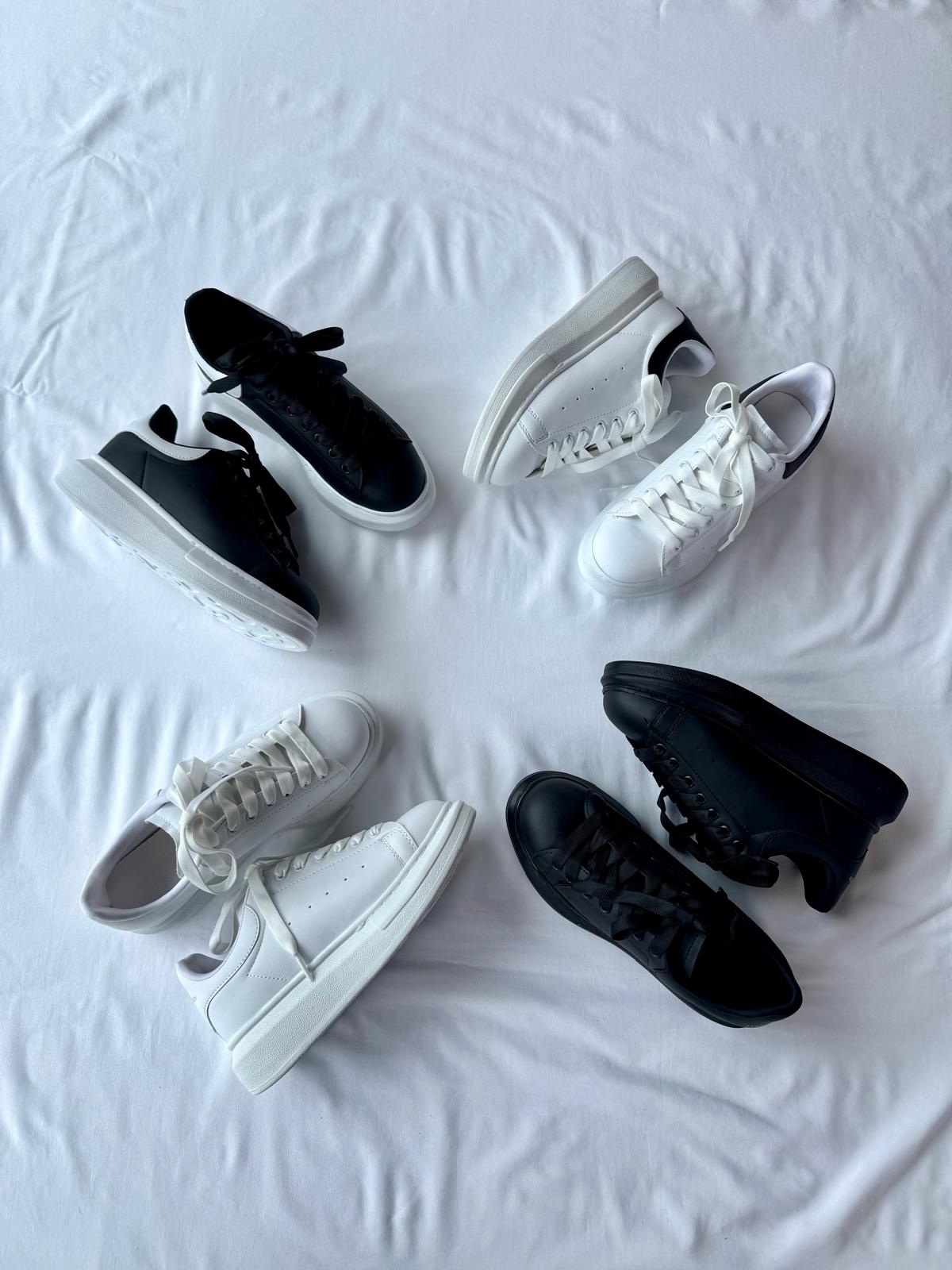 AYK-1017 Beyaza Siyah Detaylı Yüksek Taban Suni Deri Muadil Snekaer