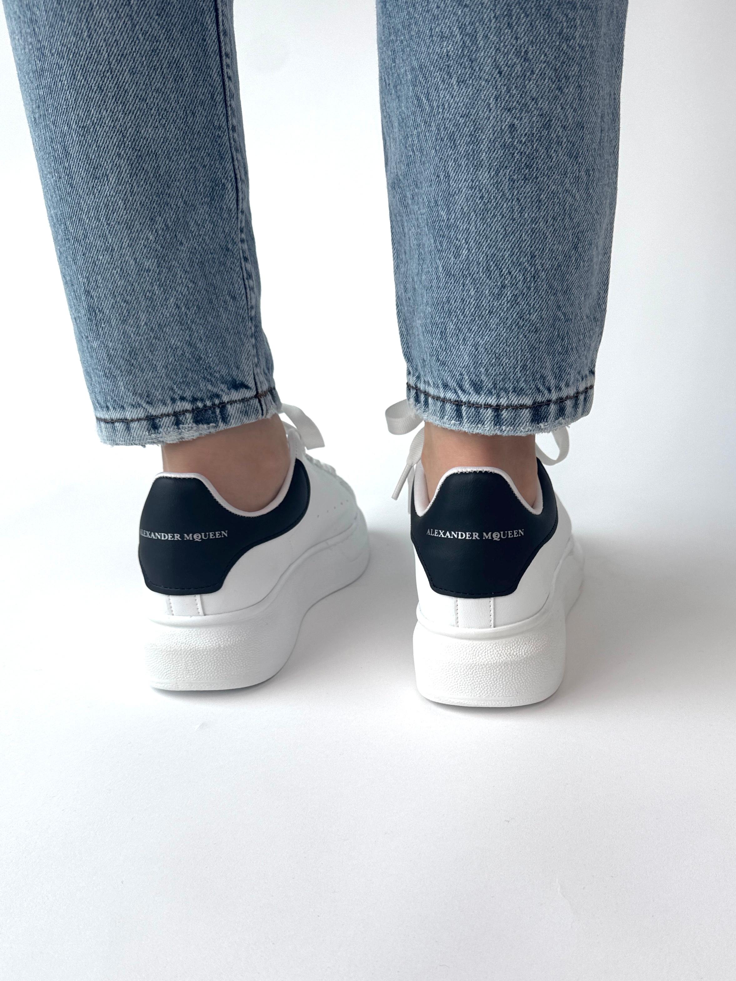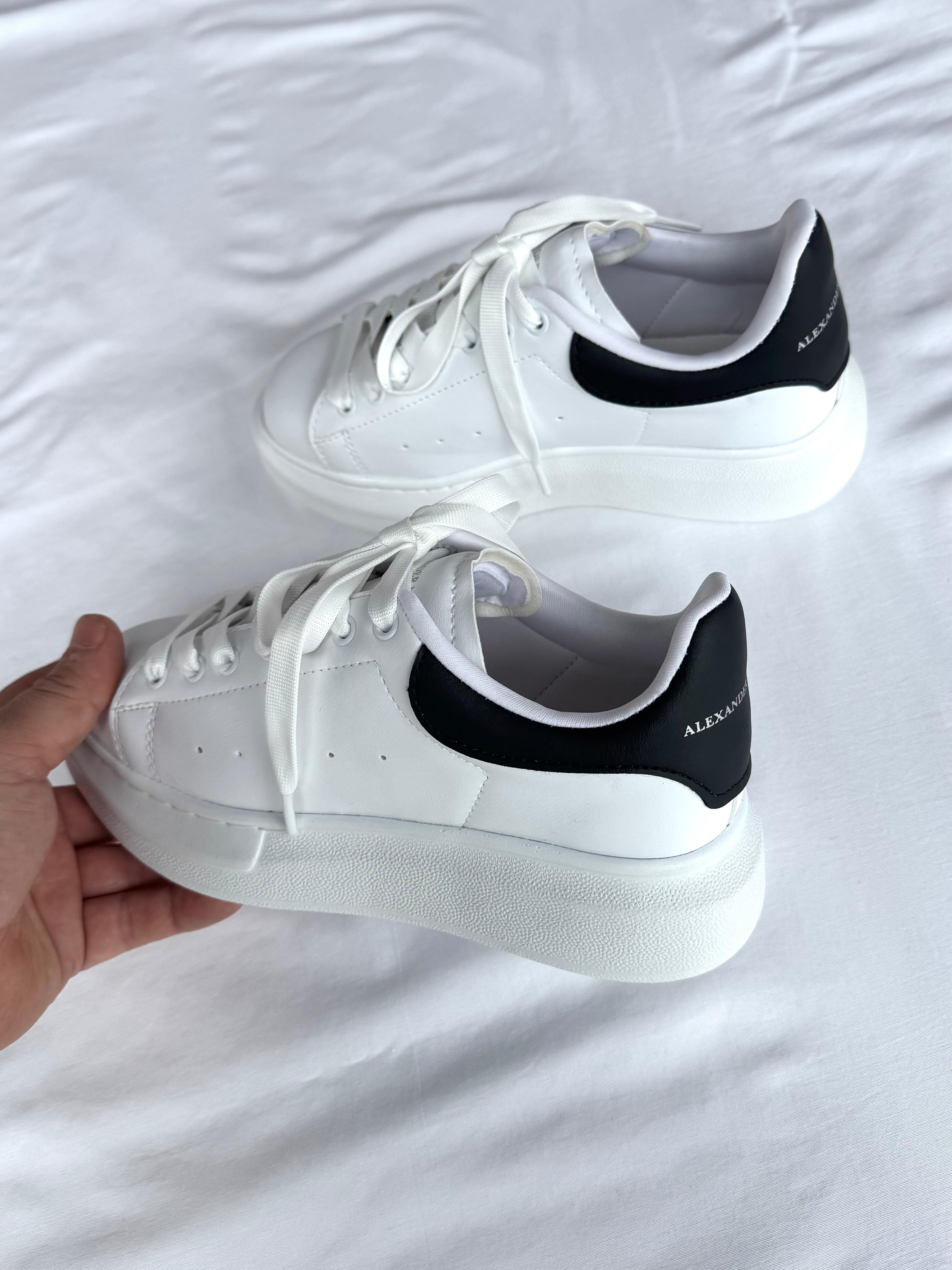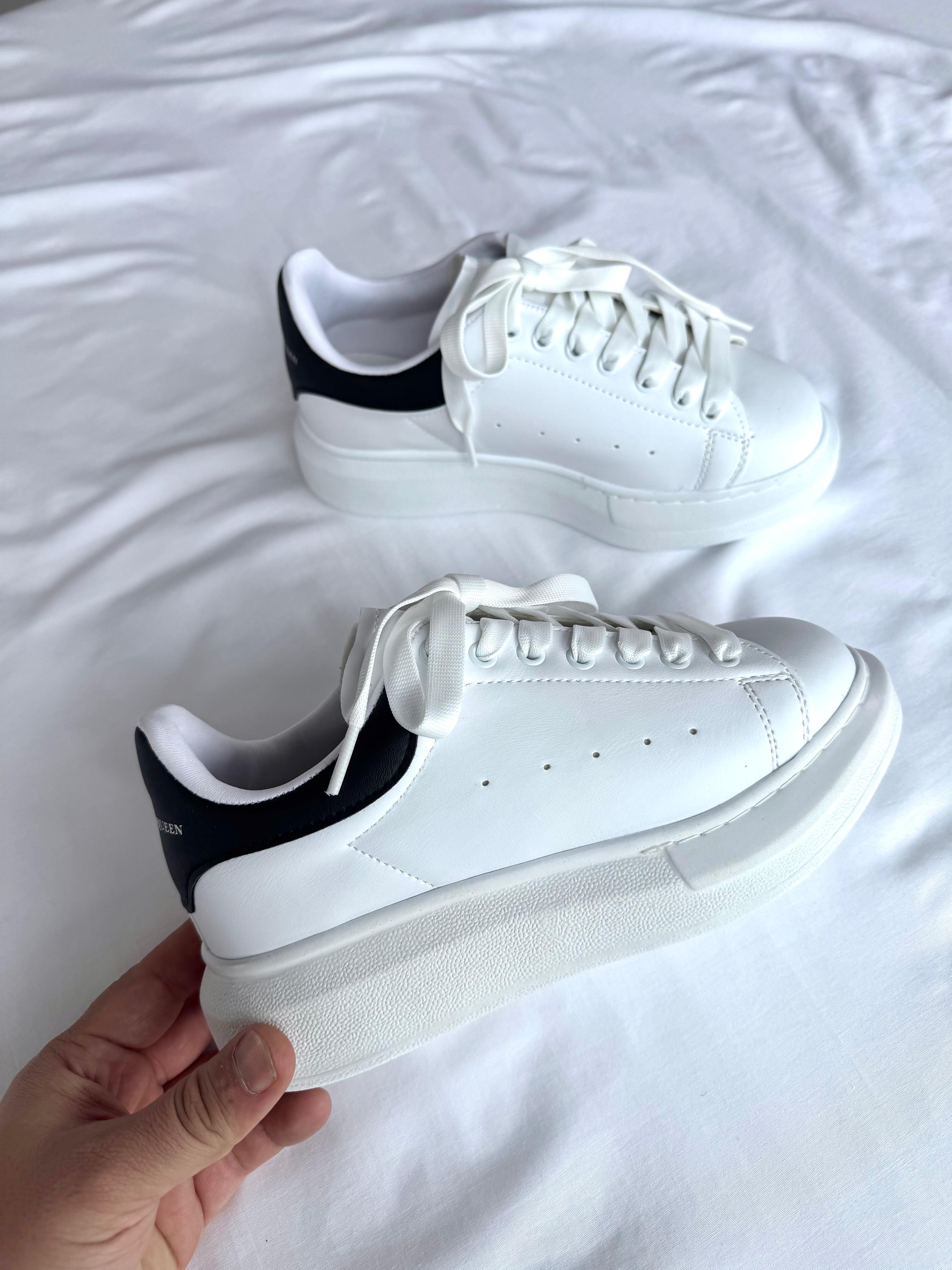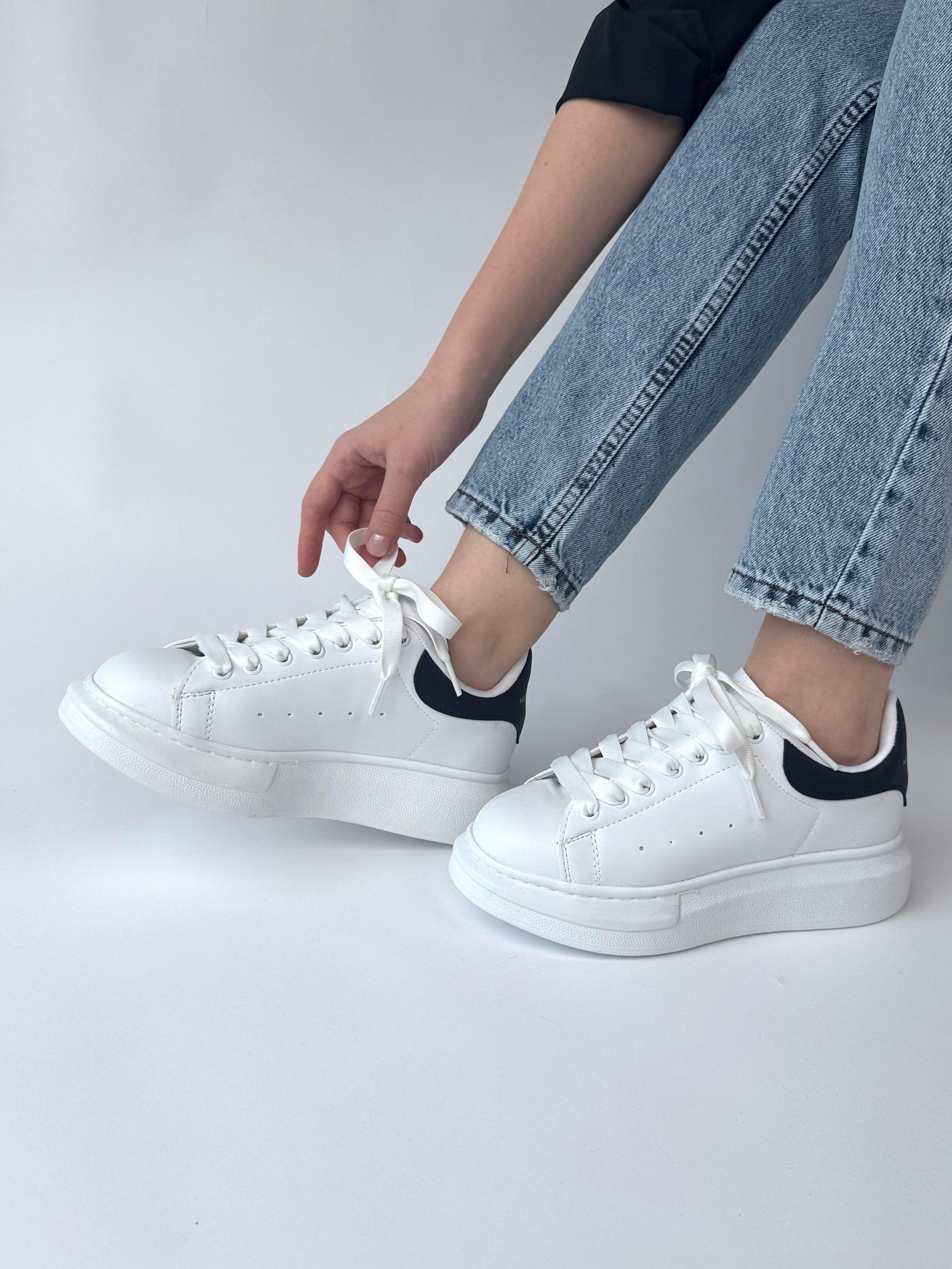 AYK-1017 Beyaza Siyah Detaylı Yüksek Taban Suni Deri Muadil Snekaer