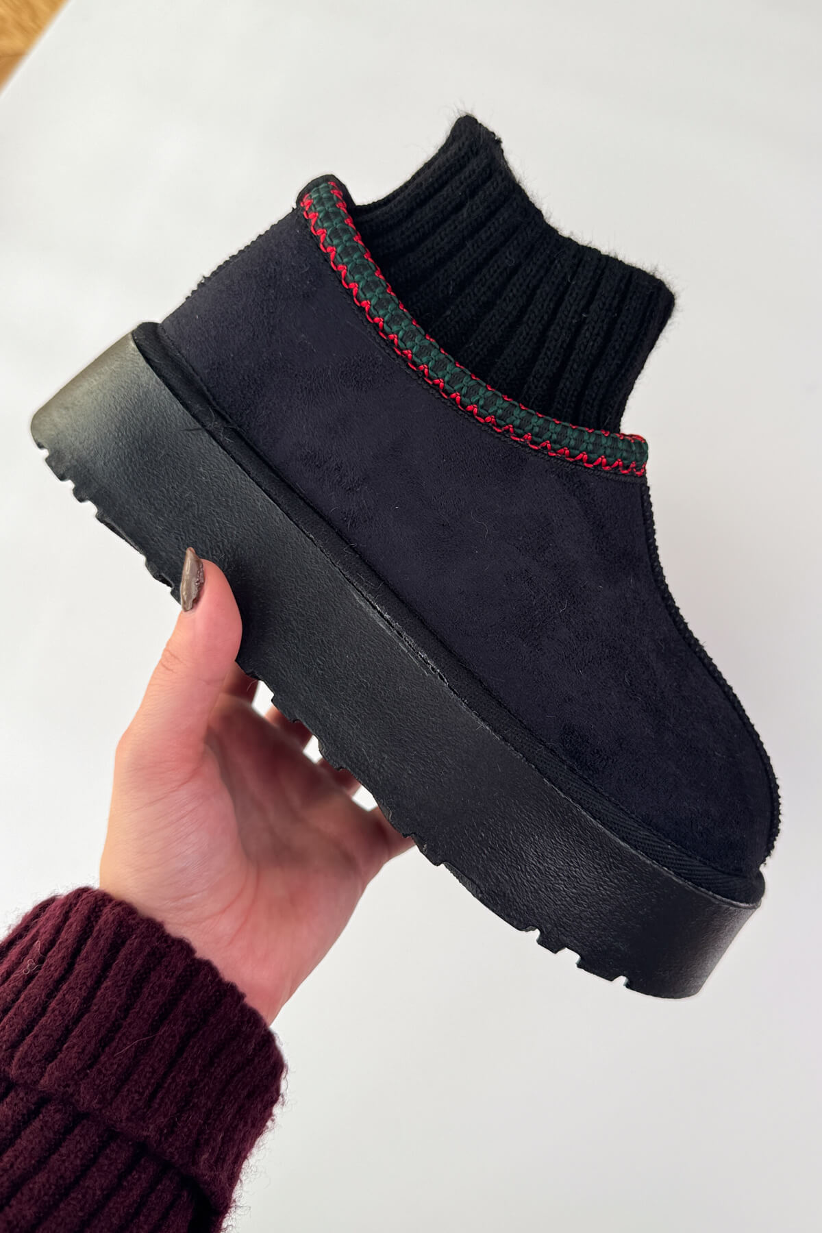 • Örgü bilek detayı sayesinde ayağa tam oturur ve modern bir görünüm kazandırır.