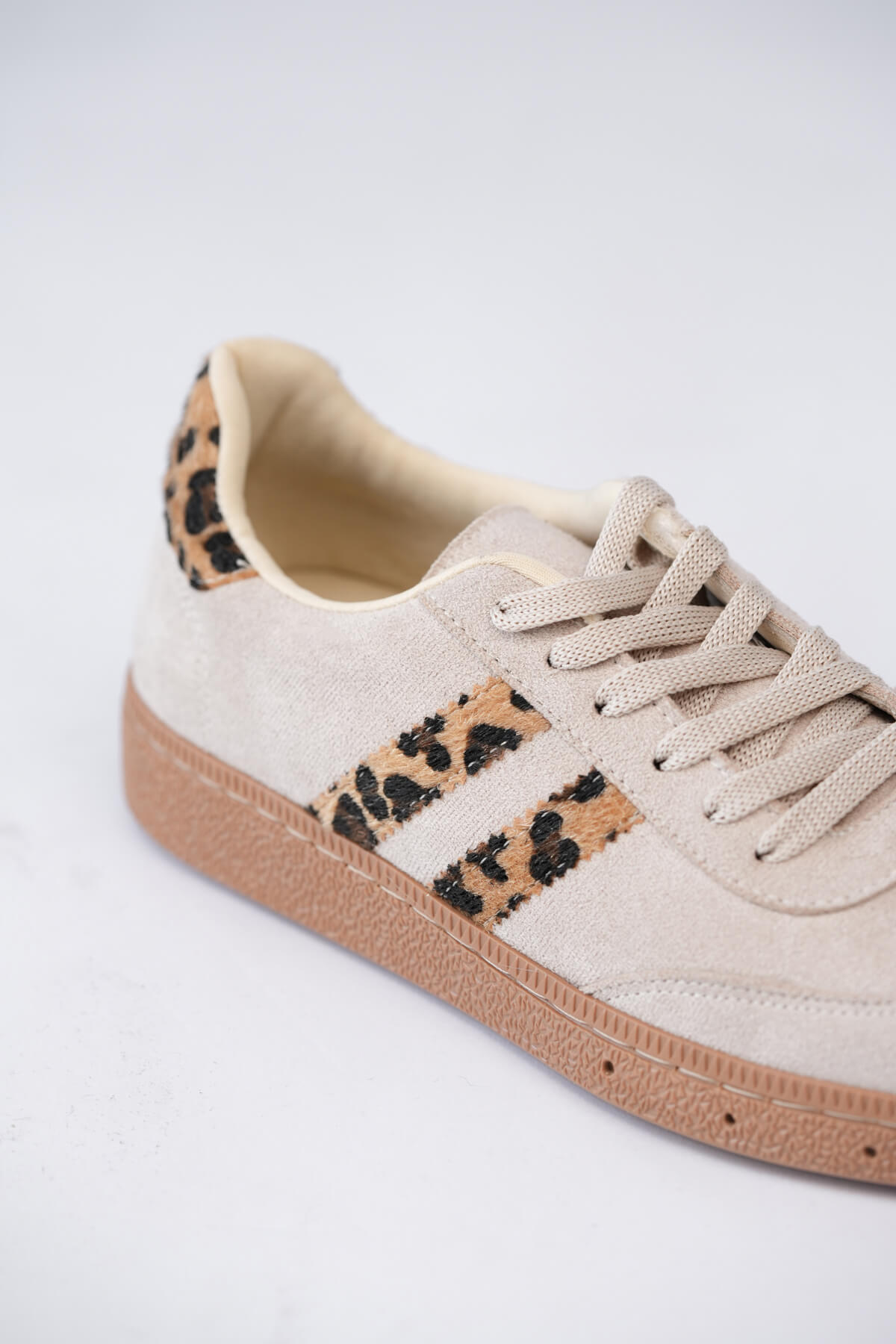 Vahşi doğanın ikonik deseniyle modern şehir stilini bir araya getiren bu sneaker, günlük kombinlerinize sofistike bir dokunuş katıyor. Yumuşak süet dokusu ve kontrast oluşturan leopar şeritleriyle dikkat çeken tasarım, konforlu taban yapısı sayesinde gün boyu kusursuz bir yürüyüş deneyimi sunuyor. Hem spor şıklığı hem de çarpıcı detayları bir arada arayan kadınlar için özel olarak tasarlanan bu model, dolabınızın en joker parçalarından biri olmaya aday.
