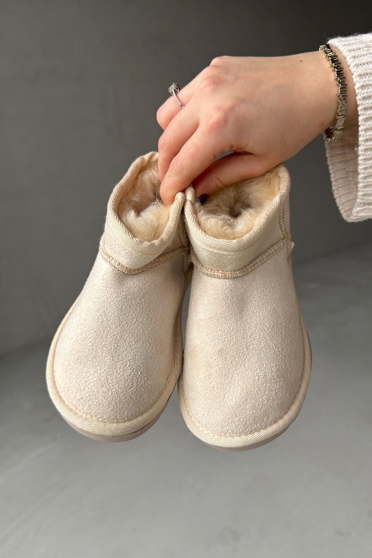ÇCK-9001 Taş Rengi Mini İçi Kürklü Yumuşak Taban Çocuk Bot