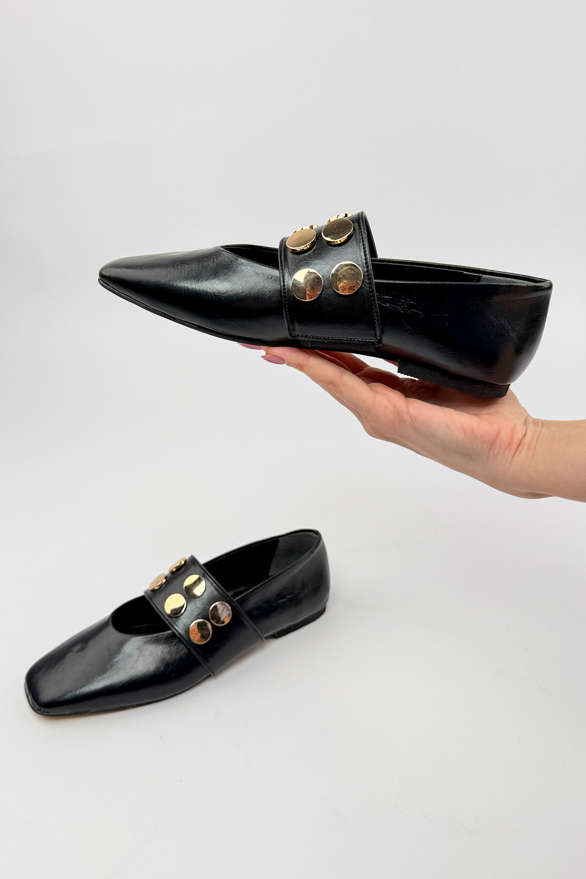 Birinci kalite suni deri kullanılarak üretilen bu özel tasarım, yumuşacık deri dokusuyla ayağınızı nazikçe sararak eşsiz bir konfor sunuyor. Üst kısmında yer alan lastik detayı kullanım kolaylığı sağlarken, üzerindeki dairesel trok aksesuarları tasarıma modern ve iddialı bir dokunuş katıyor. Rahat taban yapısı ve tam kalıp özelliği sayesinde gün boyu süren bir konfor vaat eden bu model, stilinde hem şıklığı hem de rahatlığı ön planda tutanlar için tasarlandı.