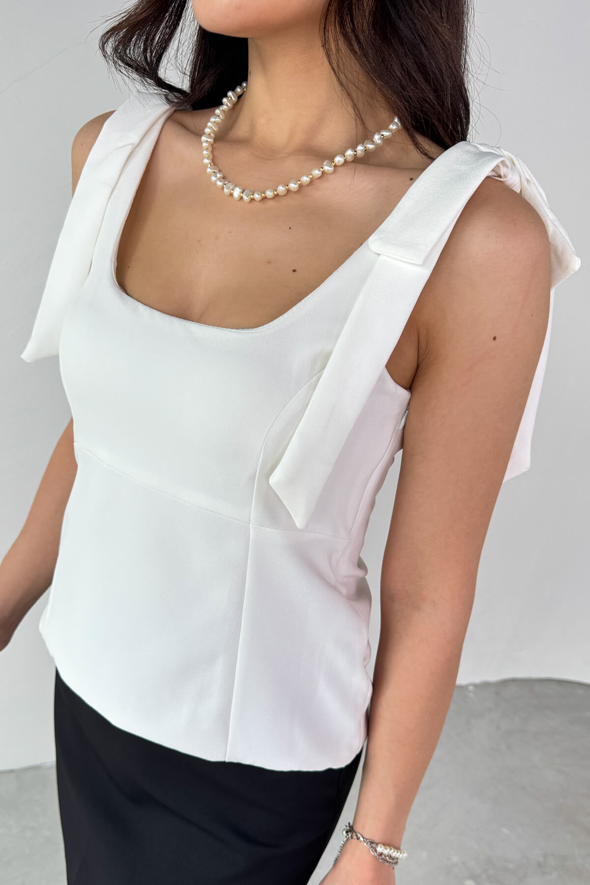 BLZ-06286 Beyaz Havuz Yaka Askılı Bluz