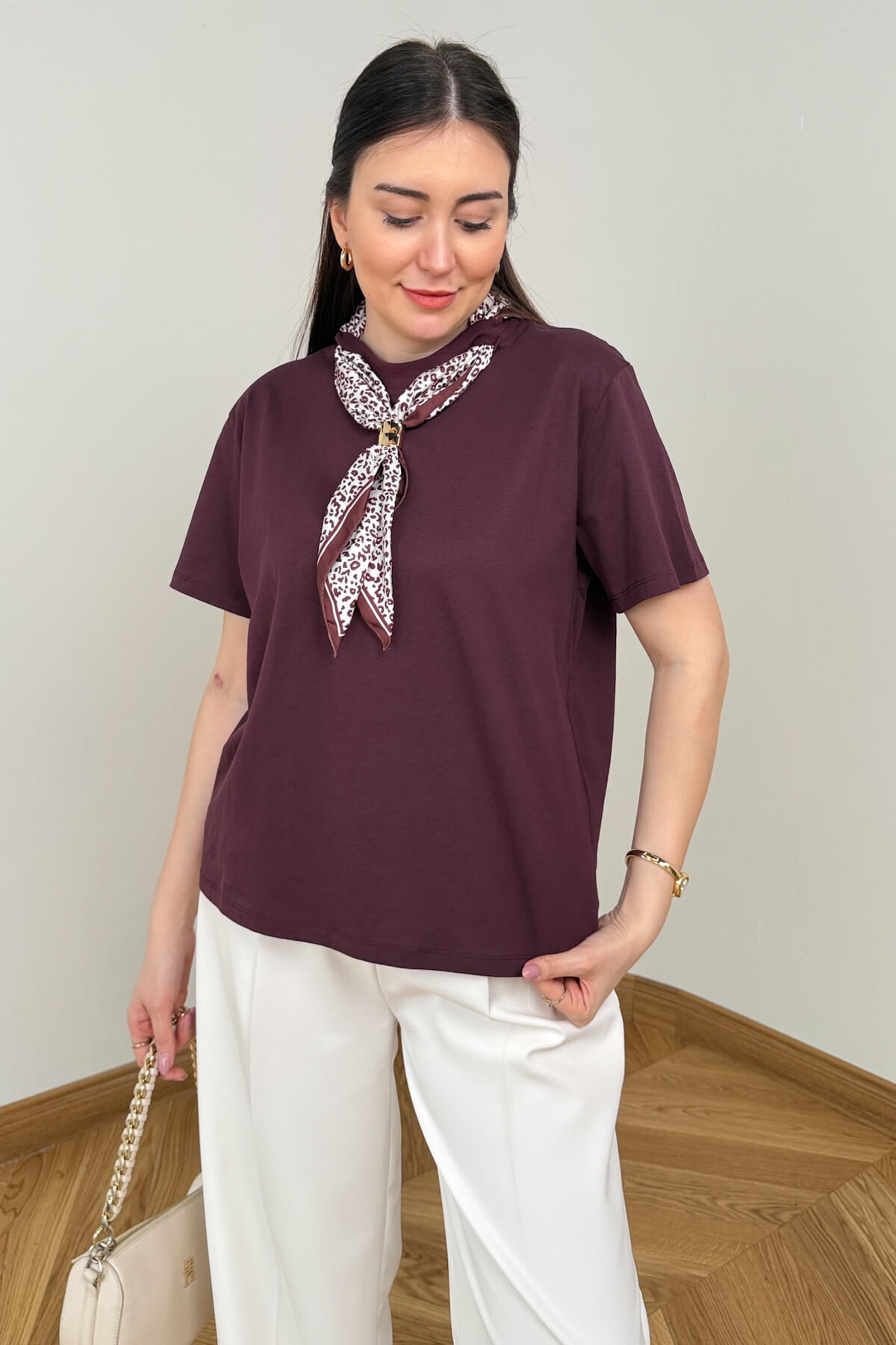 Pamuklu dokunun doğal ve yumuşak hissini zarif bir aksesuarla taçlandıran bu bluz, günlük stilinize sofistike bir dokunuş katıyor. Tasarıma dahil olan leopar desenli fular detayı, en sade kombinleri bile anında hareketlendirerek çabasız bir şıklık sunuyor. Nefes alan pamuklu kumaşı sayesinde gün boyu konfor sağlayan bu parça, modern kesimi ve zarif boyun detayıyla gardırobunuzun vazgeçilmez temel parçalarından biri olacak.