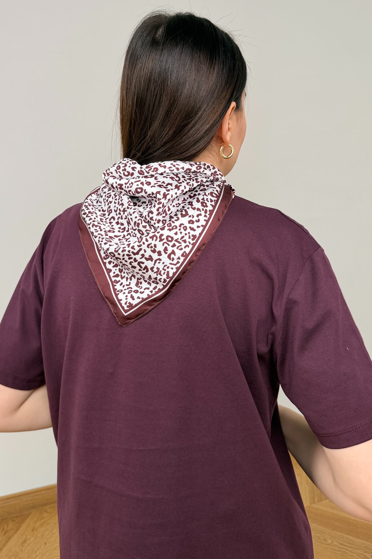 Tasarım Detayı: Yakada sabitlenen, metal tokalı ve leopar desenli şık fular aksesuarı.