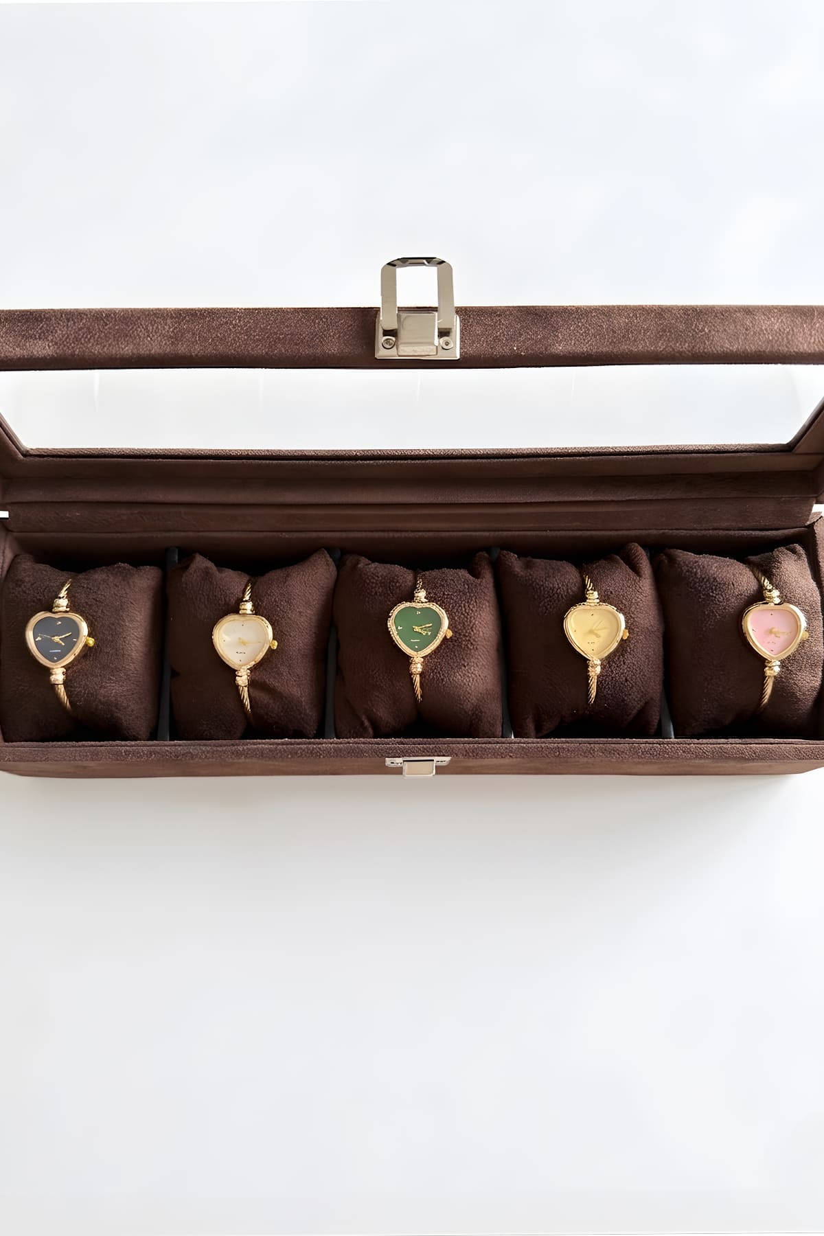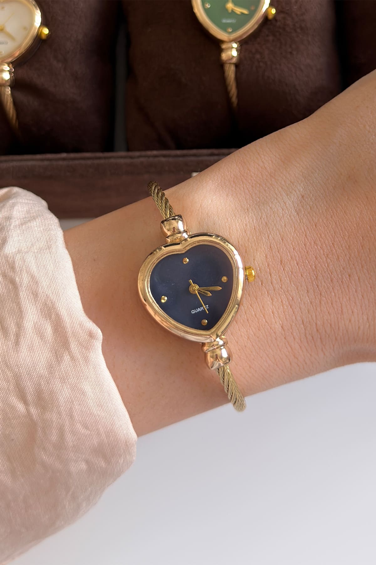 Aşkın en zarif halini bileğinizde taşıyın; Romantik kalp formu ve ince hasır kordonuyla zarafeti yeniden tanımlıyor. Modern kadının romantik ruhunu yansıtan bu özel tasarım, minimal kadranı ve gold ışıltısıyla hem günlük stilinize hem de en özel anlarınıza eşsiz bir dokunuş katıyor. Paslanmaz çelik yapısı ve yüksek kaliteli kaplaması sayesinde ilk günkü parlaklığını koruyan bu saat, kendinizi veya sevdiklerinizi şımartmak için kusursuz bir tercih.