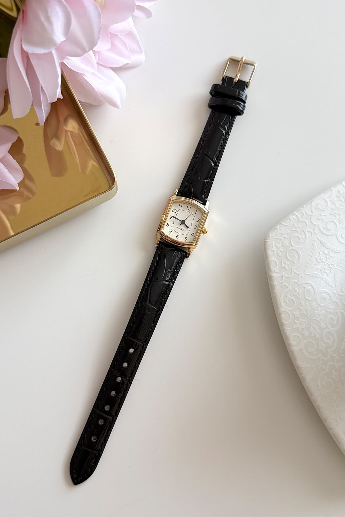 Klasik çizgilerin modern zarafetle buluştuğu bu özel tasarım kol saati, stilinize sofistike bir dokunuş katıyor. Gold (altın) tonlarındaki dikdörtgen kasası ve canlı renkli kadranı, geçmişin o asil havasını günümüze taşıyor.
