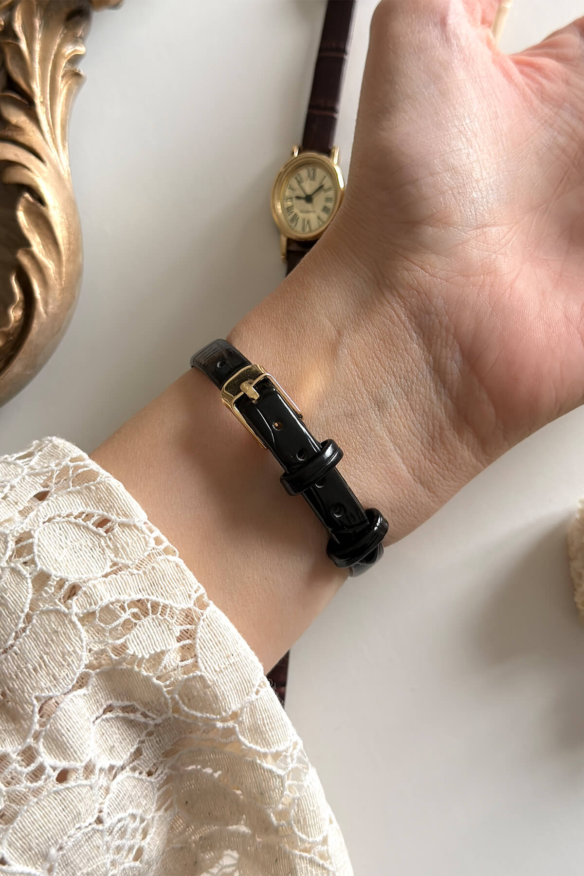 Cappmoda Chic Siyah Deri Kordon Gold Kadran Kadın Kol Saati