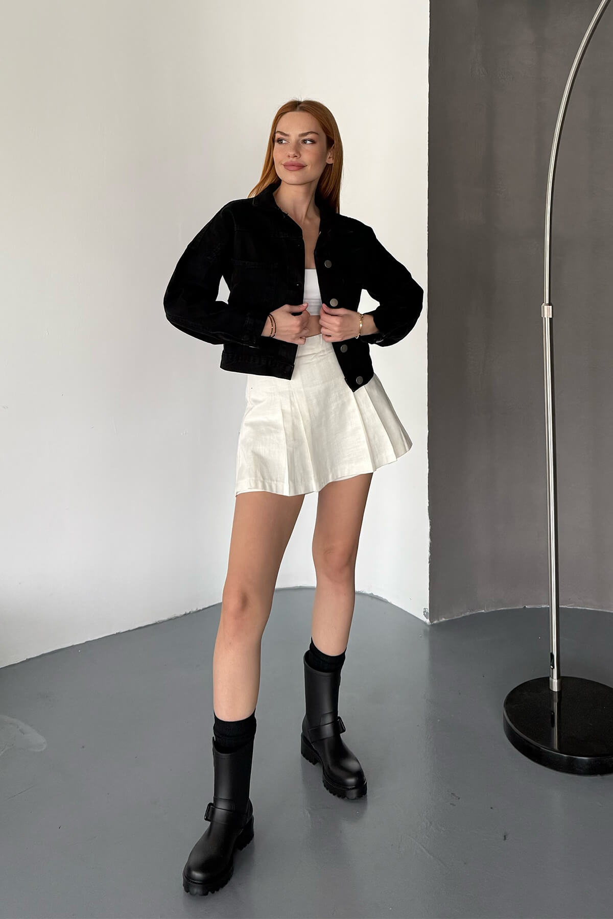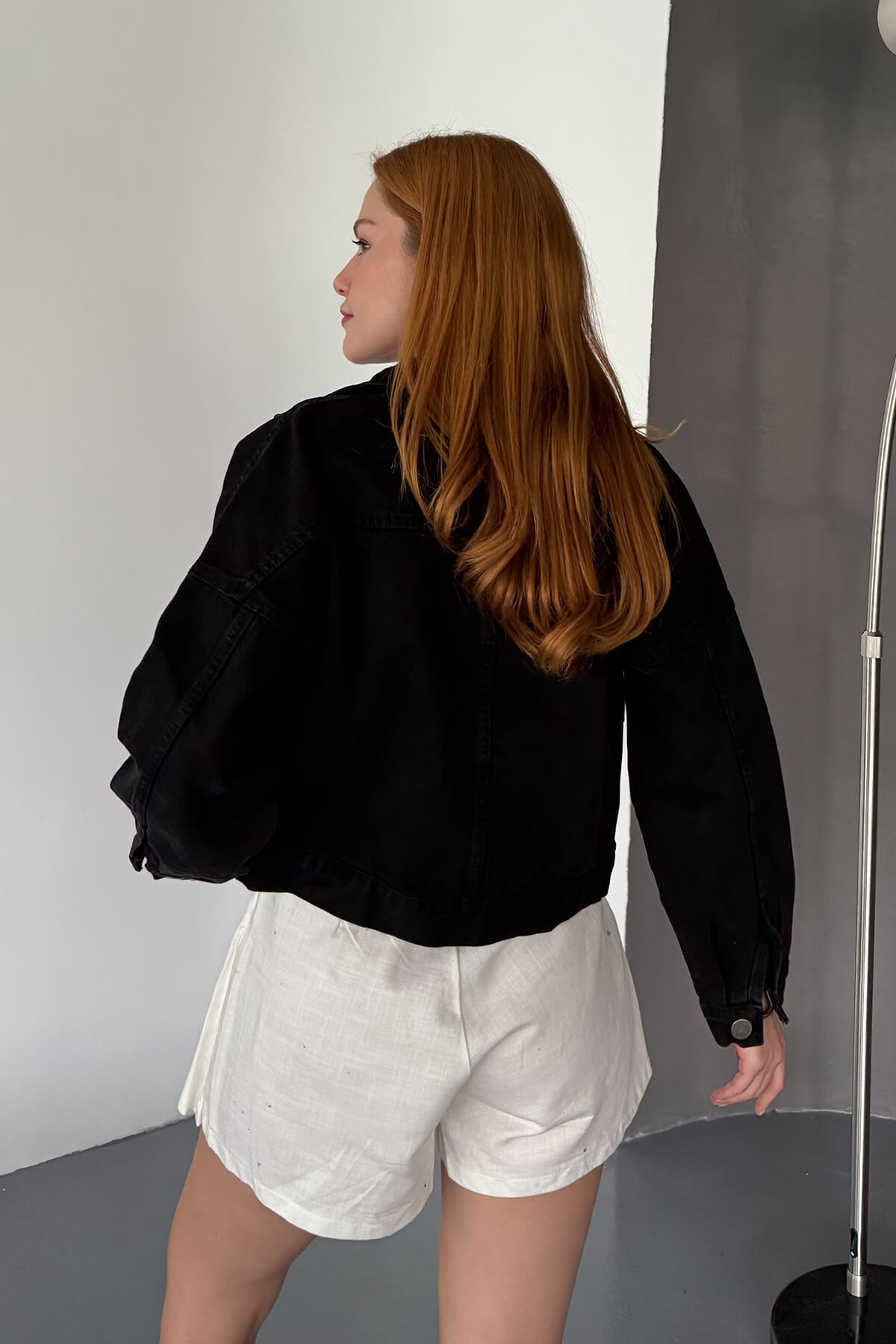 CKT-12434 Siyah Kot Kumaş Cep Detaylı Düğmeli Ceket