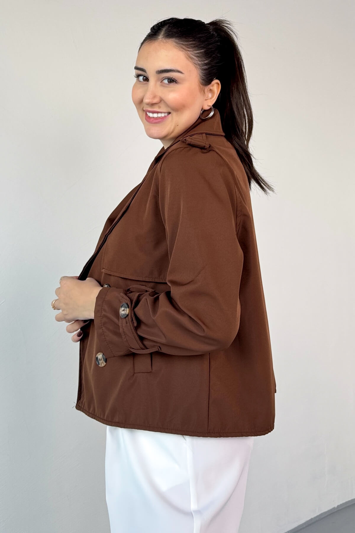 Kısa trençkot tasarımı (65 cm) ile şehir stiline uygun