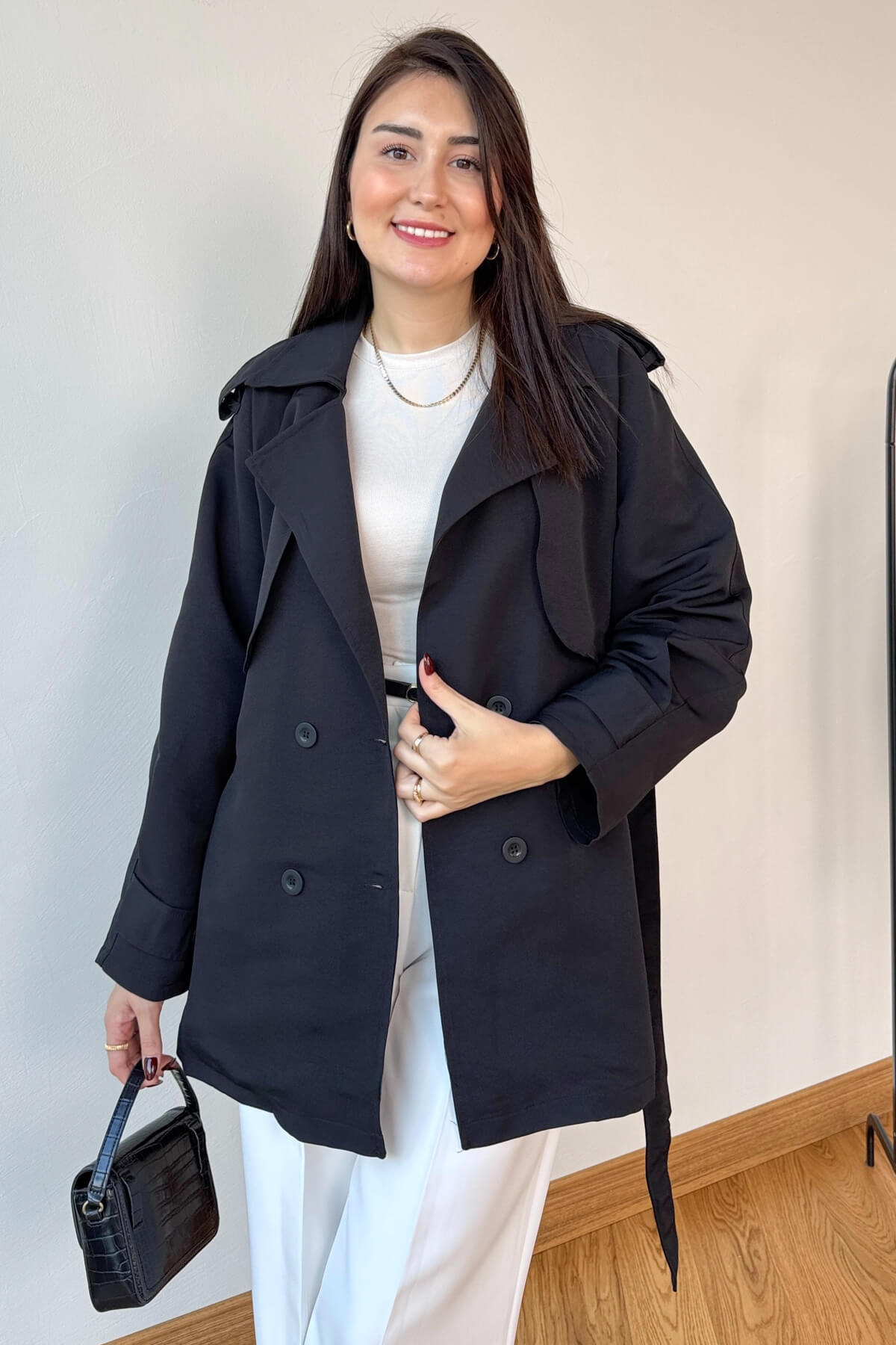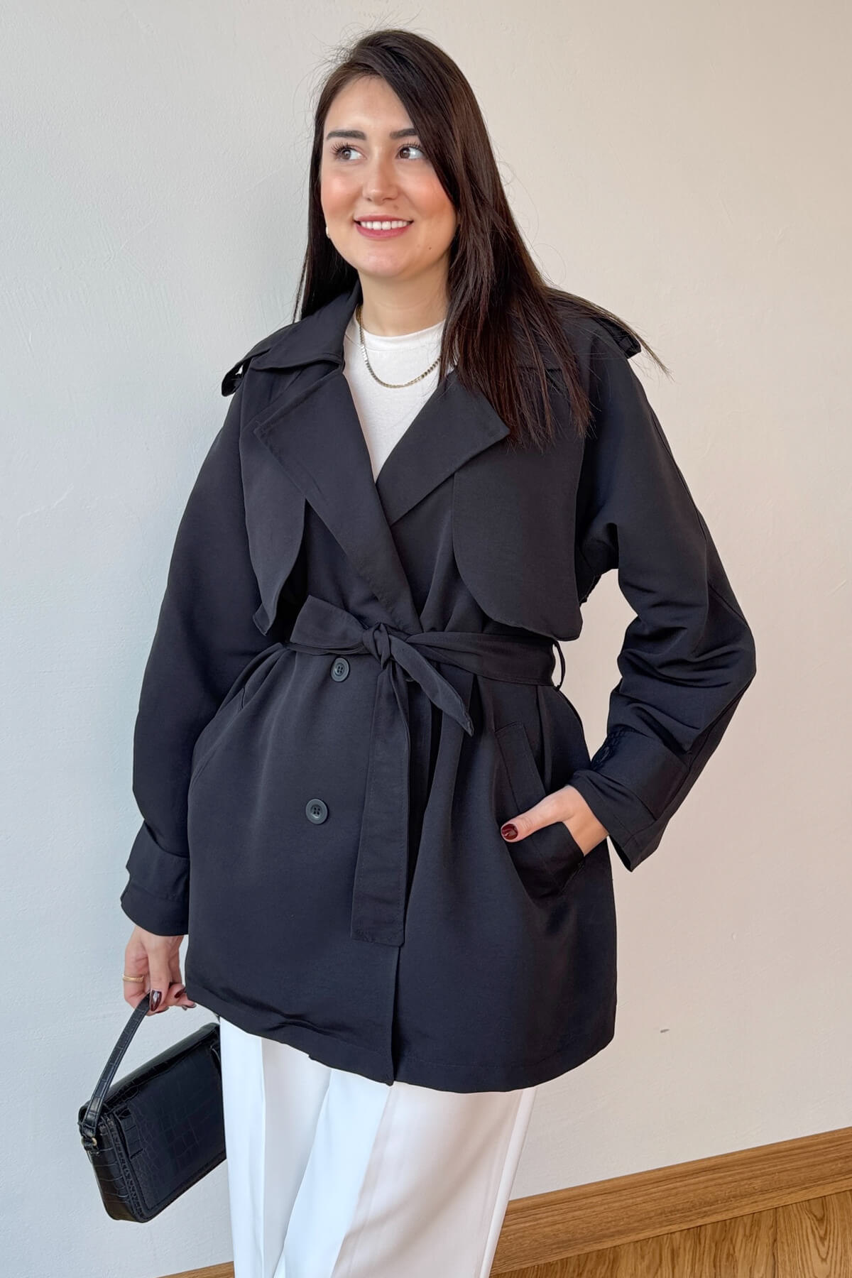 Orta boy trençkot tasarımı (Boy: 77 cm)