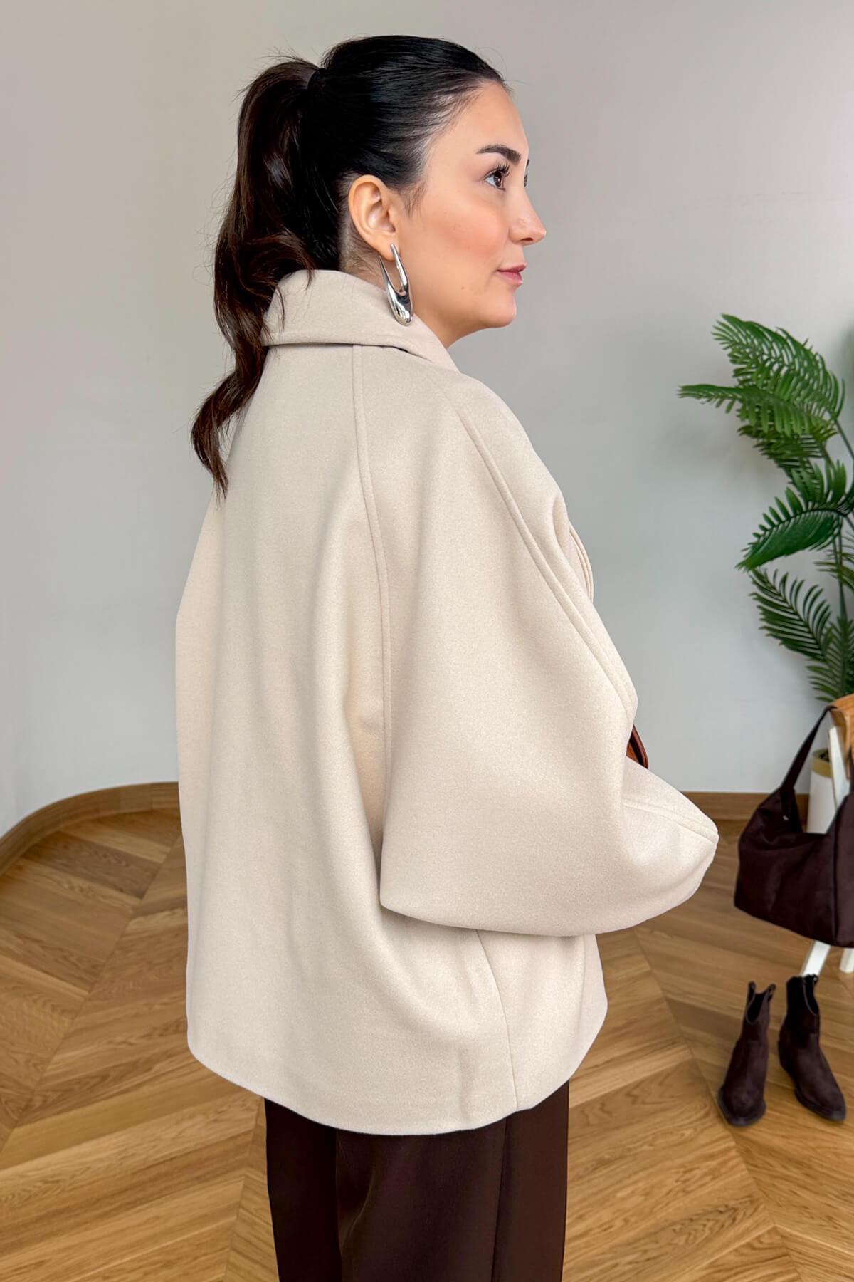 63 cm boy, şehir stiline uygun modern kısa ceket formu sağlar.