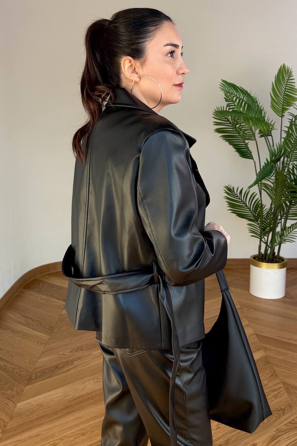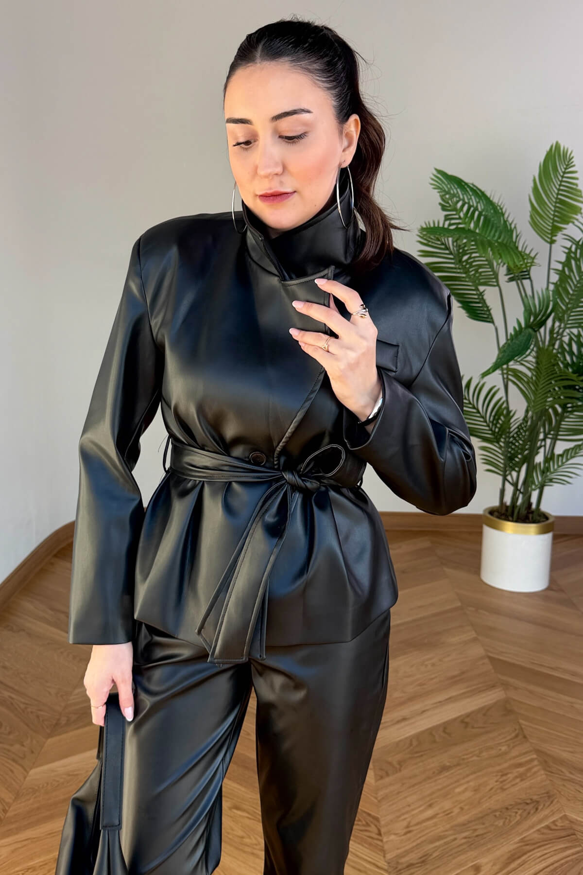 Kuşaklı kapanış, bel hatlarını vurgulayarak şık bir görünüm oluşturur.