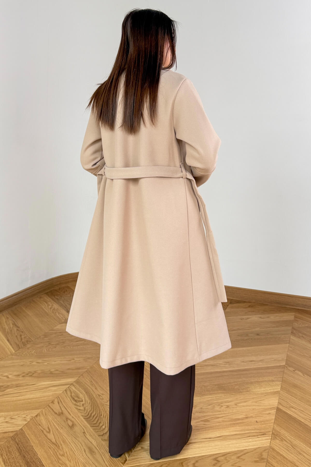 Kapama: Kruvaze düğme kapama ve belden bağlamalı kumaş kuşak.