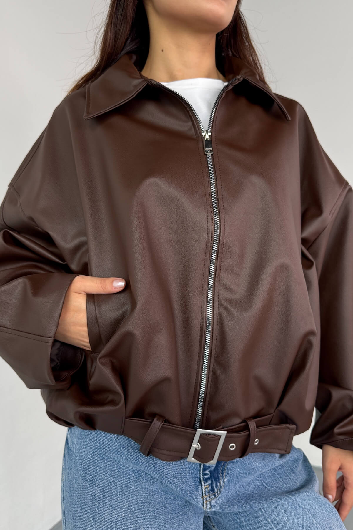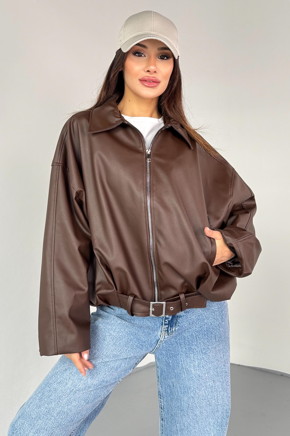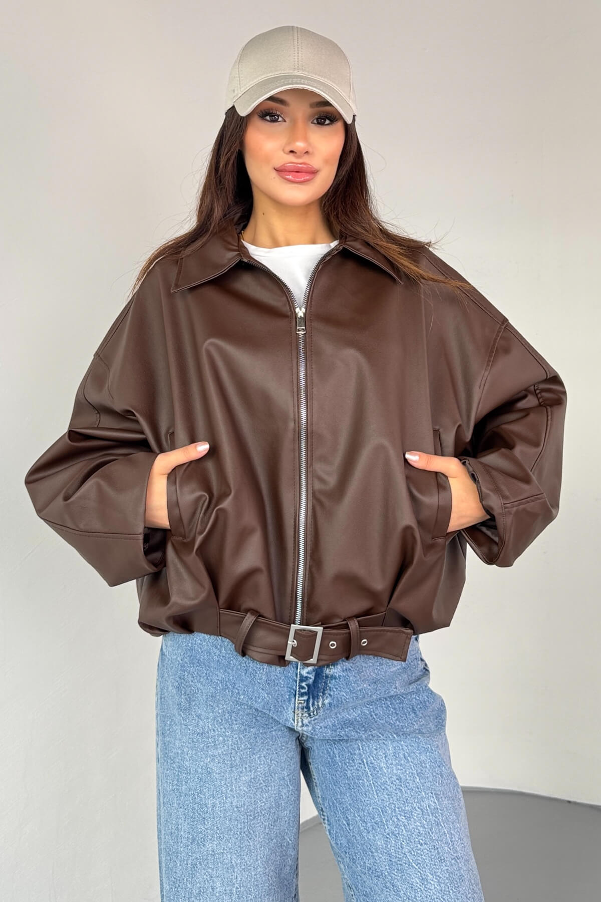 Tokalı kemer detayı, cekete güçlü ve karakteristik bir stil kazandırır