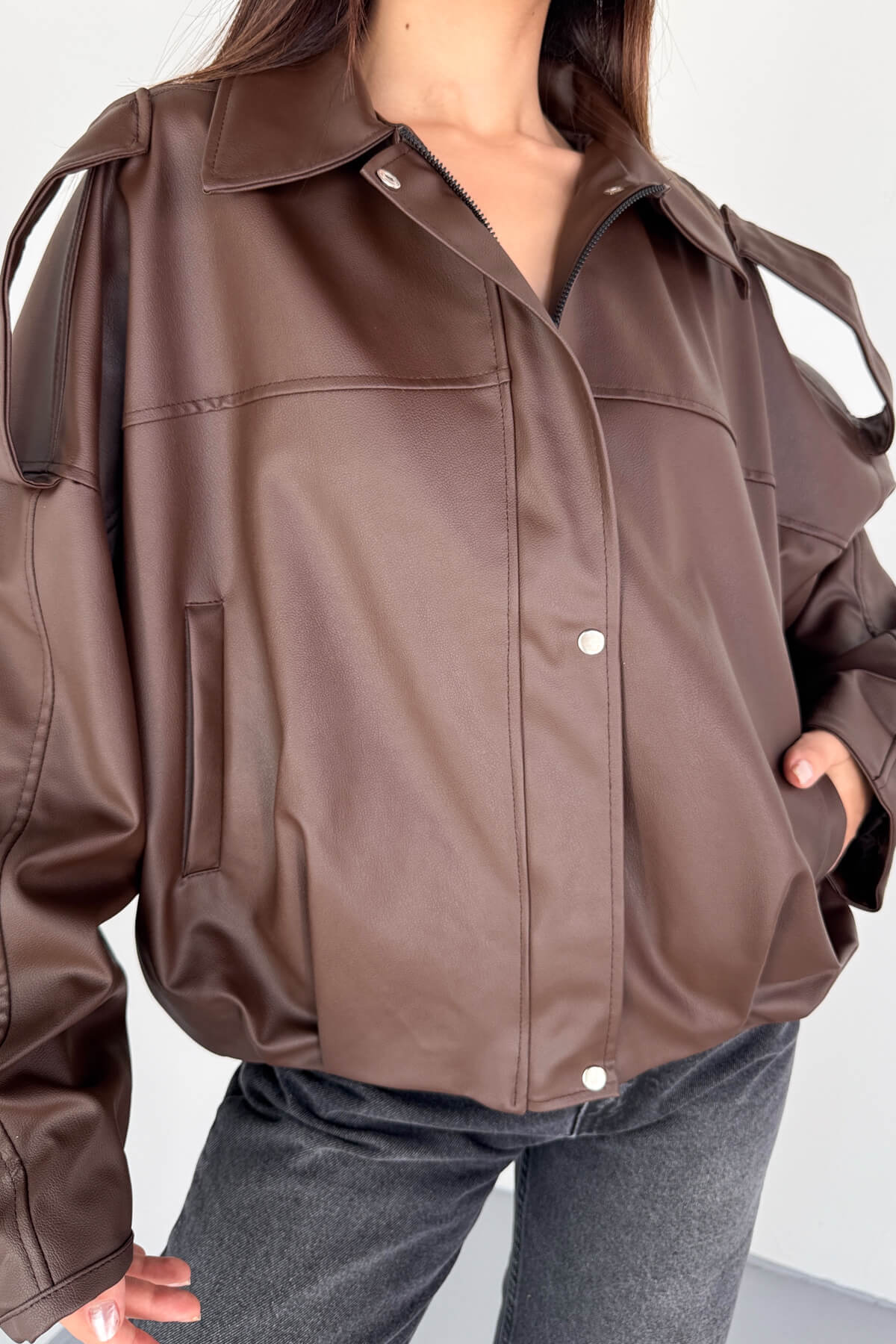Suni deri kumaş ile modern ve dikkat çekici stil