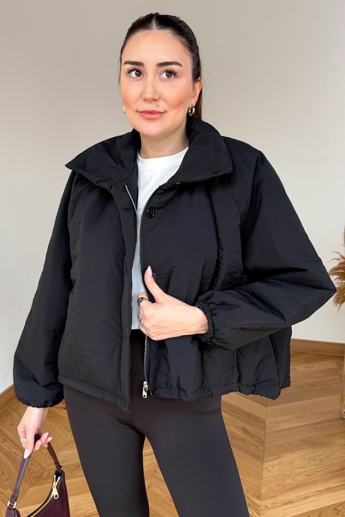 65 cm kısa mont boyu ile hem spor hem günlük kombinlerle uyumlu.
