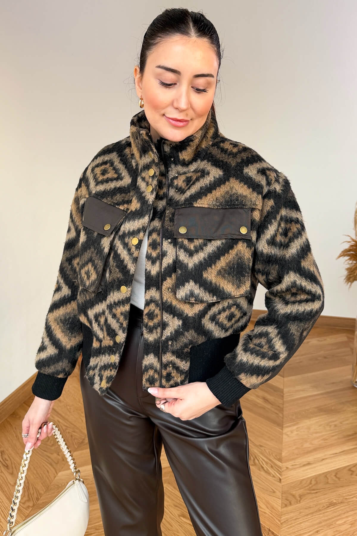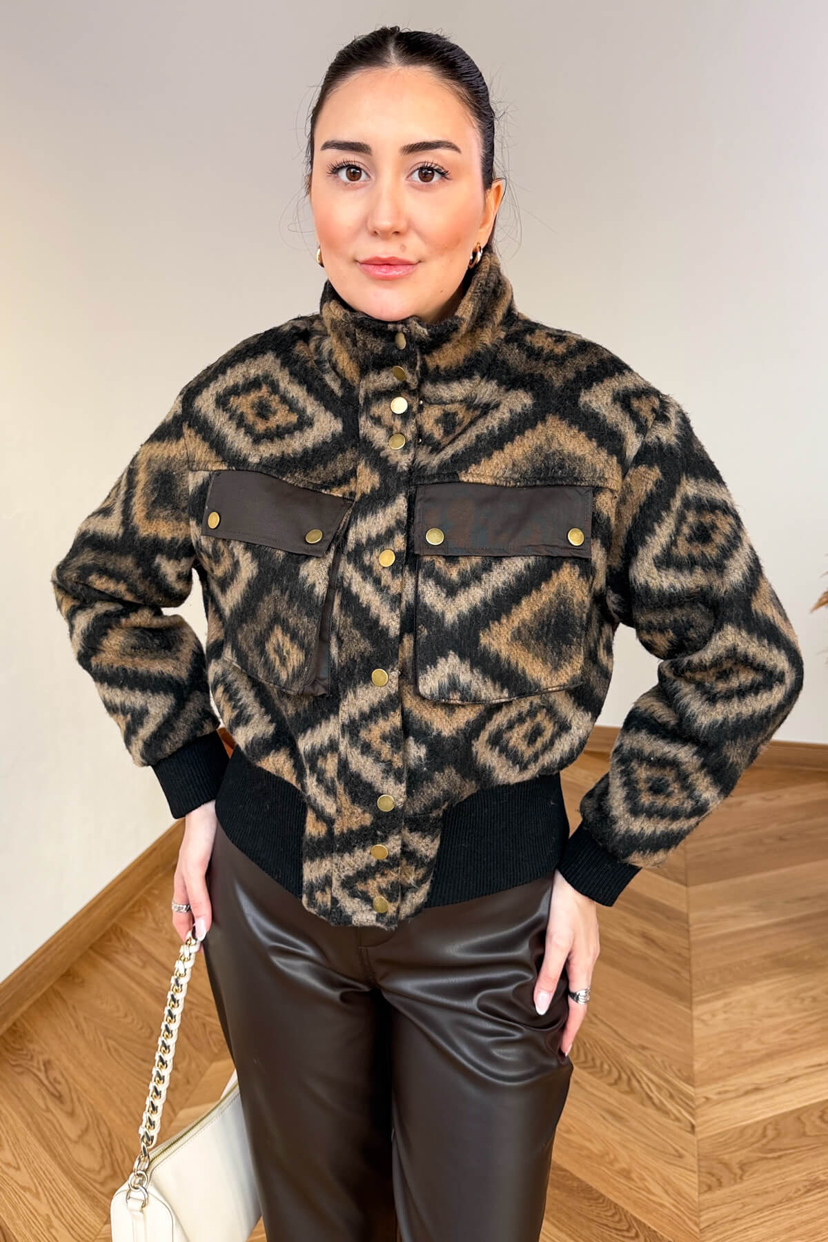 Bomber form ve bel lastiği ile konforlu, hacimli ve modern duruş.