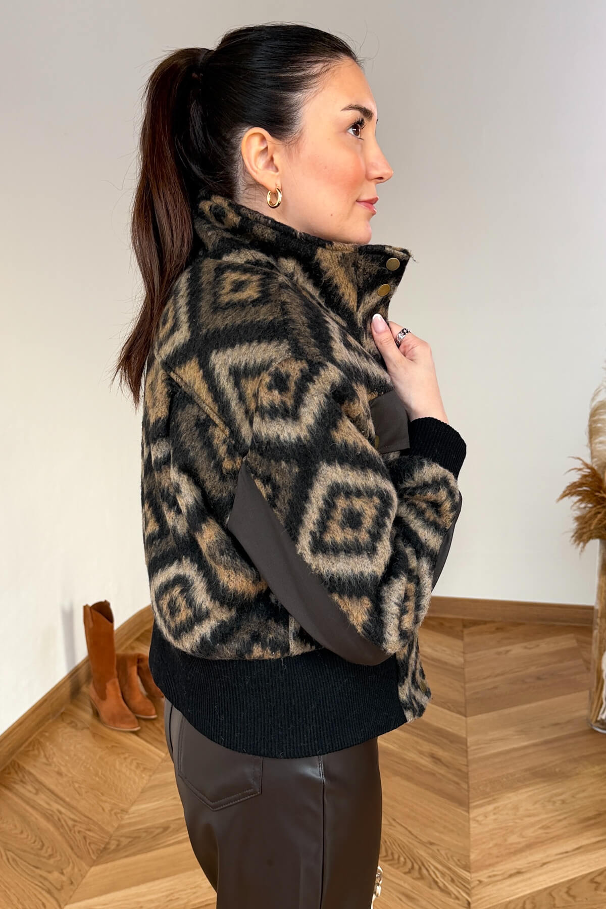 Etnik motifli premium dokuma kumaş: sıcak, yumuşak ve karakterli görünüm.