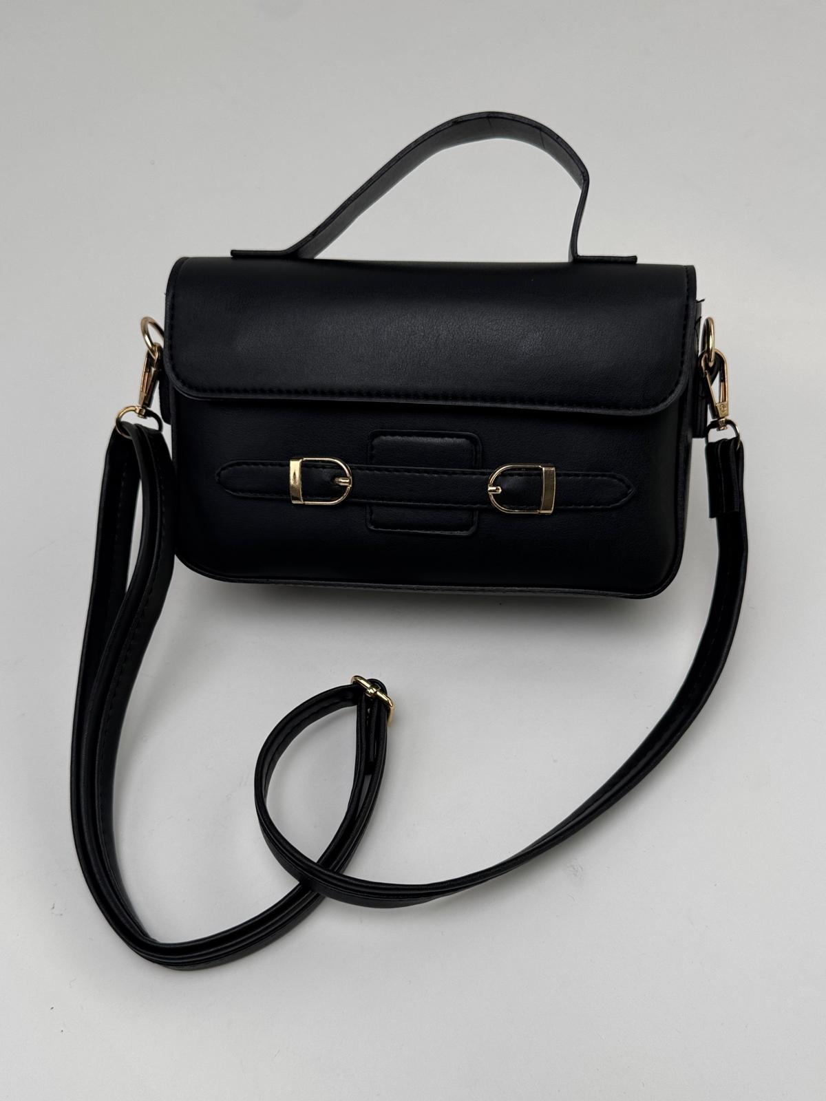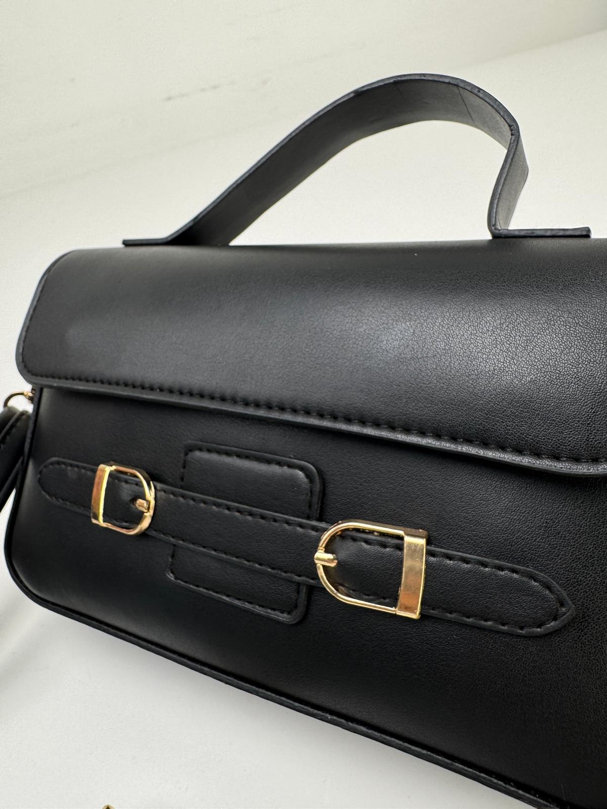 ÇNT-3015 Siyah Çift Toka Detaylı Crossbody Omuz Çantası