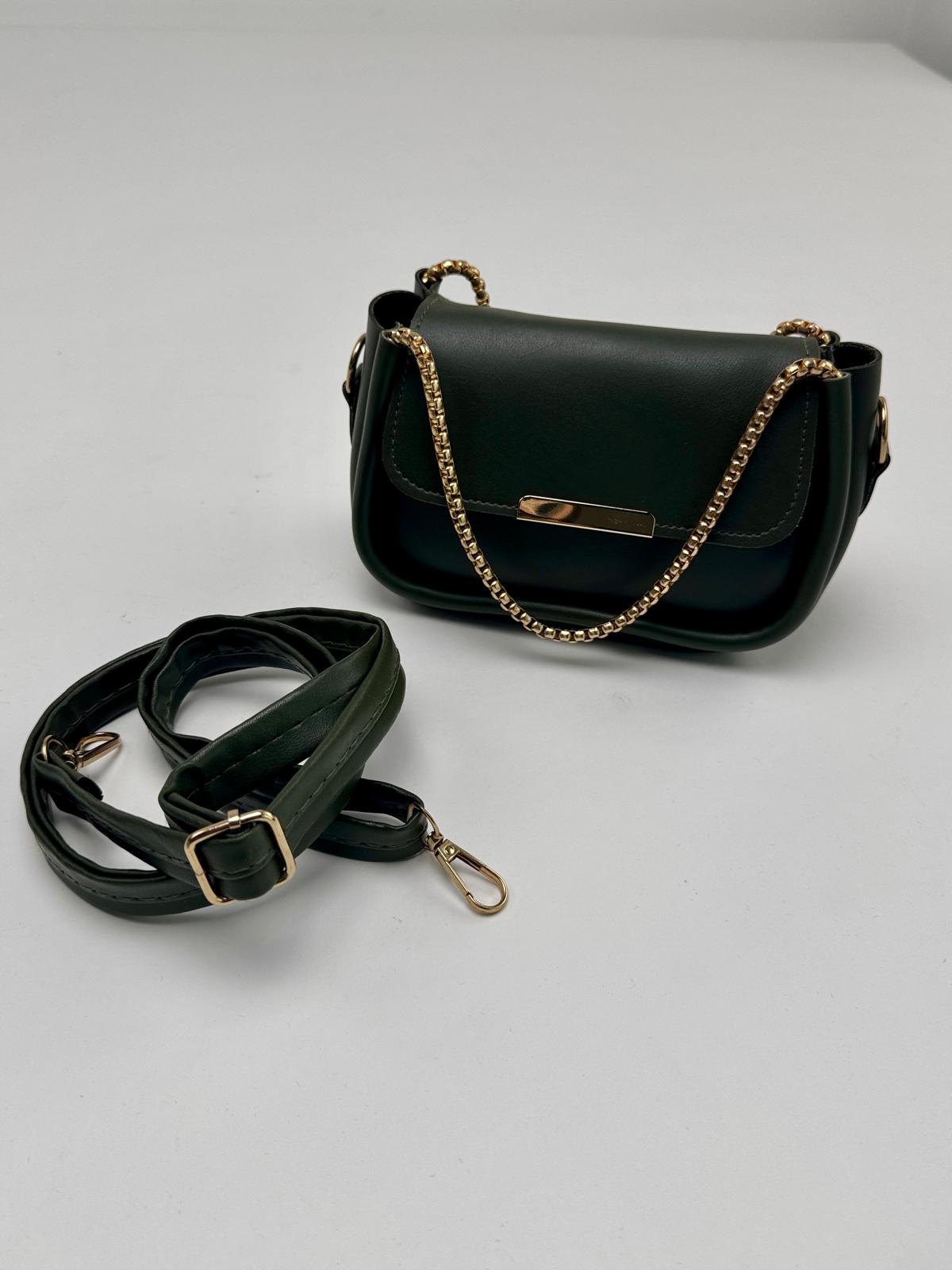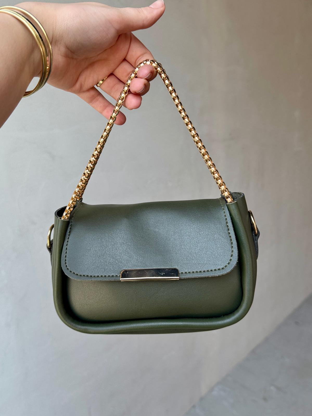 ÇNT-3016 Haki Zincir Askılı Suni Deri Crossbody Omuz Çantası