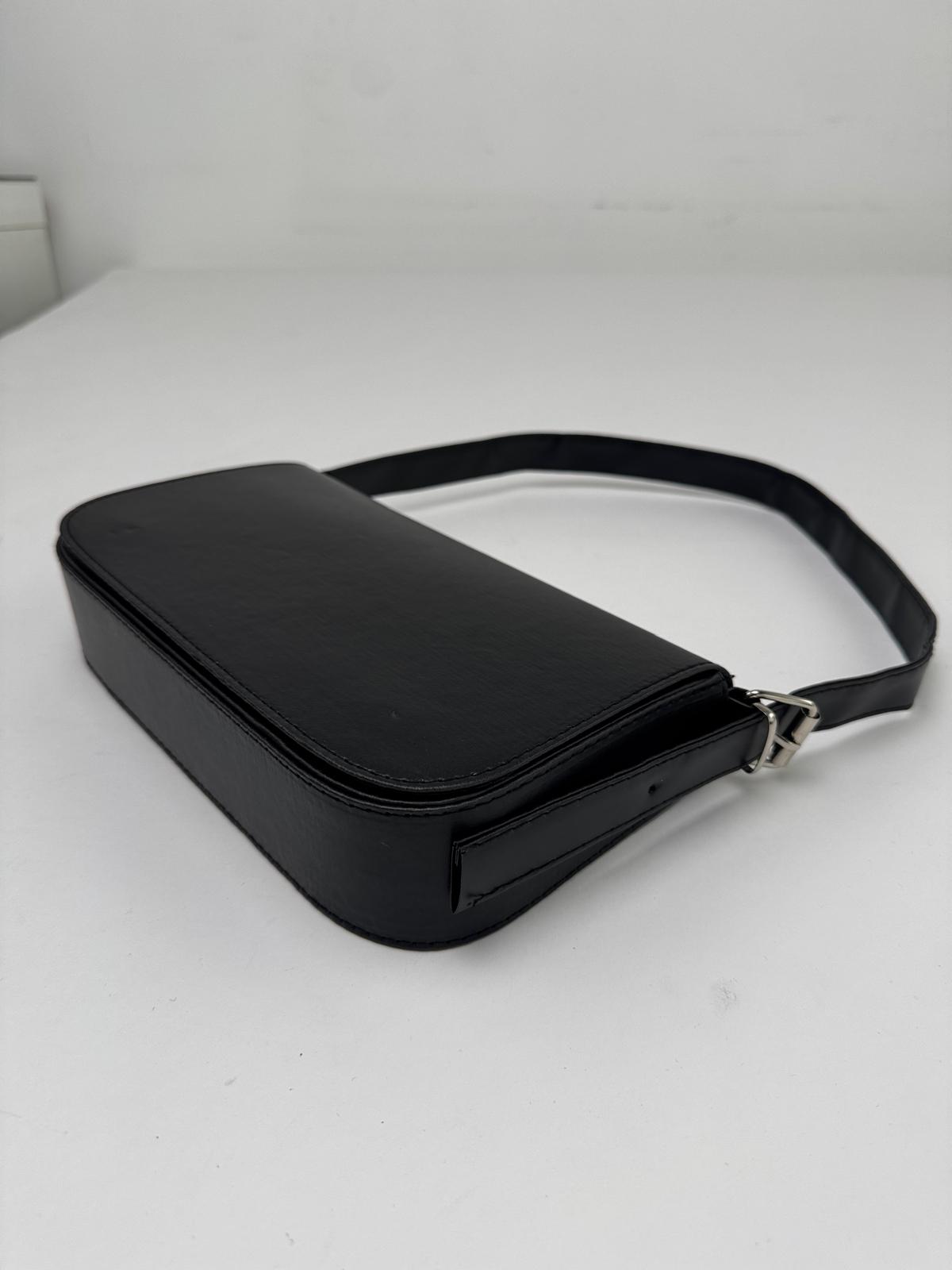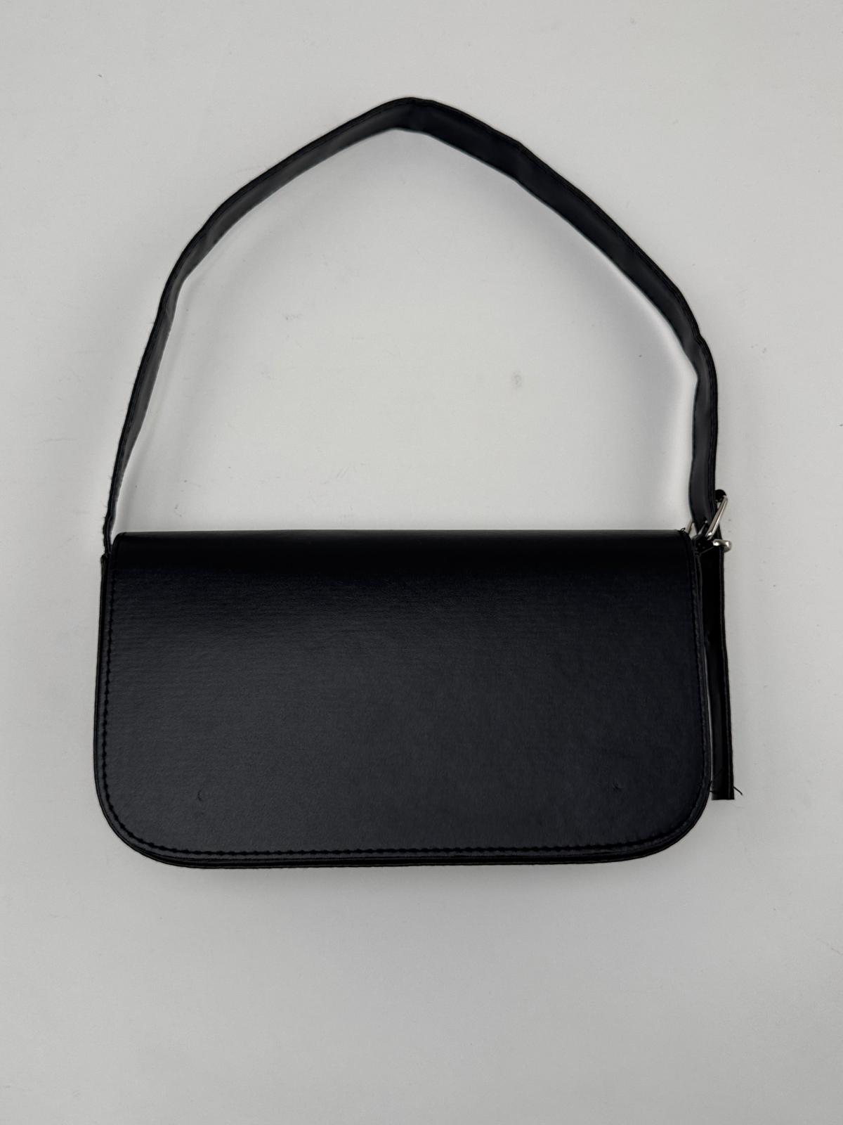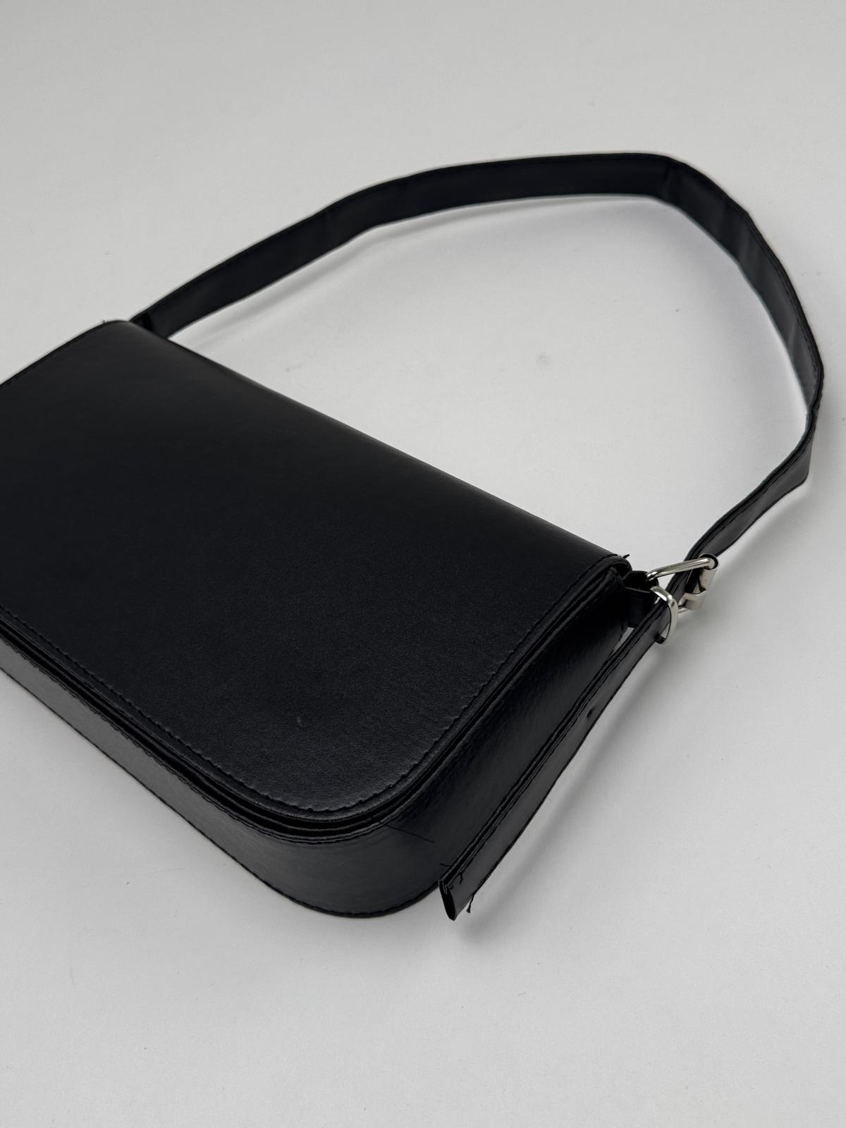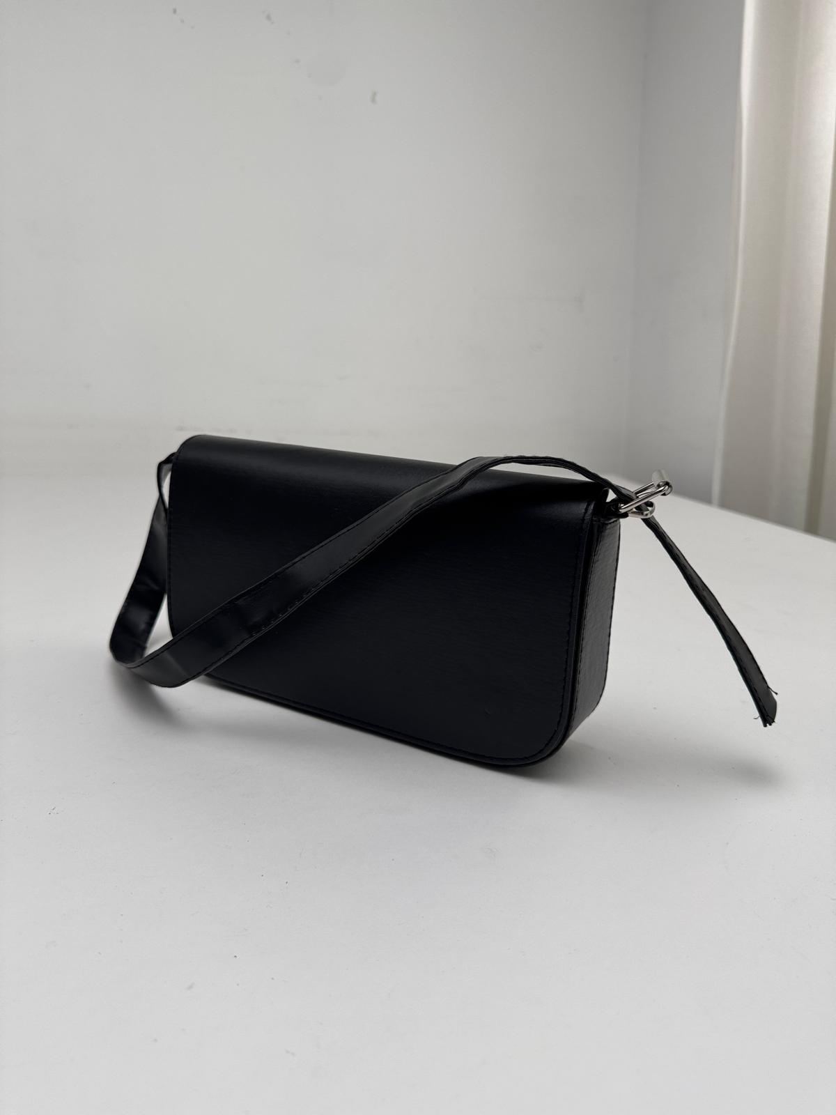 ÇNT-3022 Siyah Askılı Baget Suni Deri Omuz Çantası