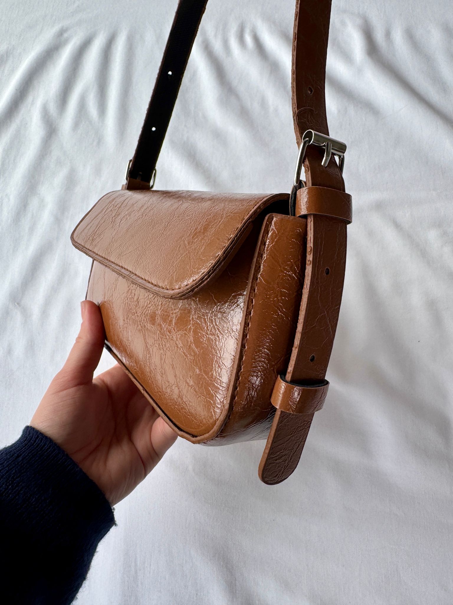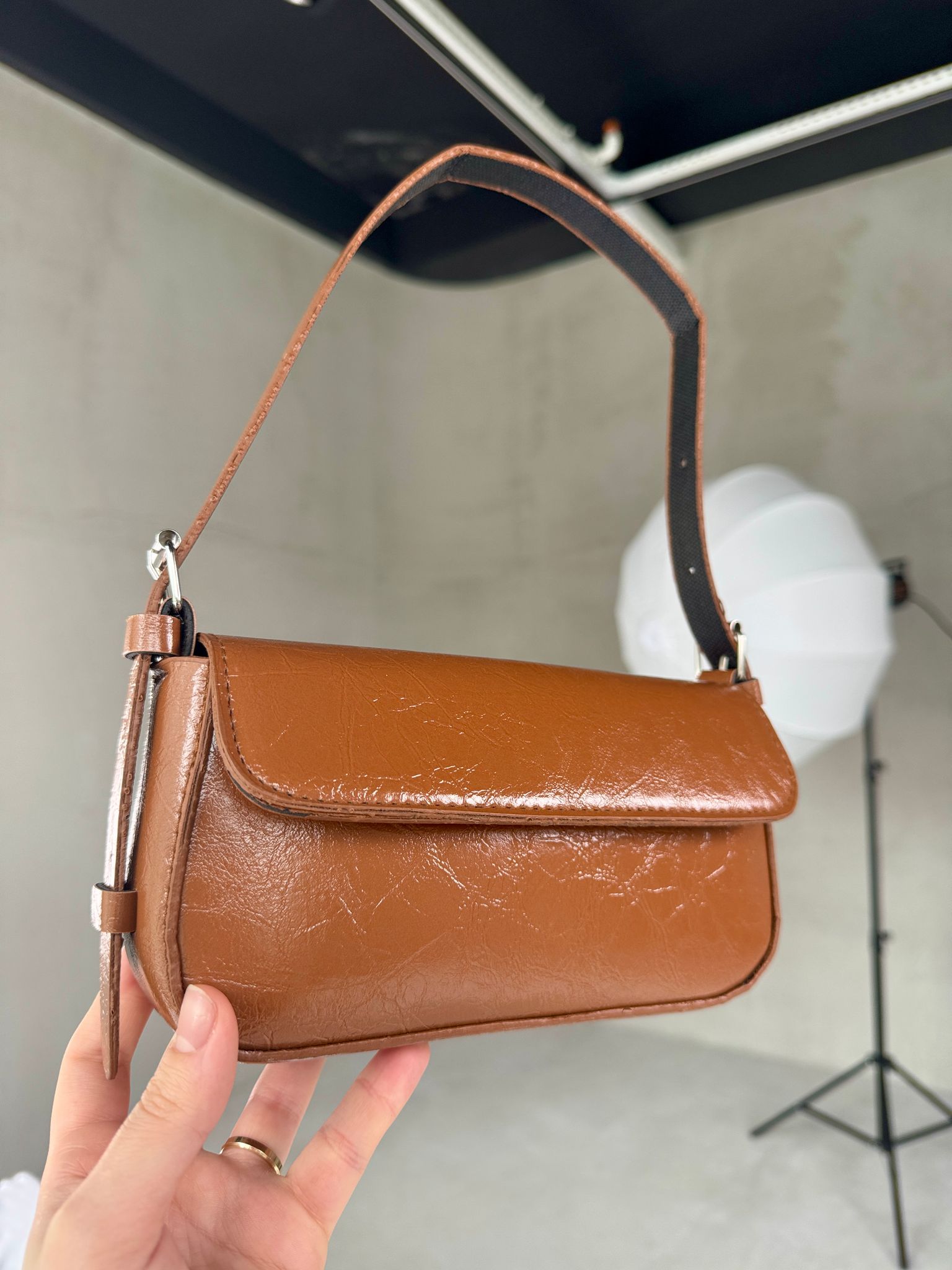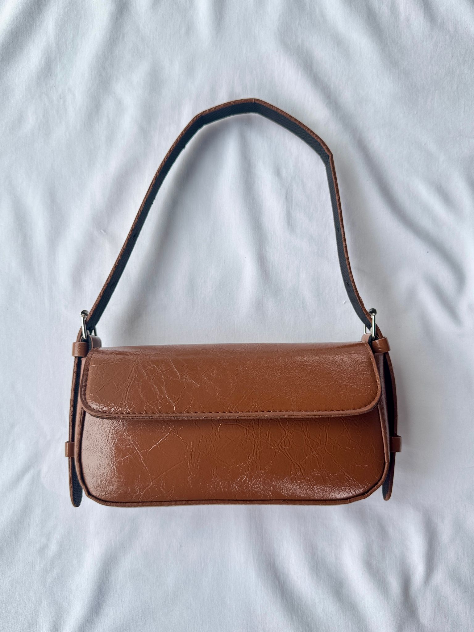 ÇNT-3024 Taba Rugan Suni Deri Kemer Detaylı Kapaklı Omuz Çantası