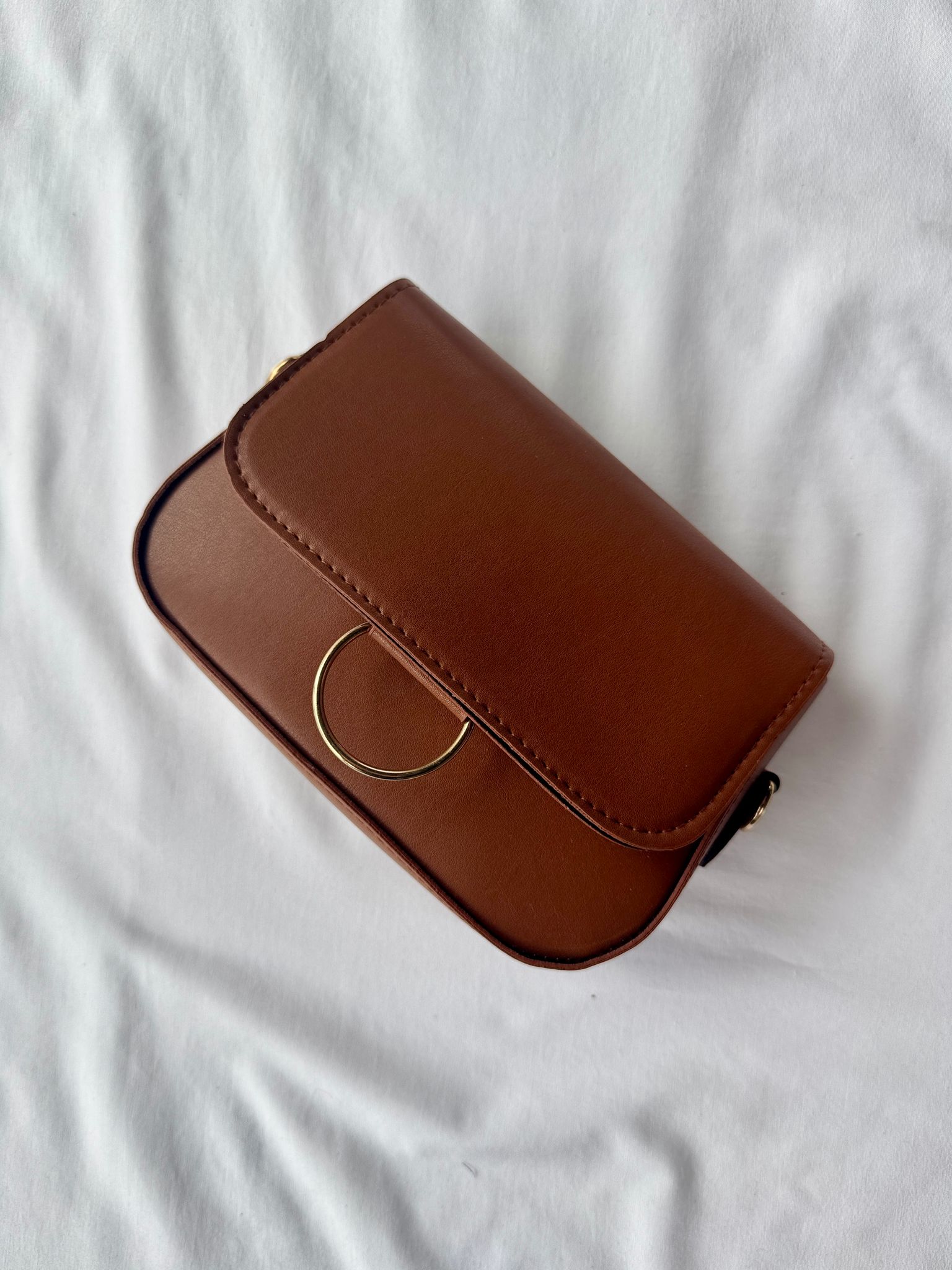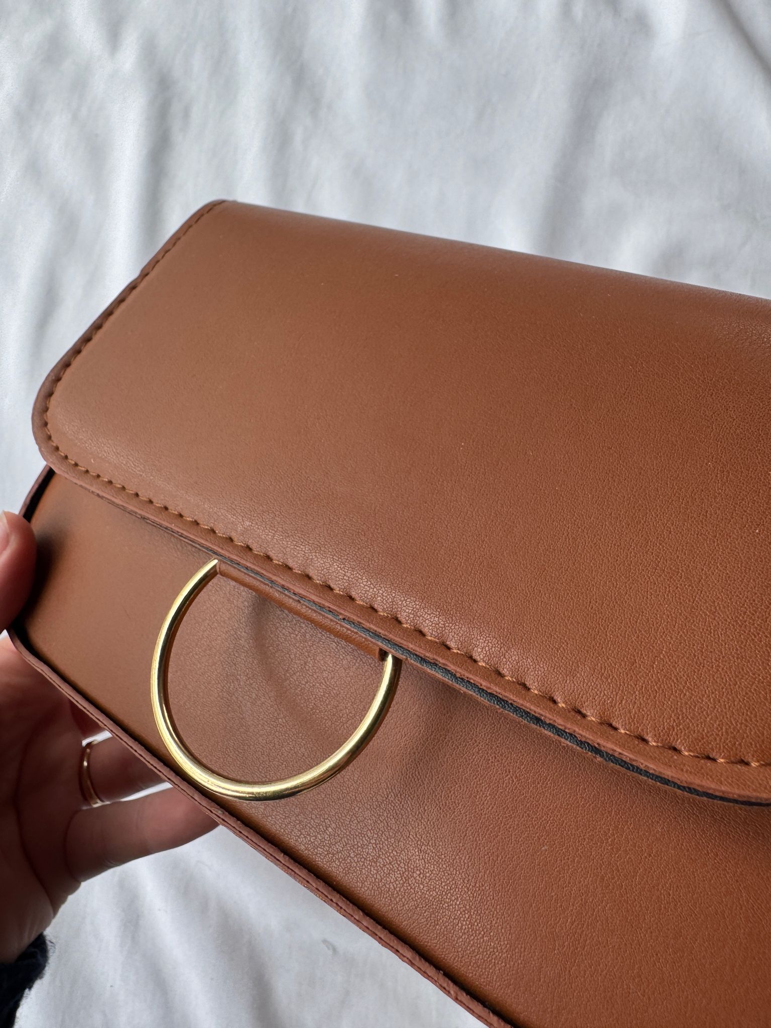 Cappmoda  ÇNT-3025 Taba Halka Detaylı Kapaklı Suni Deri Omuz Ve Kol Çantası