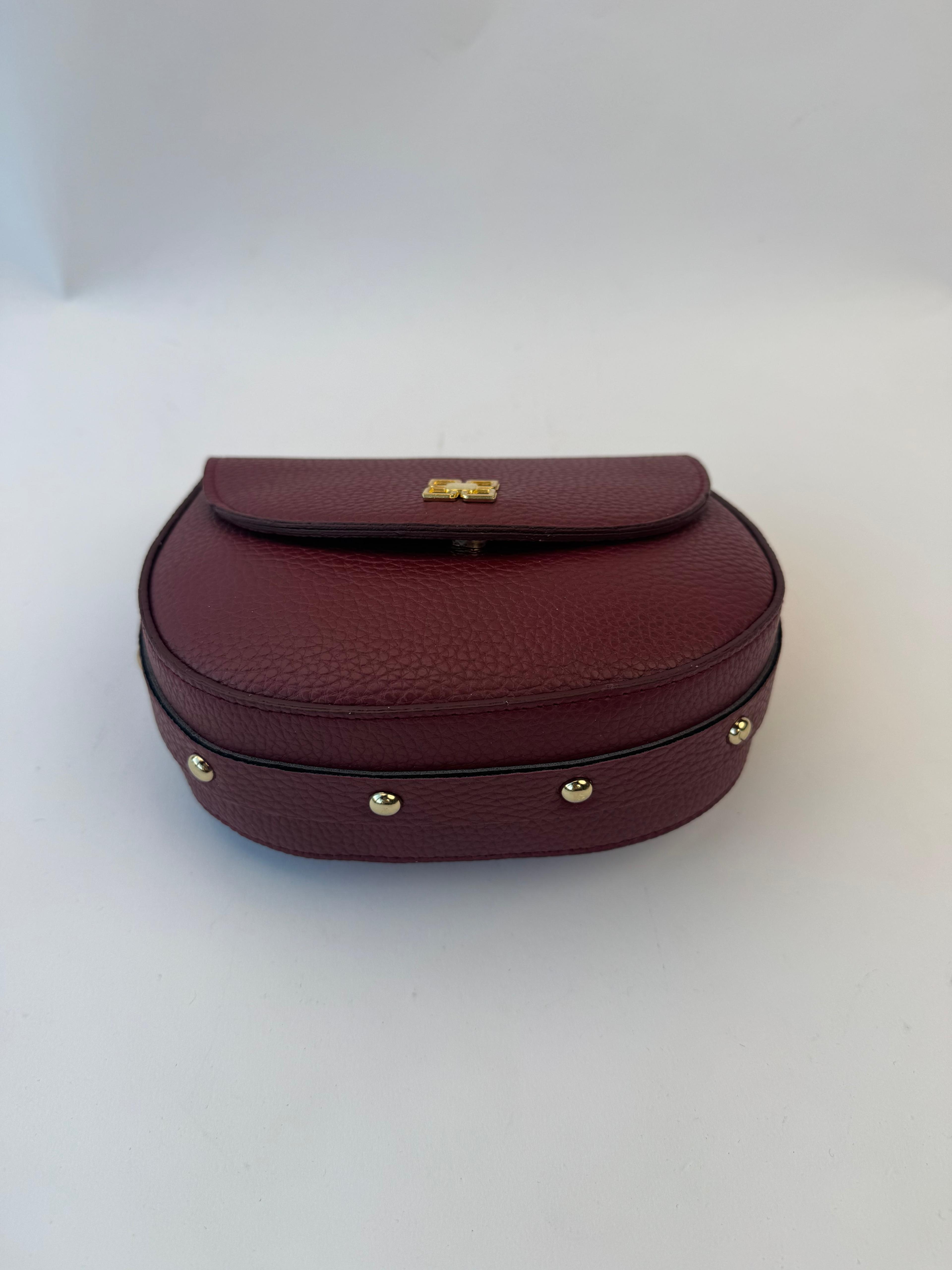 ÇNT-3032 Bordo Gold Zımba Detaylı Kapaklı Omuz Çantası