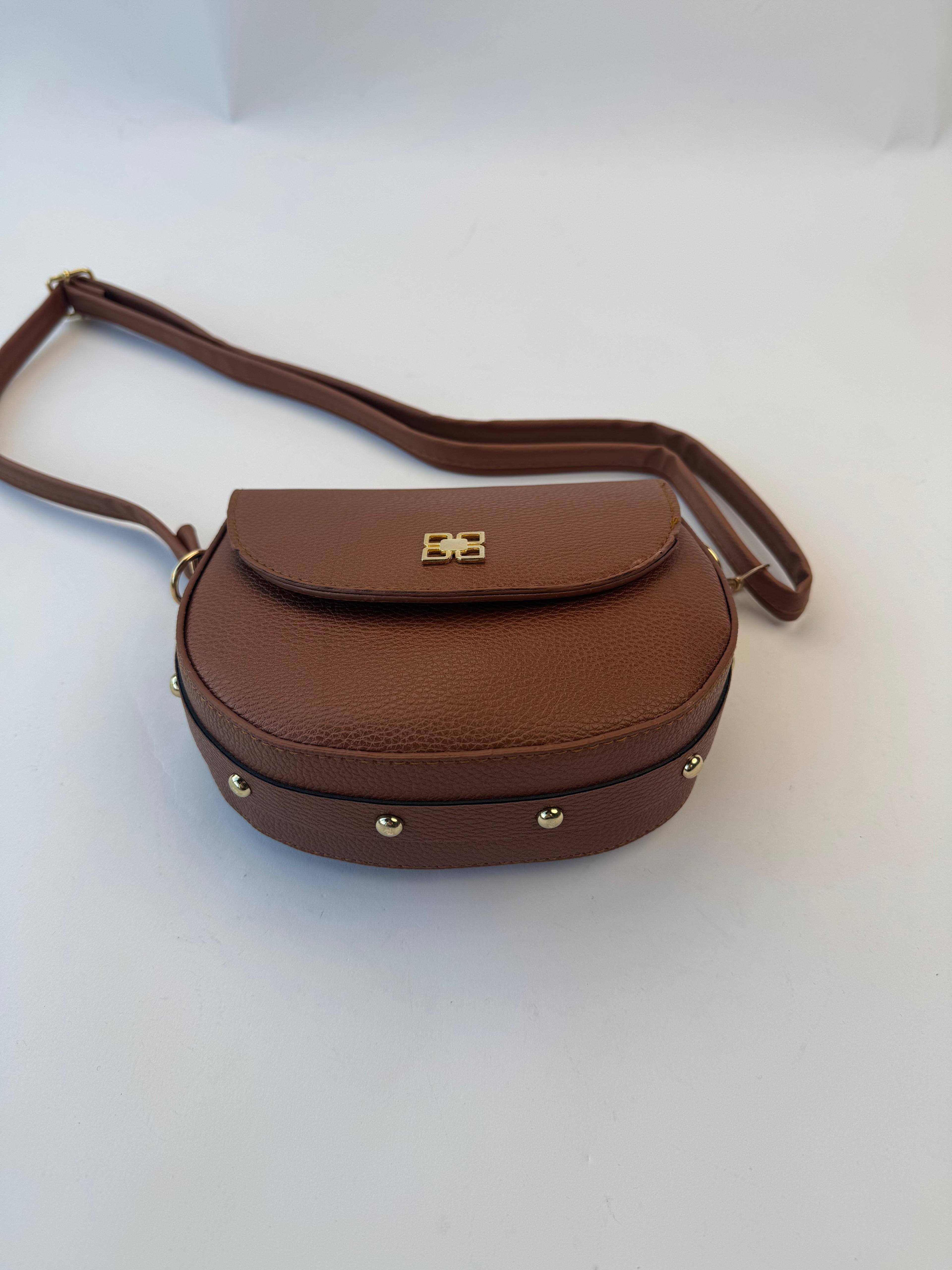 ÇNT-3032 Taba Gold Zımba Detaylı Kapaklı Omuz Çantası