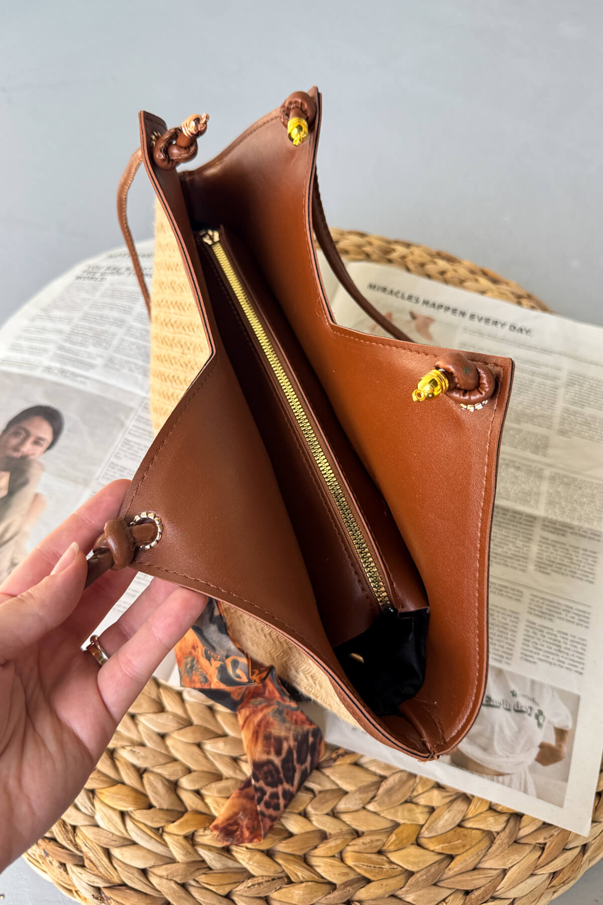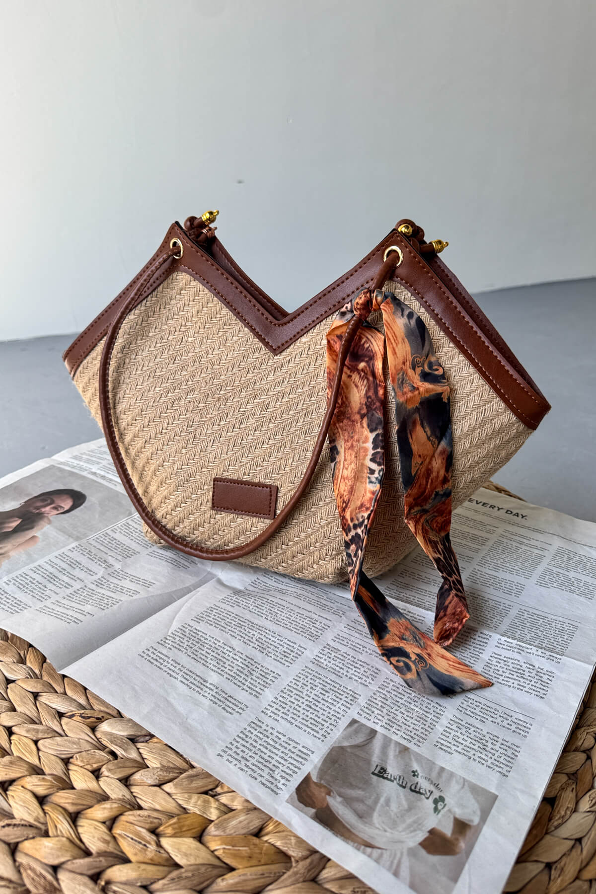 ✅ V kesim formda şık hasır dokulu tasarım