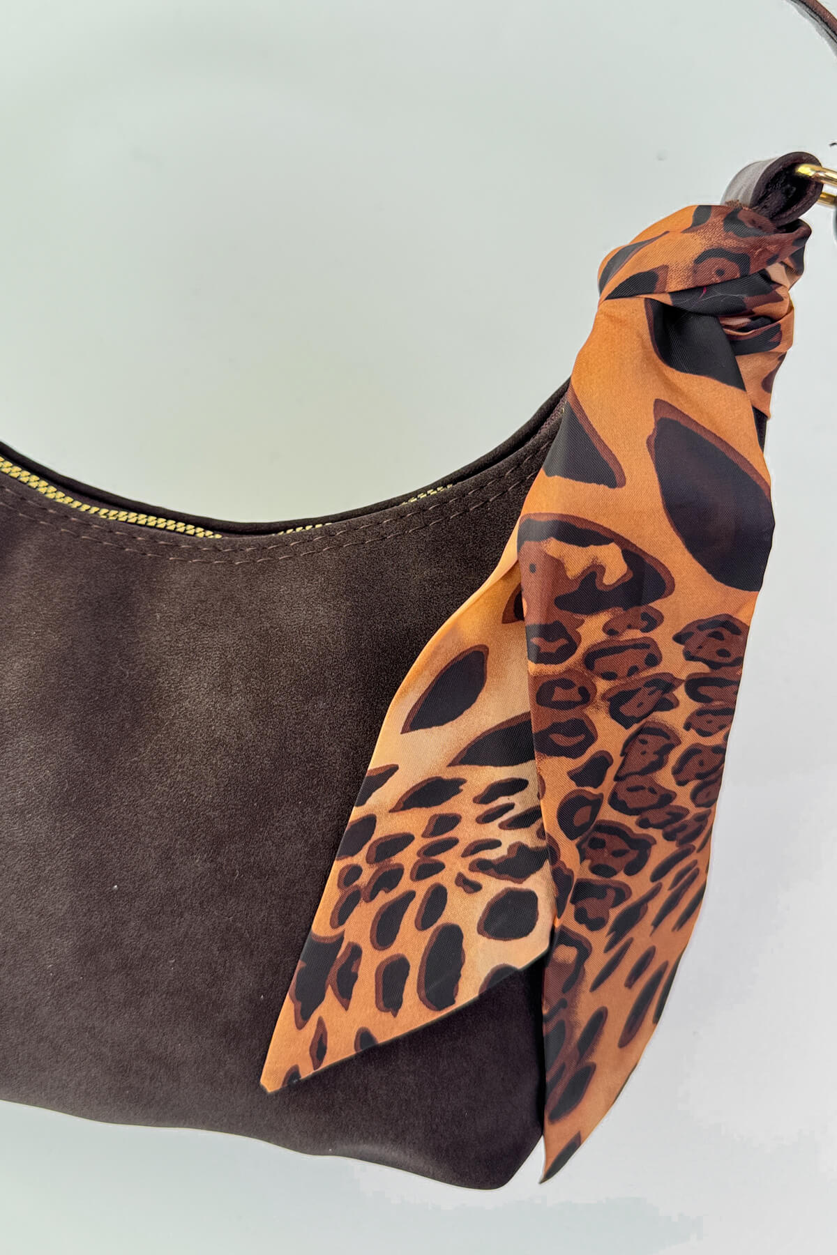 ÇNT-3039 Acı Kahve Süet Fular Detaylı Fermuarlı Omuz Çantası - 1ÇNT-3039 Acı Kahve Süet Fular Detaylı Fermuarlı Omuz Çantası - 2