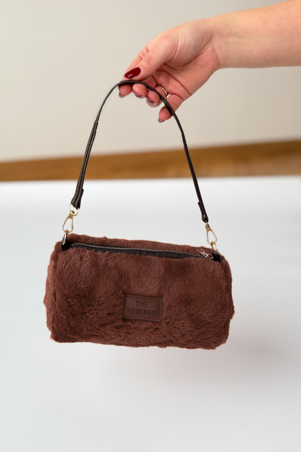 Yumuşak Kürklü dokusu ve modern silindir formuyla kış stilinize sıcak bir dokunuş katın. Ön yüzündeki "The Totebag" etiketi ve gold metal detaylarıyla dikkat çeken tasarım, fermuarlı geniş ağzı sayesinde pratik bir kullanım sunar. Çıkarılabilir ve ayarlanabilir askısı ile ister omuzda ister elde taşıyarak günlük kombinlerinize kolayca uyarlayabilirsiniz.