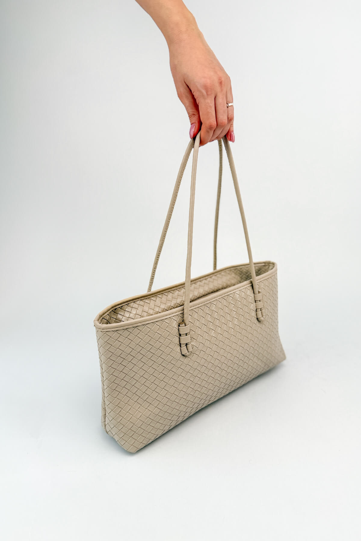 İtalyan esintili örgü deseniyle zenginleştirilmiş bu büyük omuz çantası, zamansız tasarımıyla stilinize derinlik katıyor. Suni derinin en kaliteli ve yumuşak formu kullanılarak hazırlanan çanta, 42 cm'lik geniş uzunluğuyla tüm gün ihtiyaç duyacağınız eşyalarınız için geniş bir dünya sunuyor. İnce sap detaylarındaki boğumlu işçilik, klasik dokuma görünümüne modern bir yorum getirirken; iç kısımdaki fermuarlı bölme değerli eşyalarınızı düzenle saklamanıza olanak tanıyor.