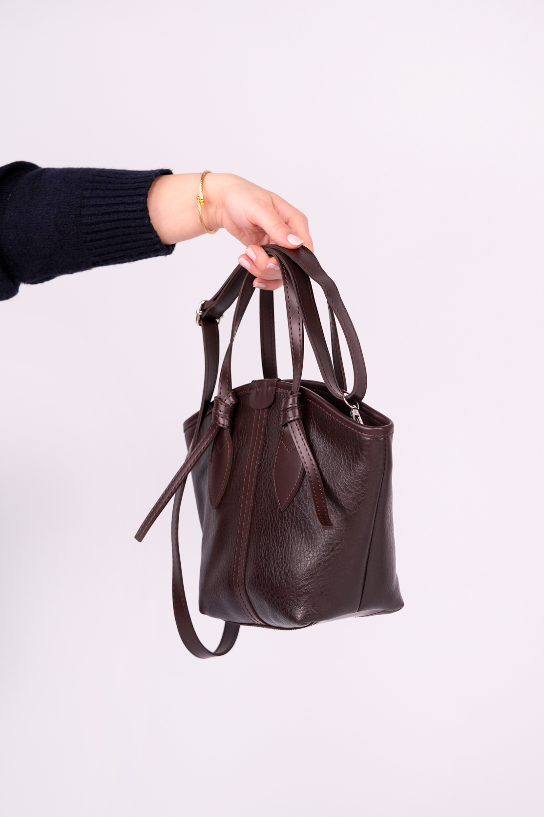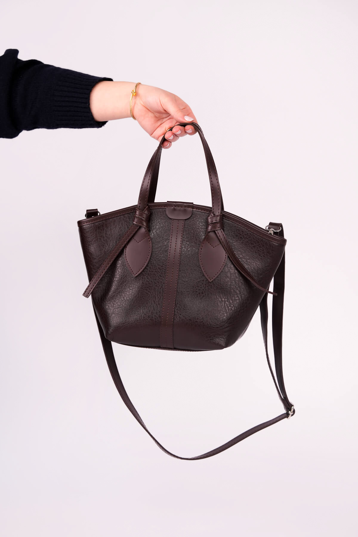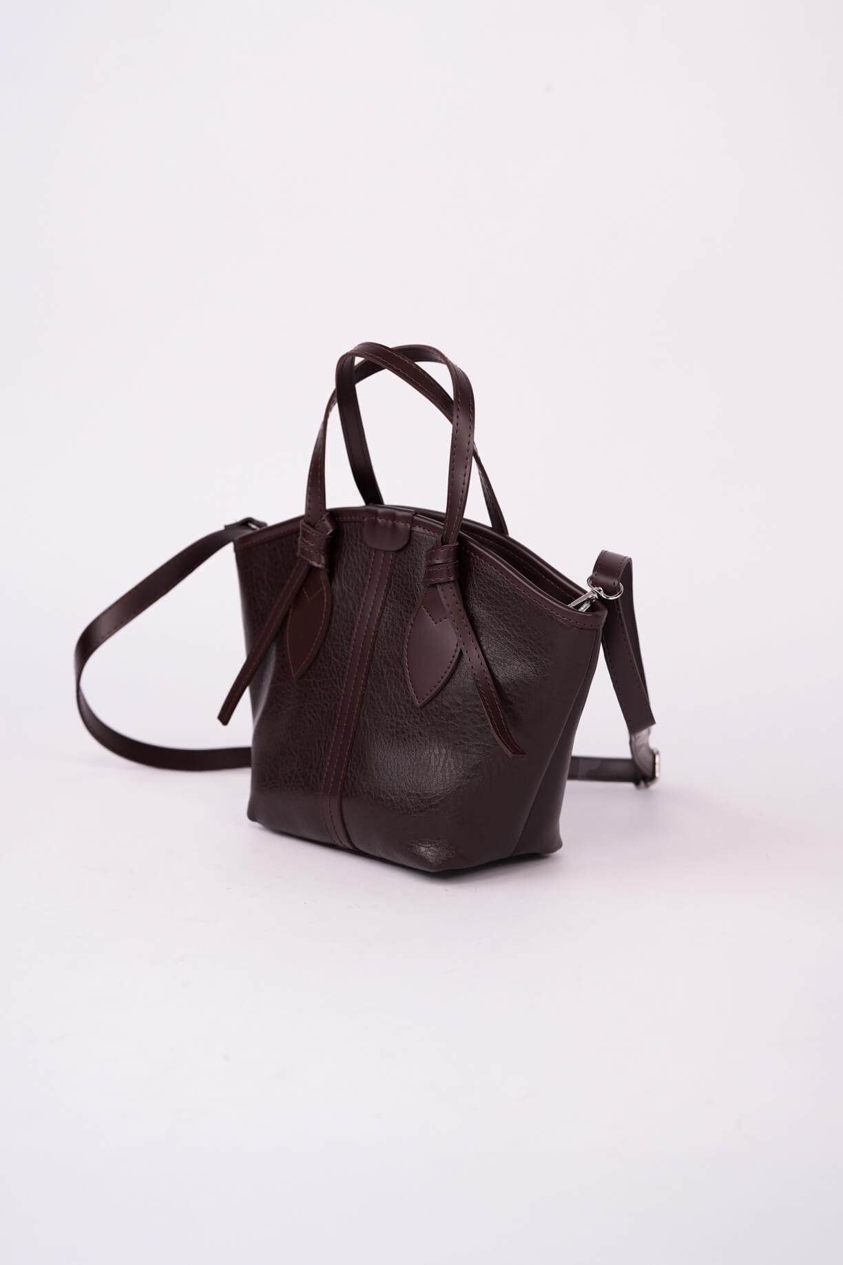 ÇNT-3053 Kahverengi Yumuşak Deri Biyeli El ve Omuz Çantası