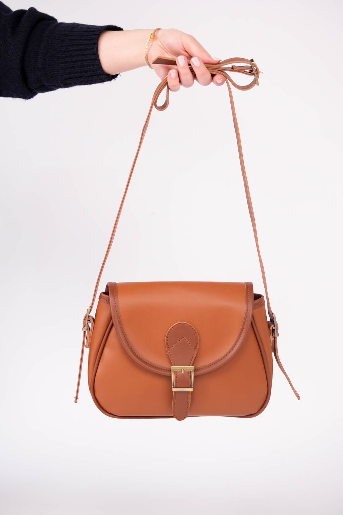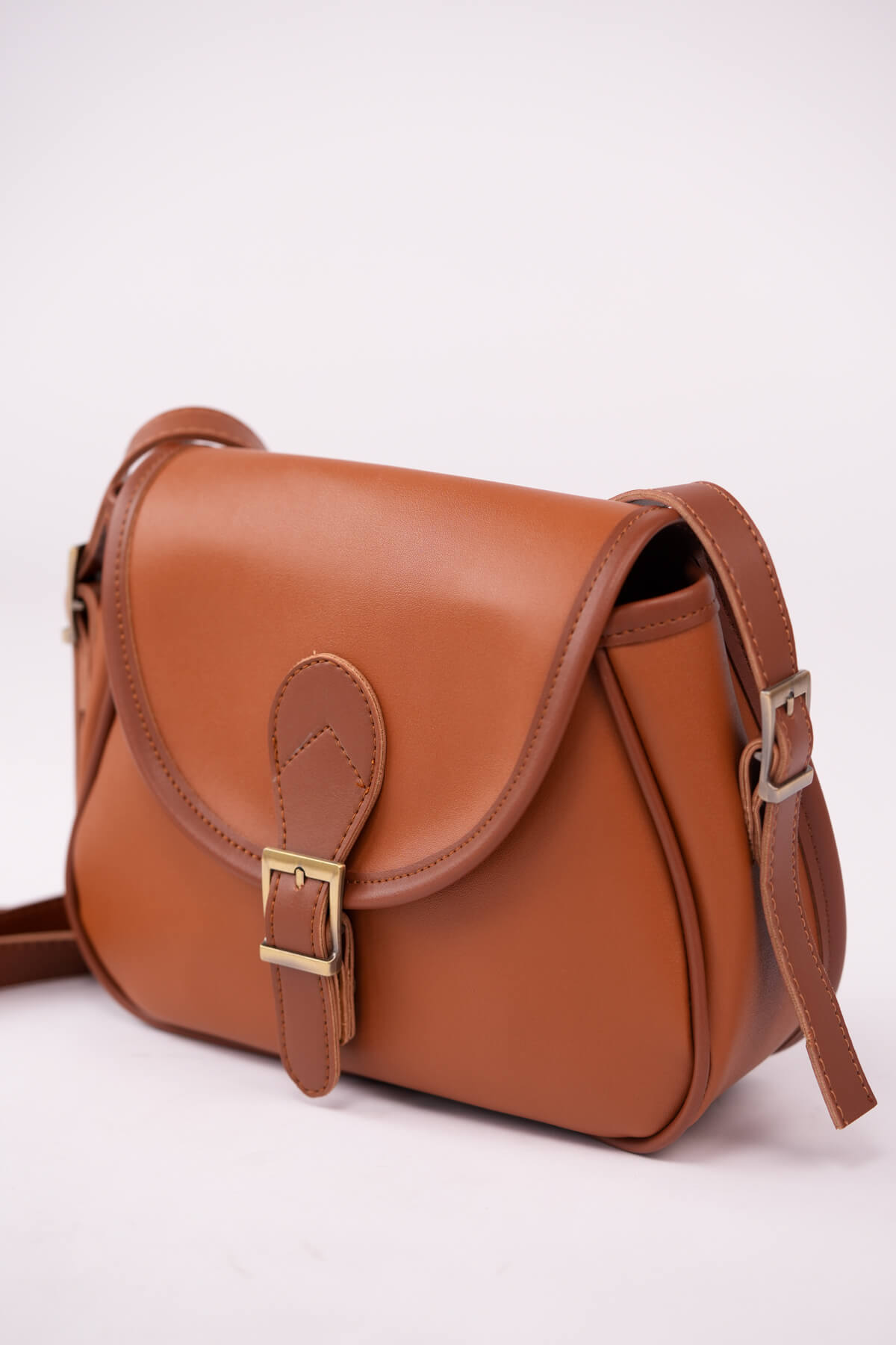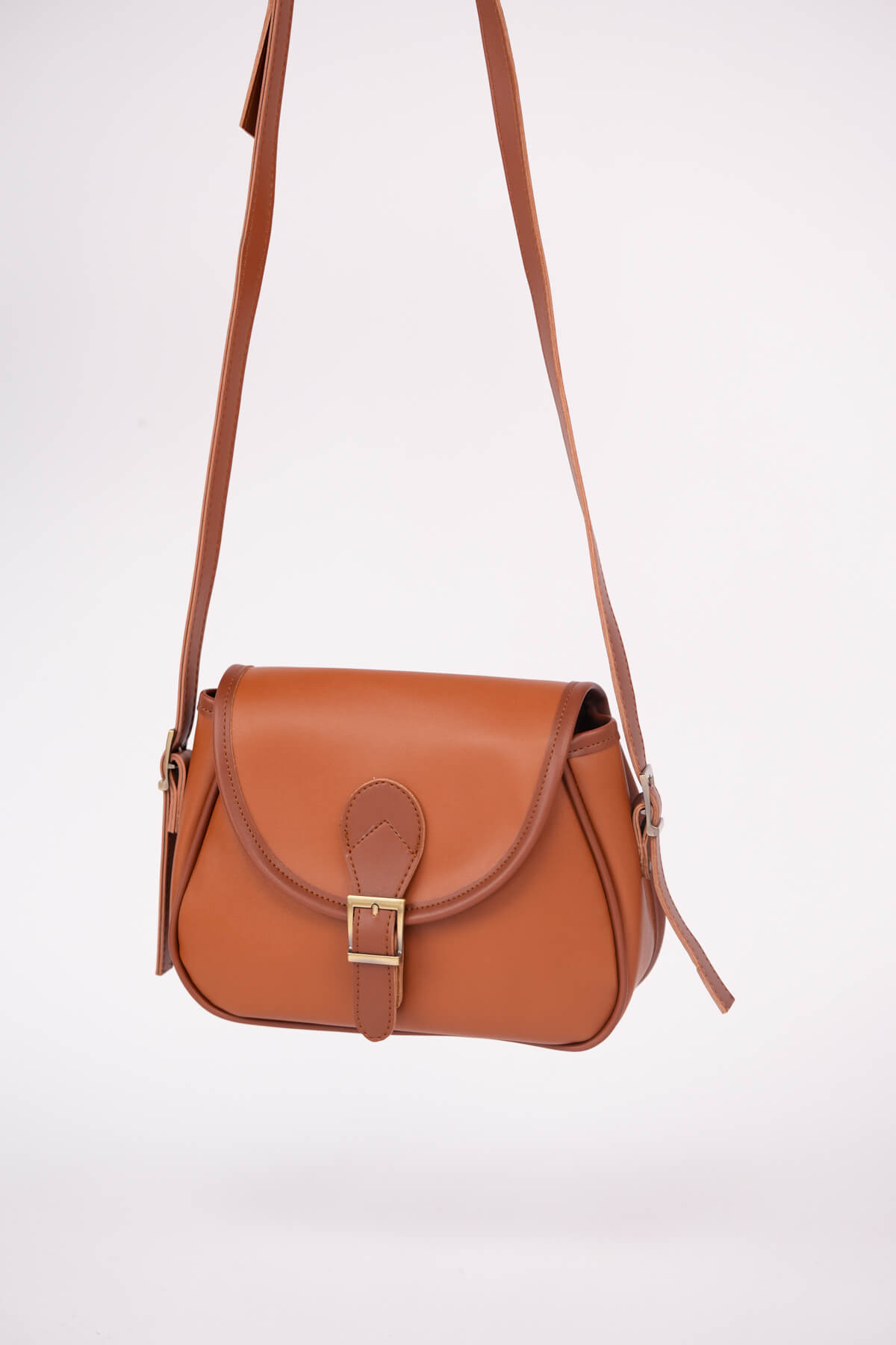 ÇNT-3055 Taba Kemer Tokalı Kapaklı Omuz Çantası