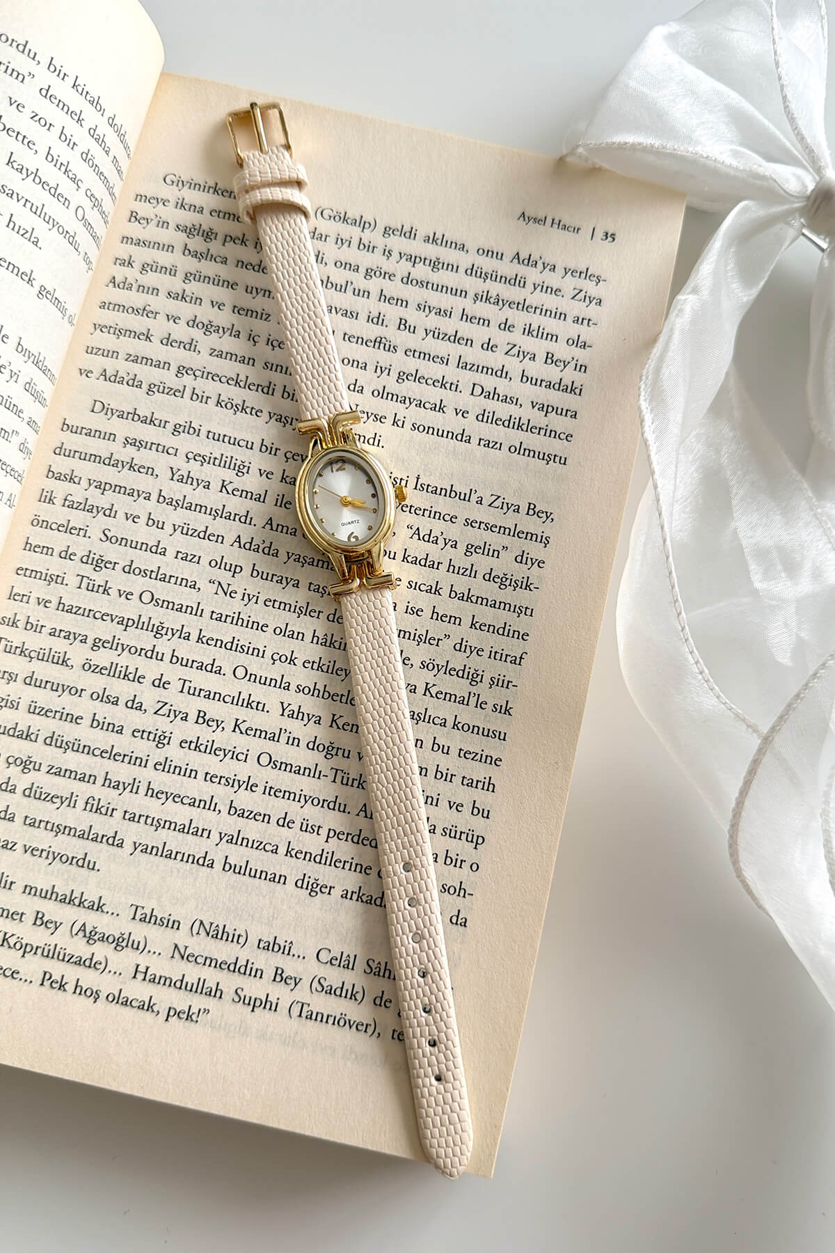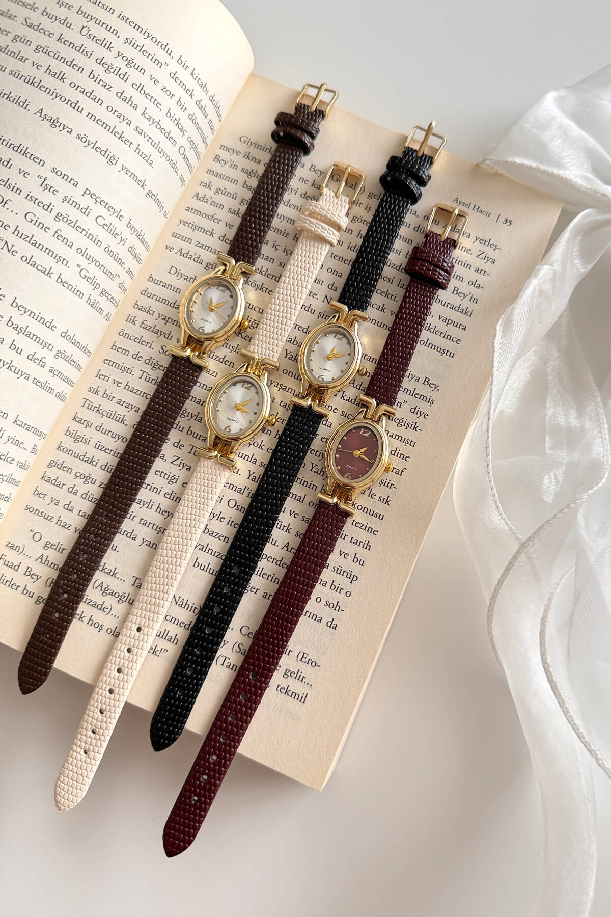 Oval kasa formuyla geleneksel saat tasarımına sanatsal bir yorum getiren bu model, ince deri kordonu ve altın rengi detaylarıyla bileğinizde bir saatten çok bir mücevher gibi parlıyor. Kordon bağlantısındaki karakteristik kıvrımlar ve soft kadran renkleriyle, vintage ruhunu modern bir dokunuşla taşımak isteyenler için tasarlandı. Zarafetin en naif hali.
