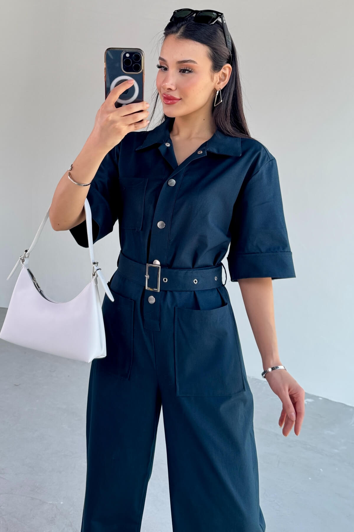 Tulum metal çıtçıt düğmelere sahiptir. Kemer detayı bulunur.
