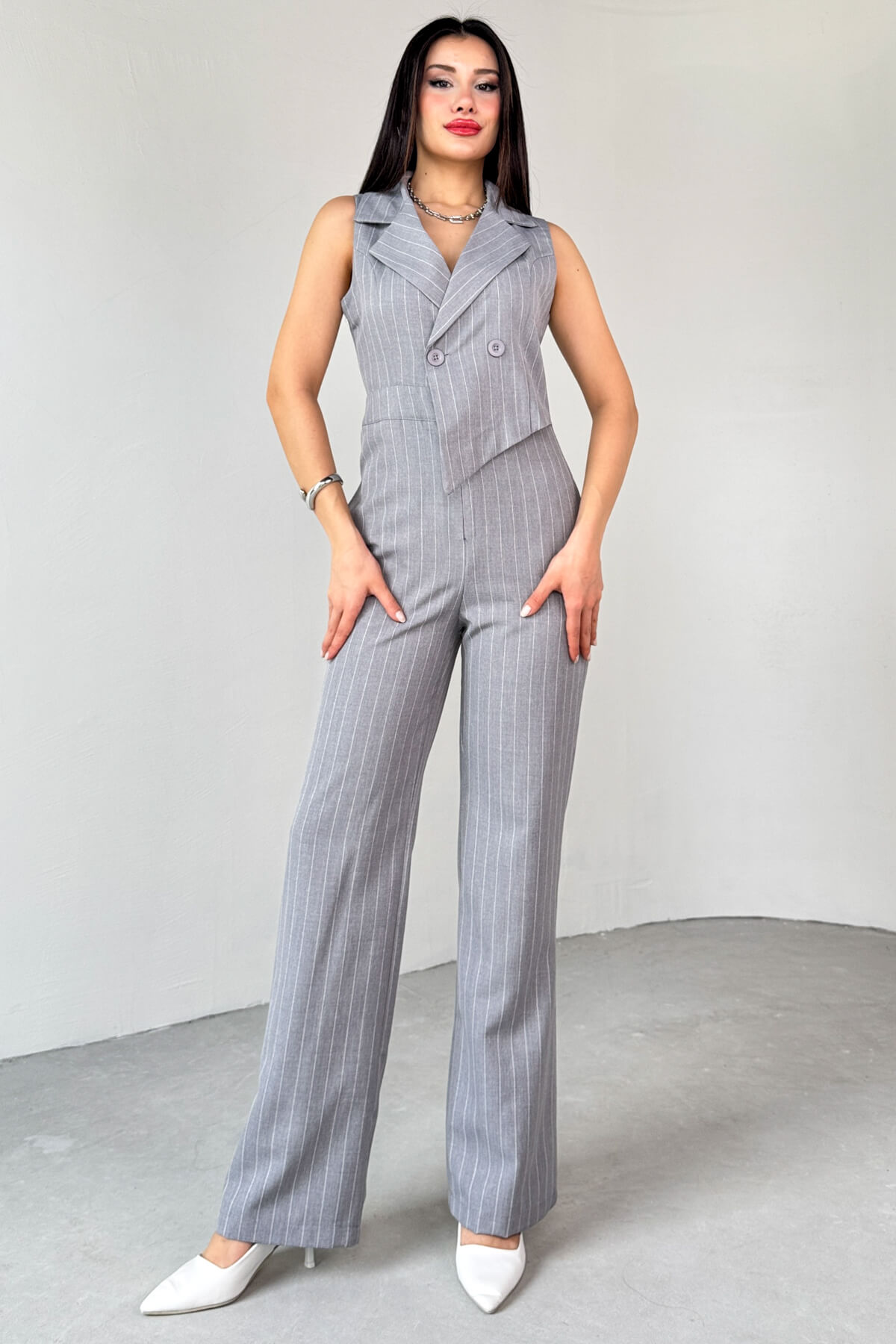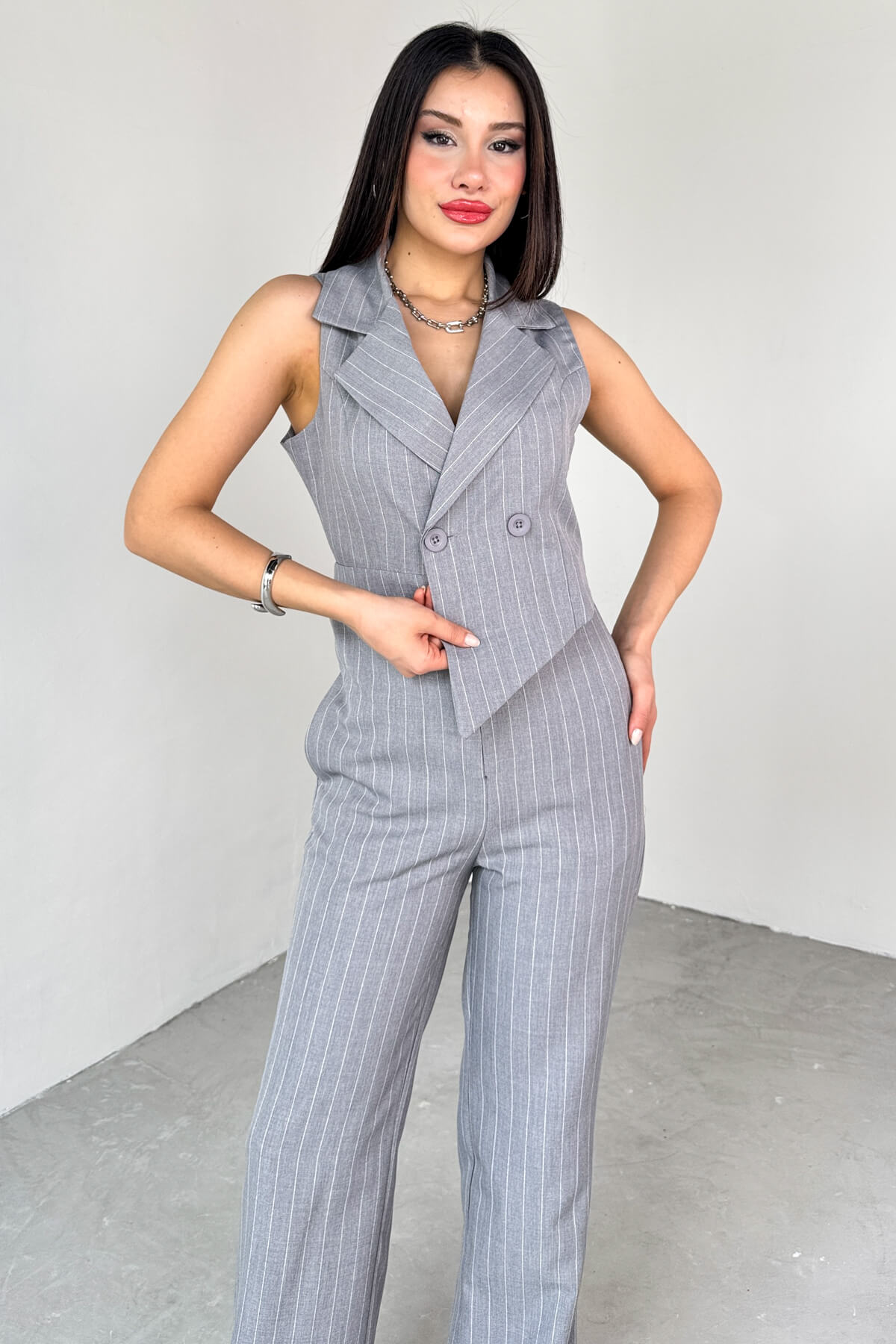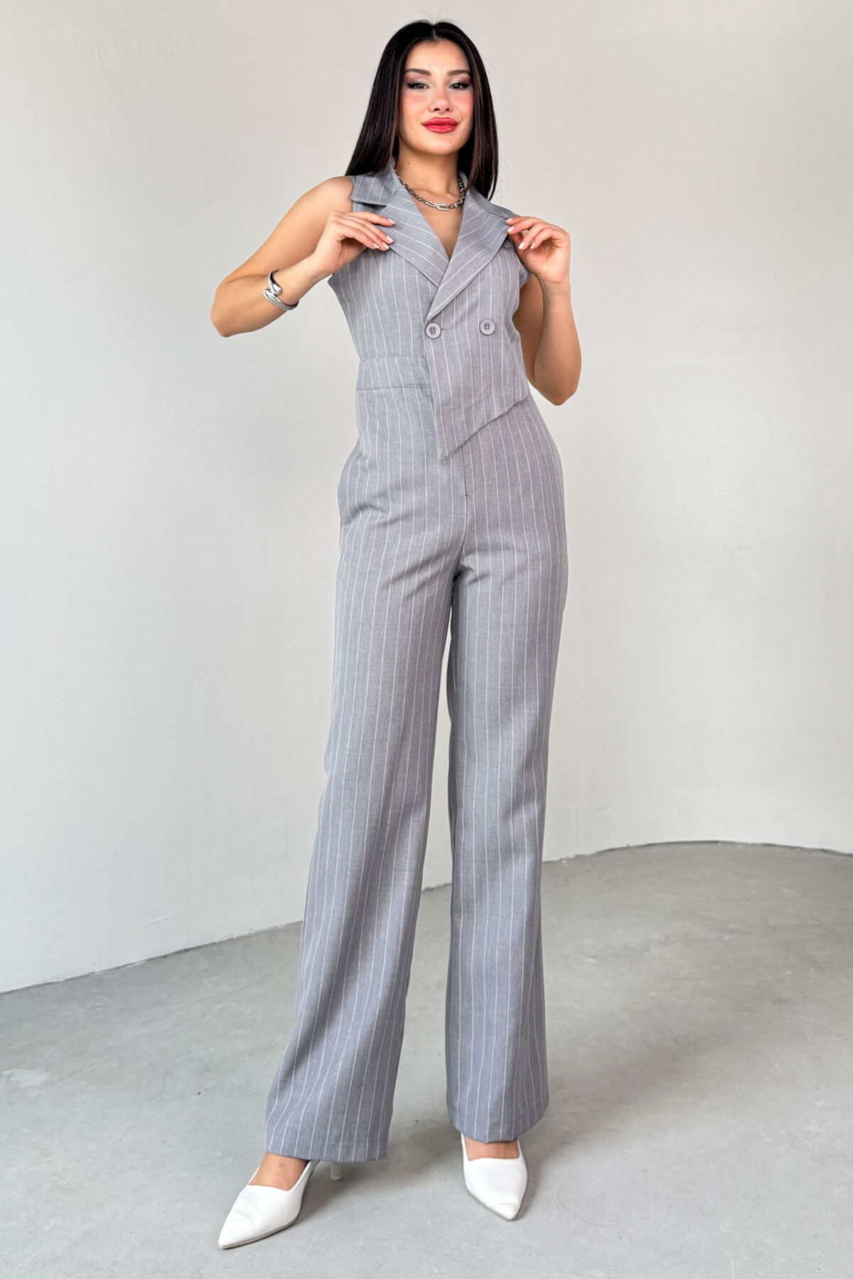 Tulum klapa yaka sıfır kol modeldir. Üst kısımda asimetrik kesime sahiptir. Small beden uzunluğu 150 cm'dir. Her bedende 3 cm fark vardır.
