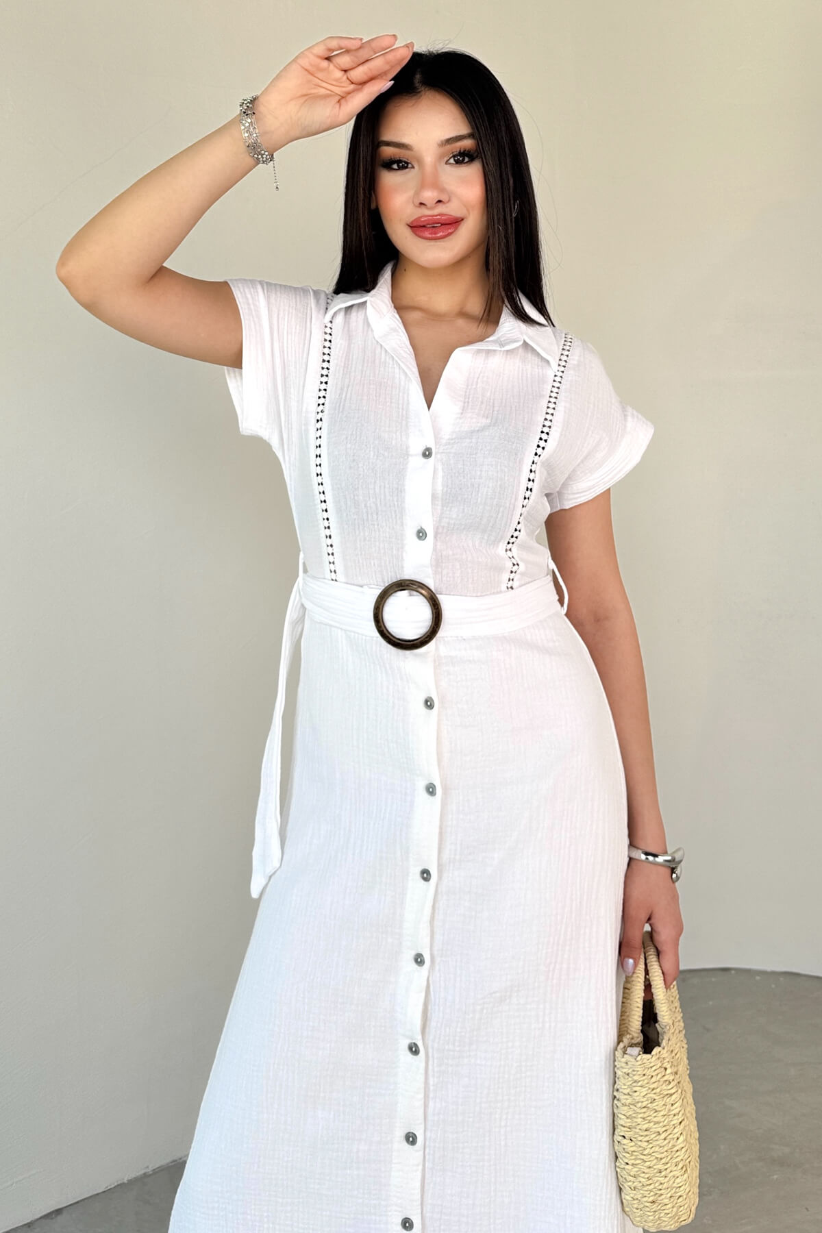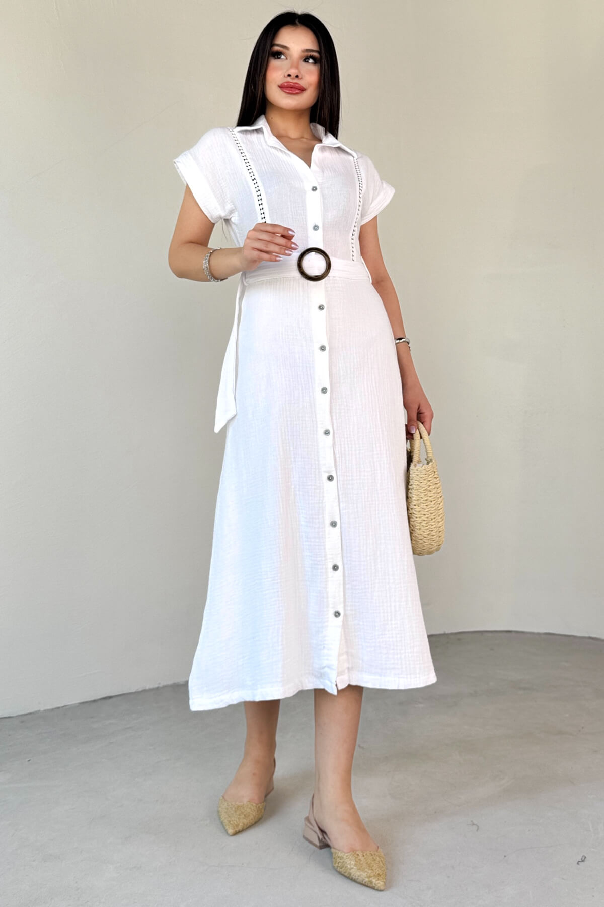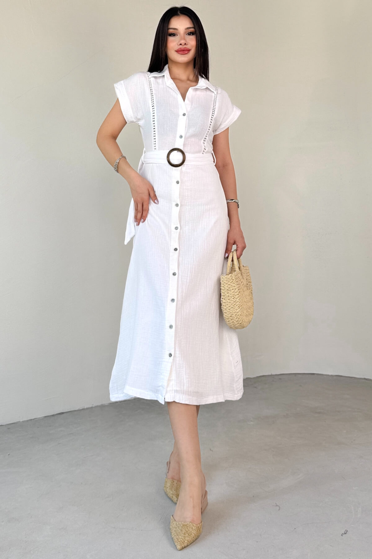 ✔ Belden bağlamalı kemer detayı, vücuda oturan siluet oluşturur